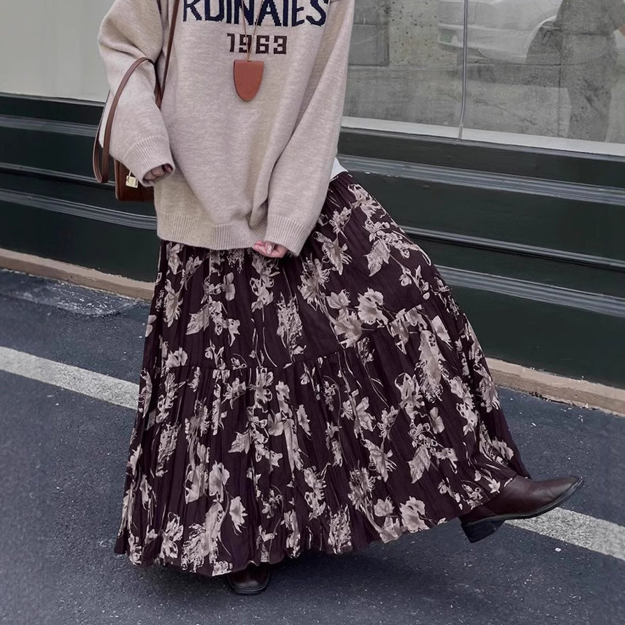【商品名】【ボトムス】レディース スカート 秋新作 Aライン ロング丈 花柄 フレア 体型カバー【SHシリーズ】