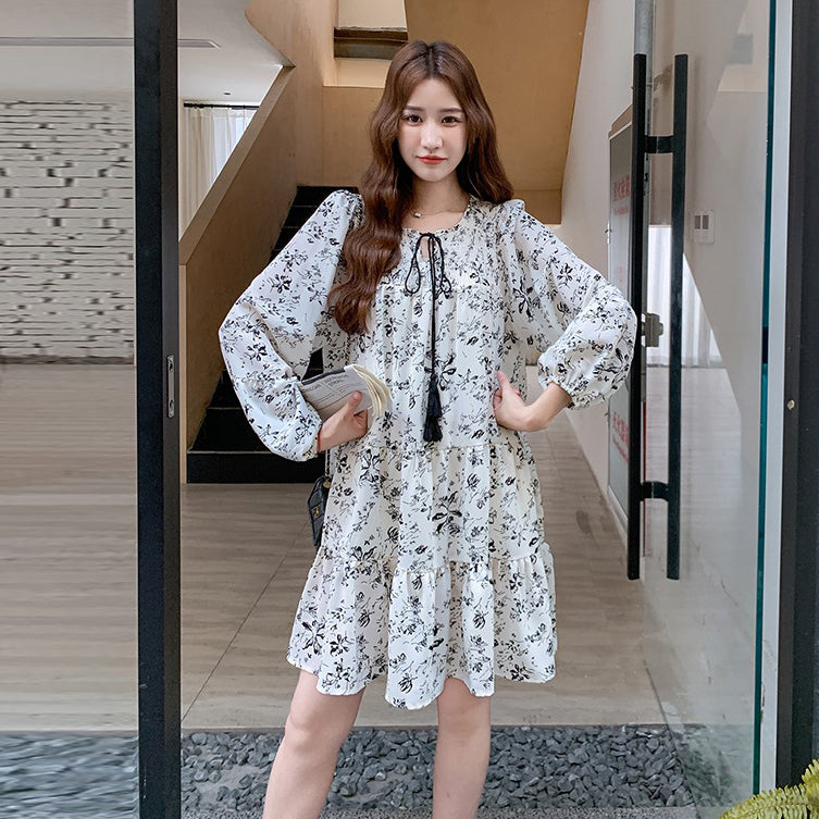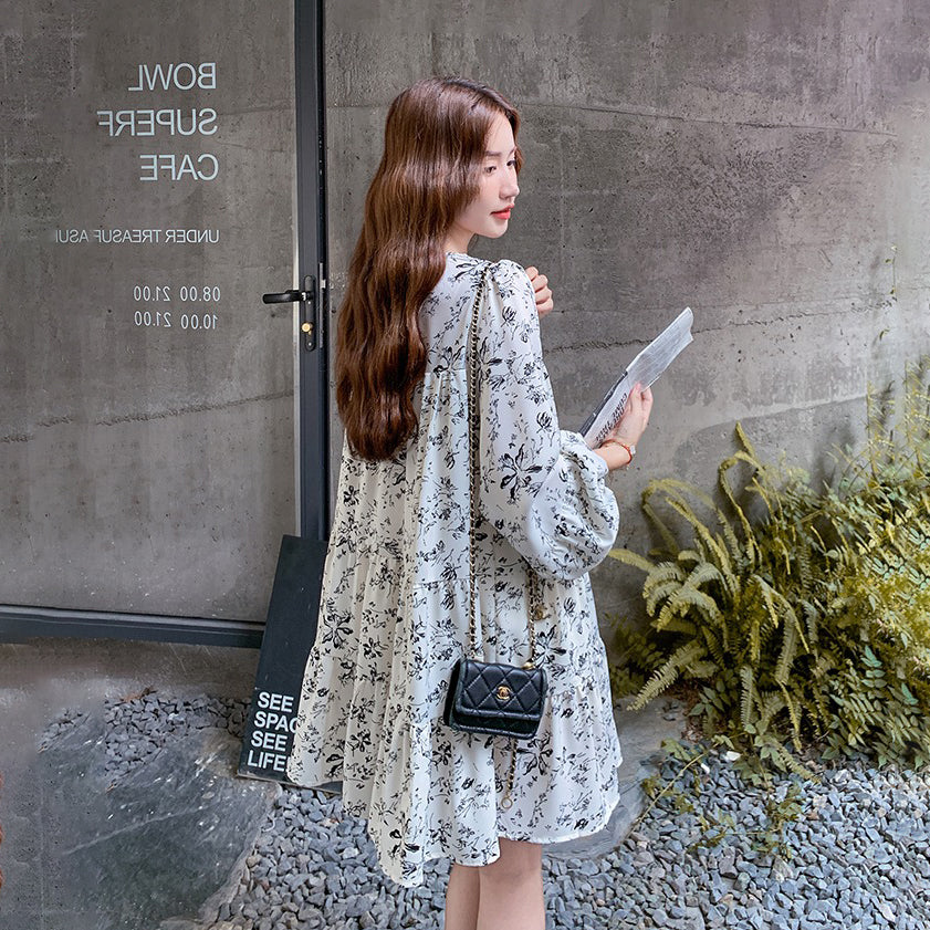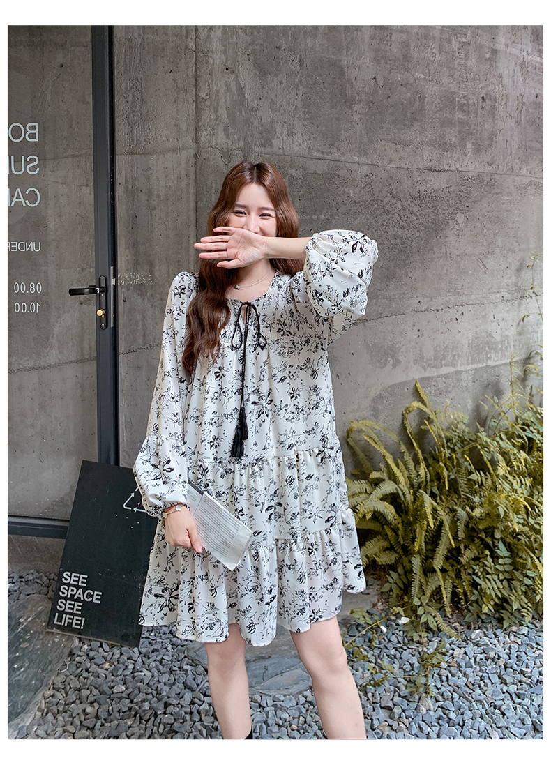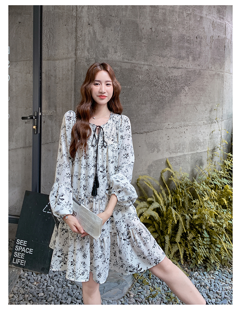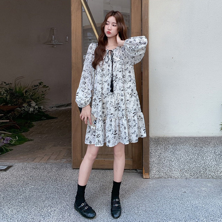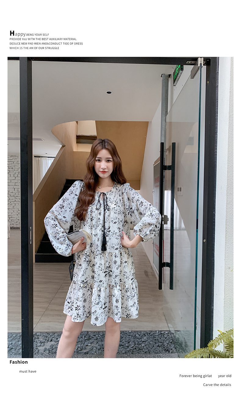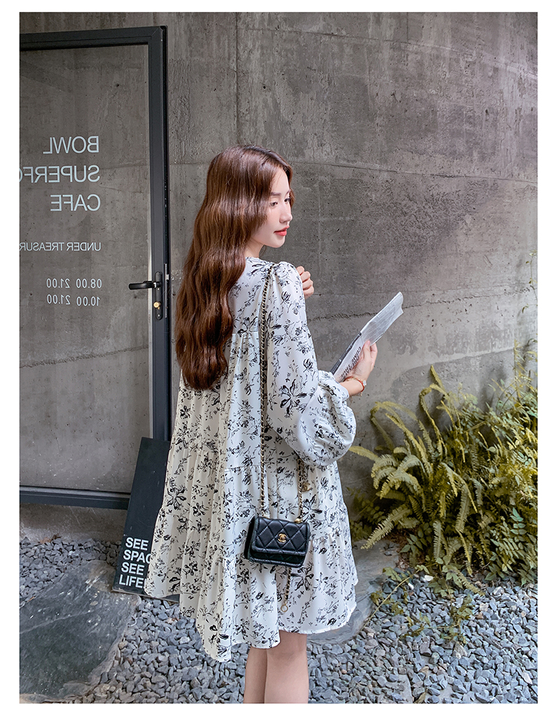 【商品名】【ワンピース】花柄 ミニ丈 長袖ワンピース 春夏秋 体型カバー 細見え 着回し万能【SHシリーズ】