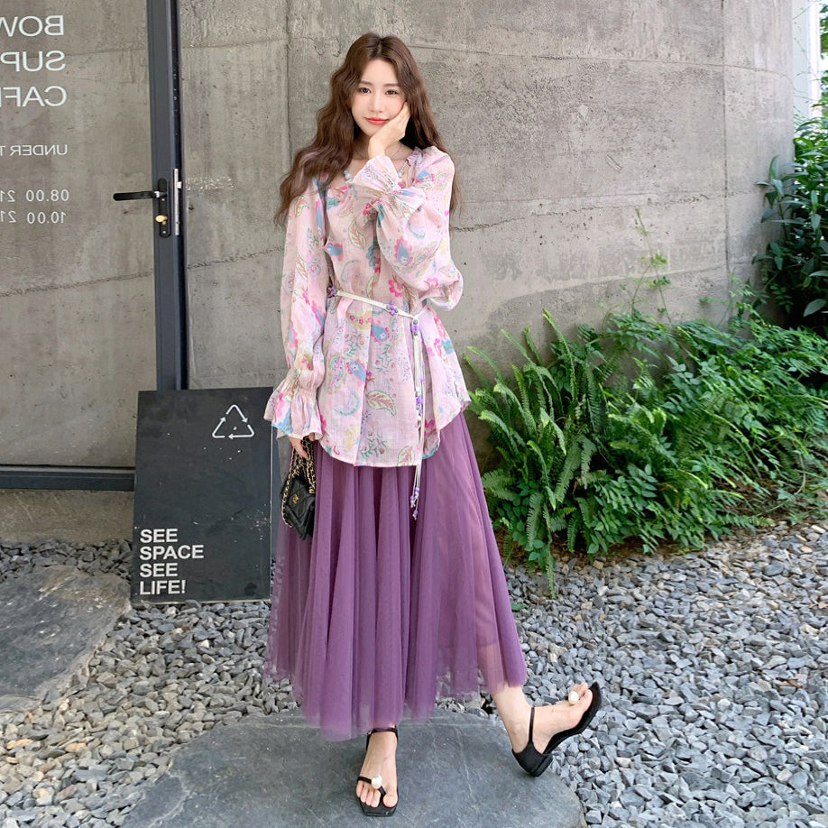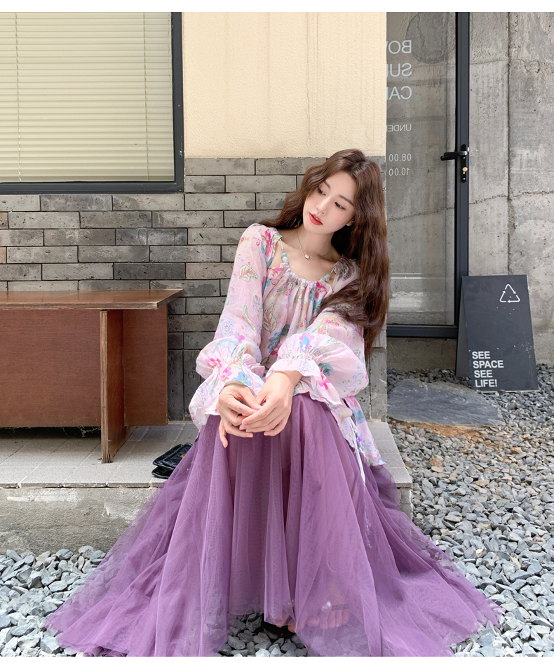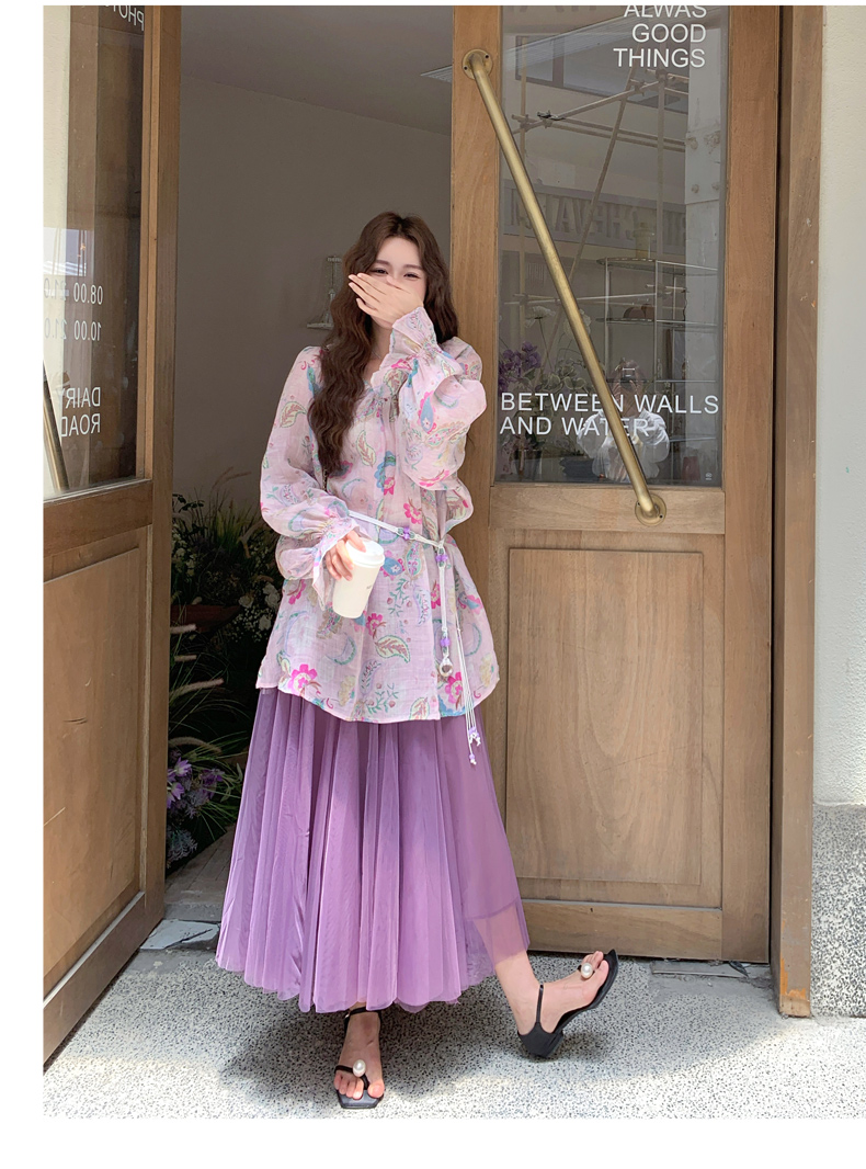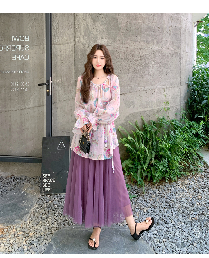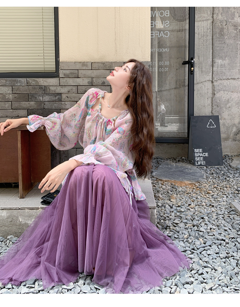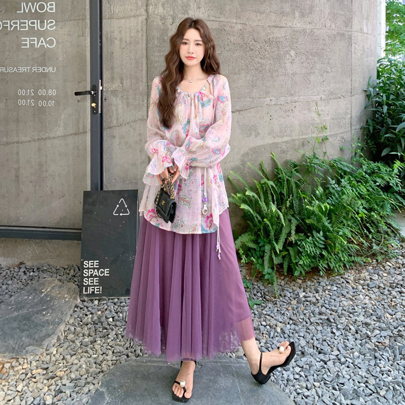 【商品名】2点セット!【セットアップ】花柄 UVカットシースルーカーディガン+チュールスカート 上下セット 春秋 フレンチロマンティック 超映え【SHシリーズ】