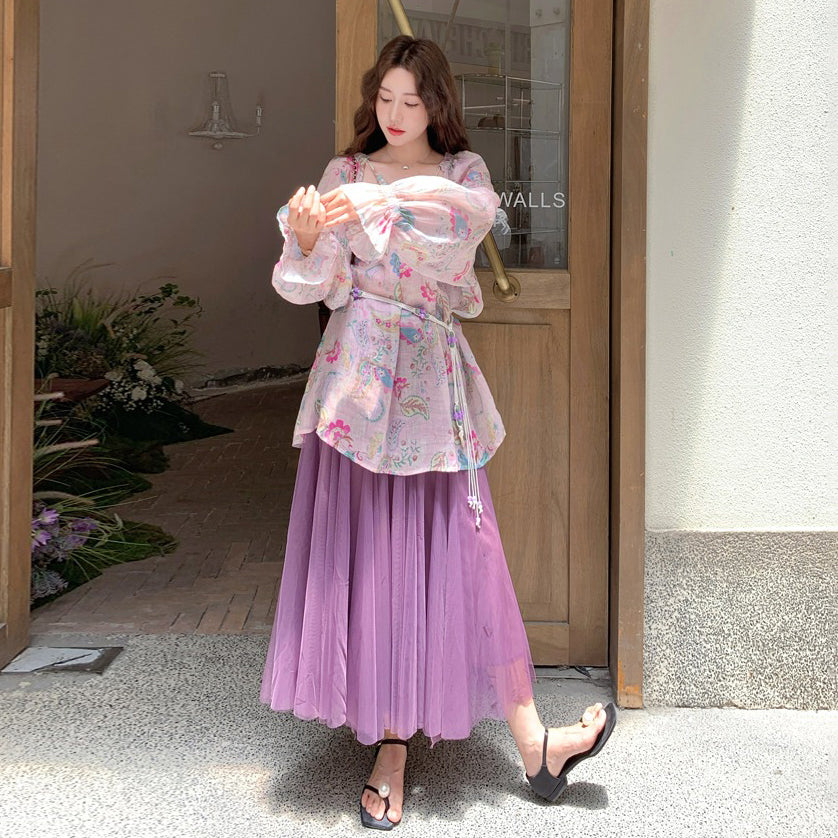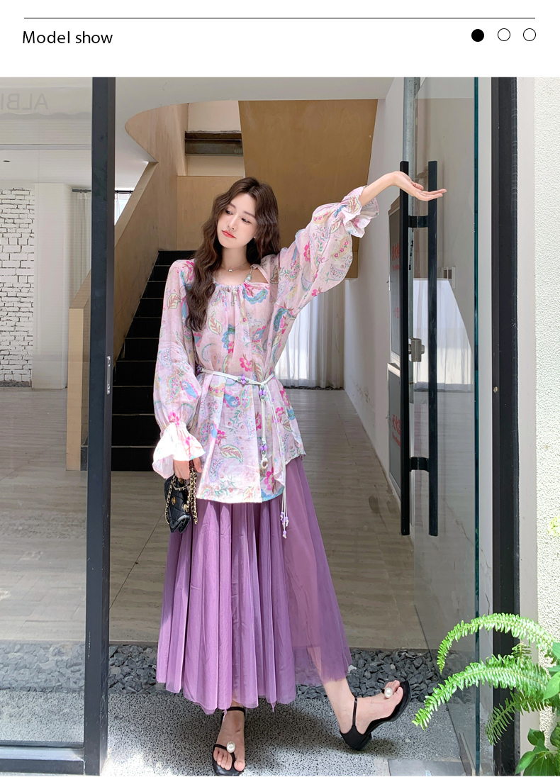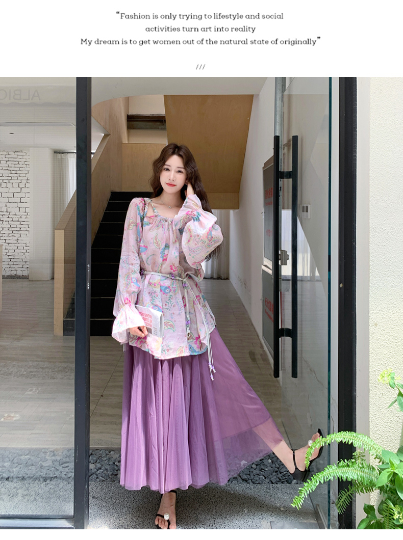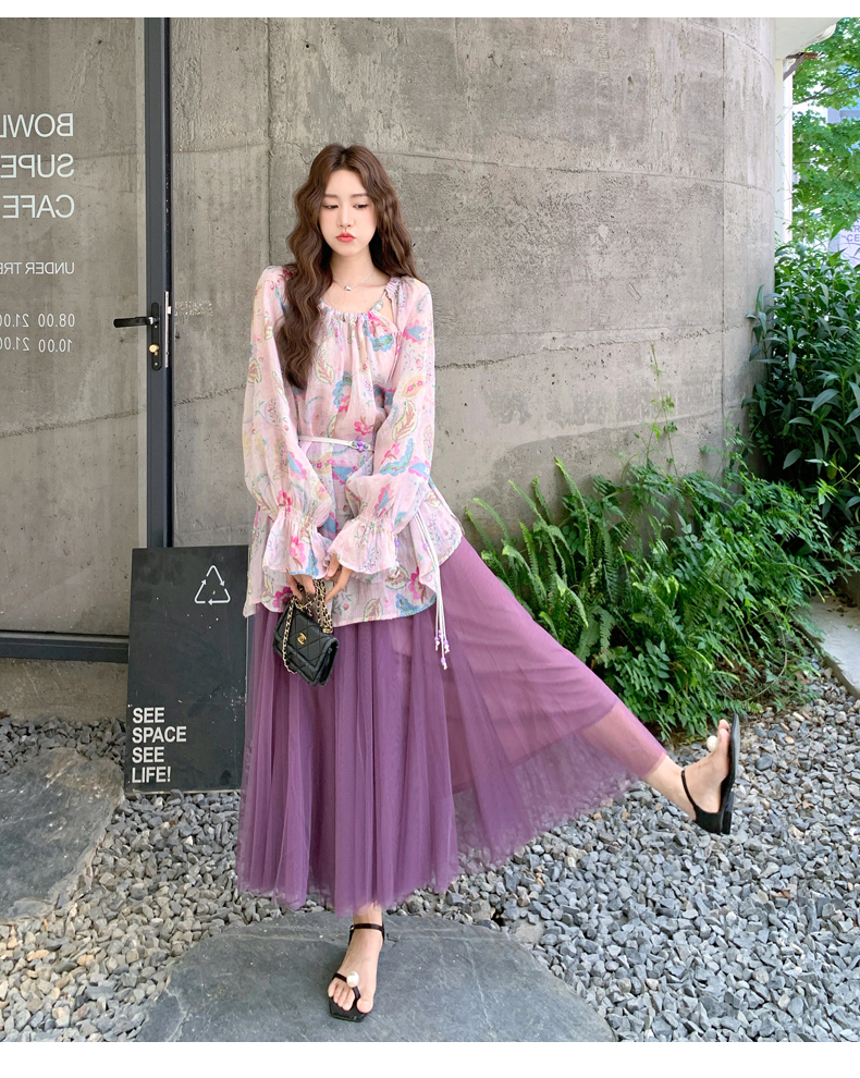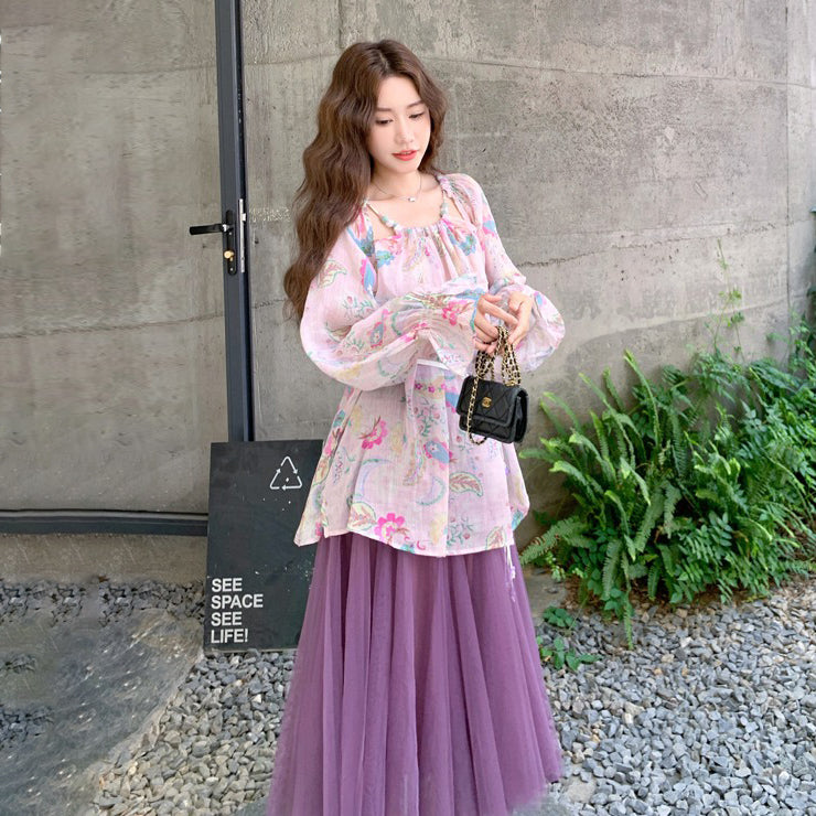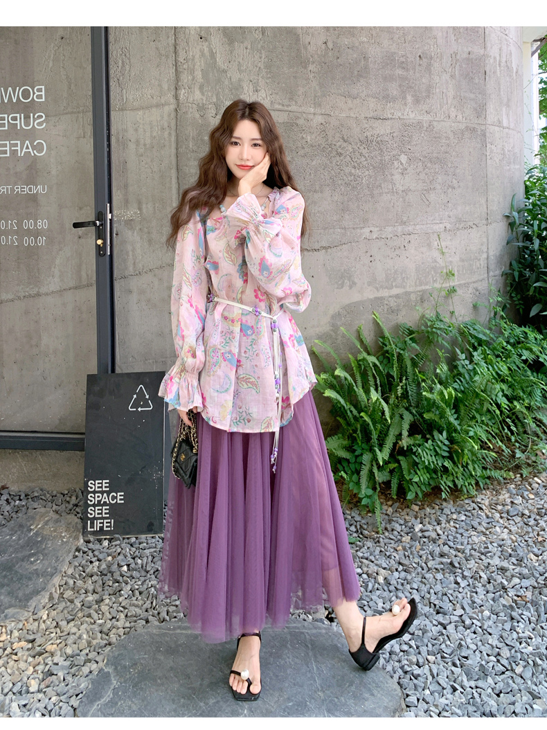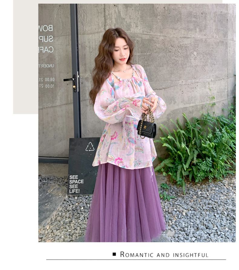 【商品名】2点セット!【セットアップ】花柄 UVカットシースルーカーディガン+チュールスカート 上下セット 春秋 フレンチロマンティック 超映え【SHシリーズ】