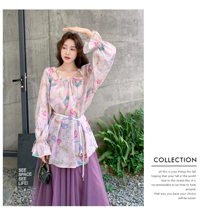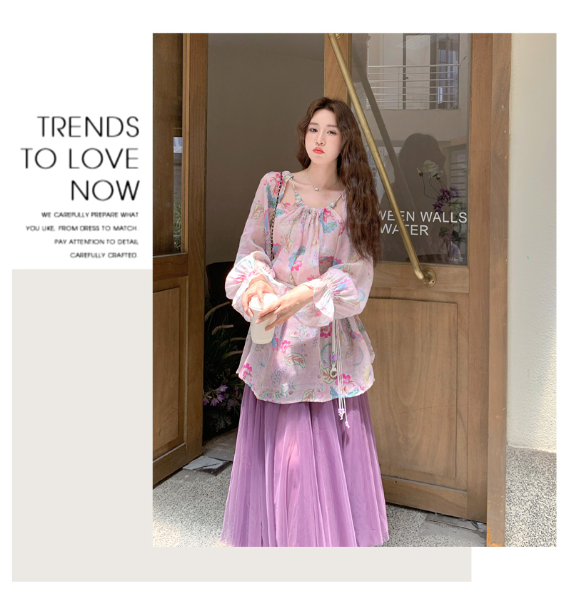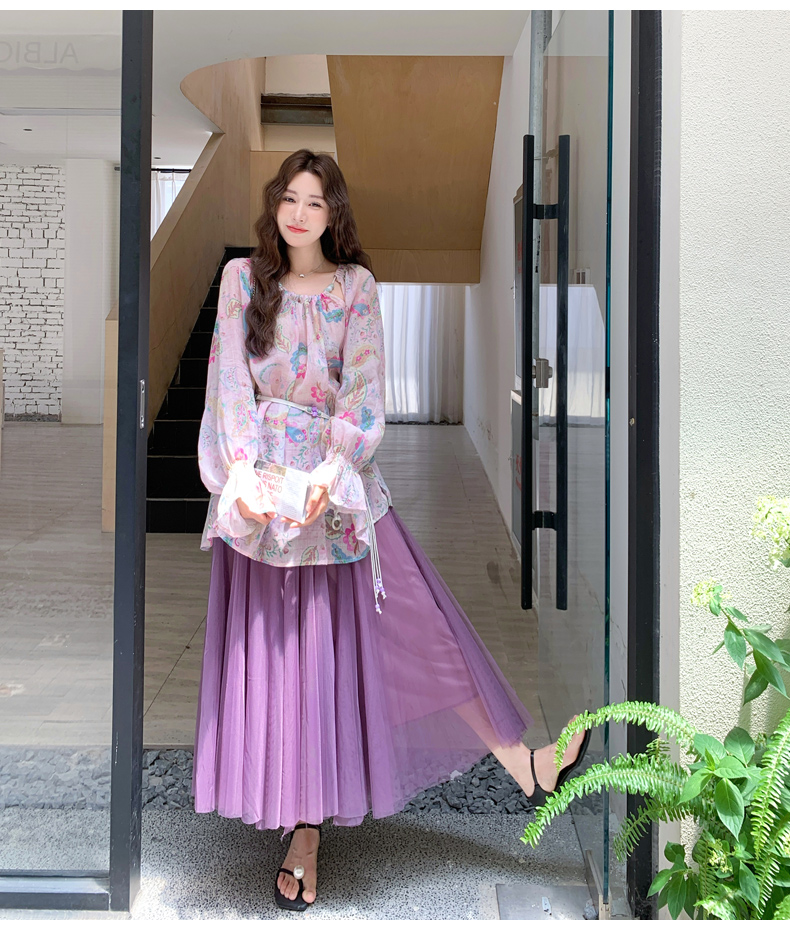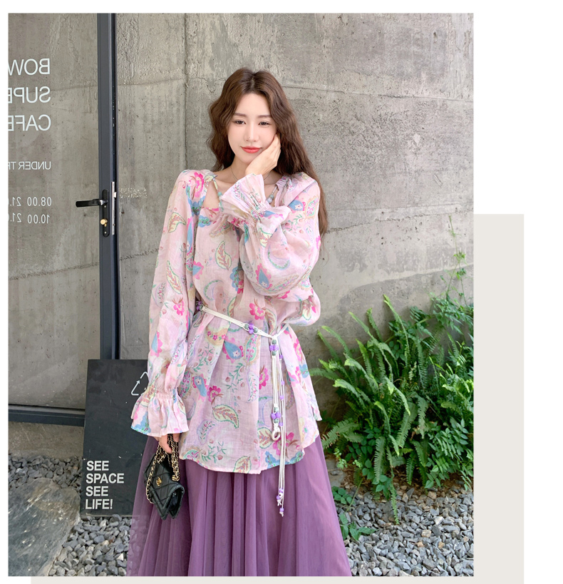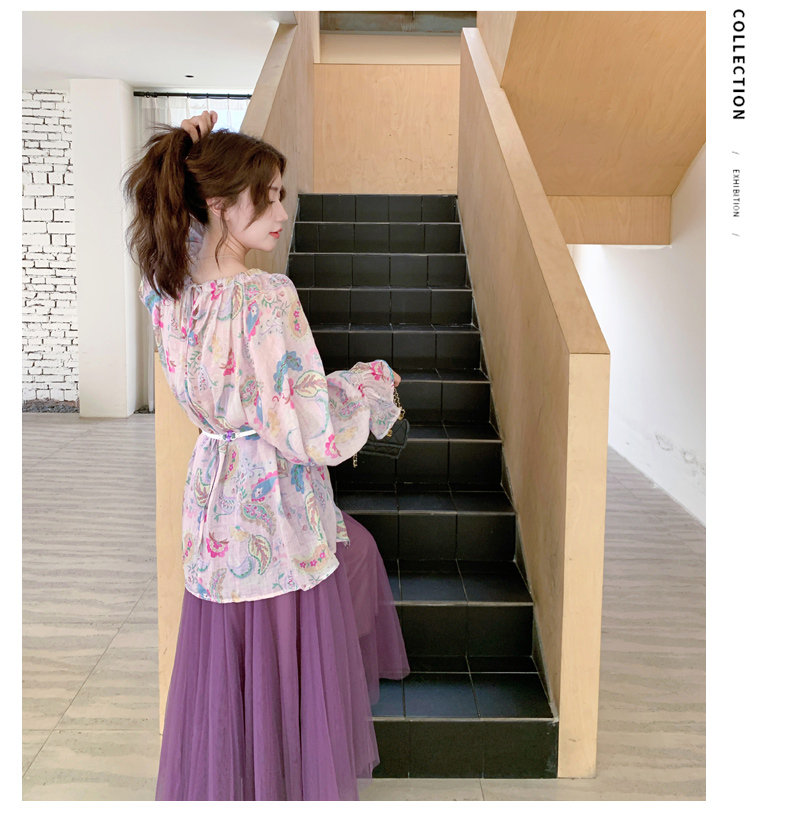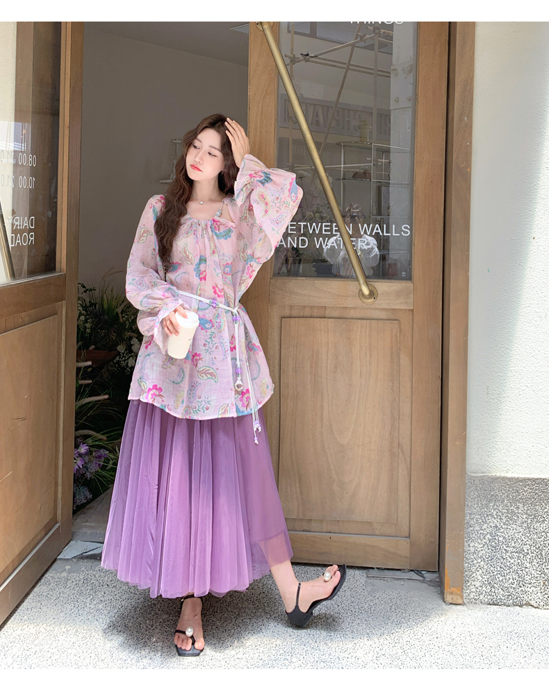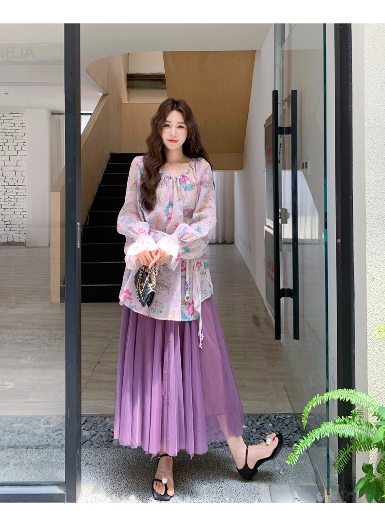 【商品名】2点セット!【セットアップ】花柄 UVカットシースルーカーディガン+チュールスカート 上下セット 春秋 フレンチロマンティック 超映え【SHシリーズ】