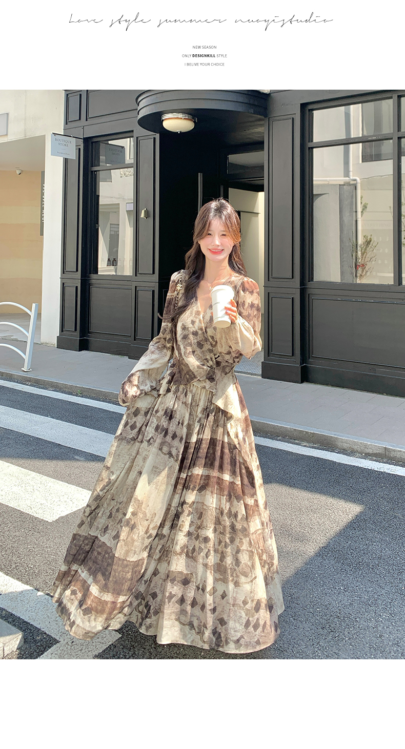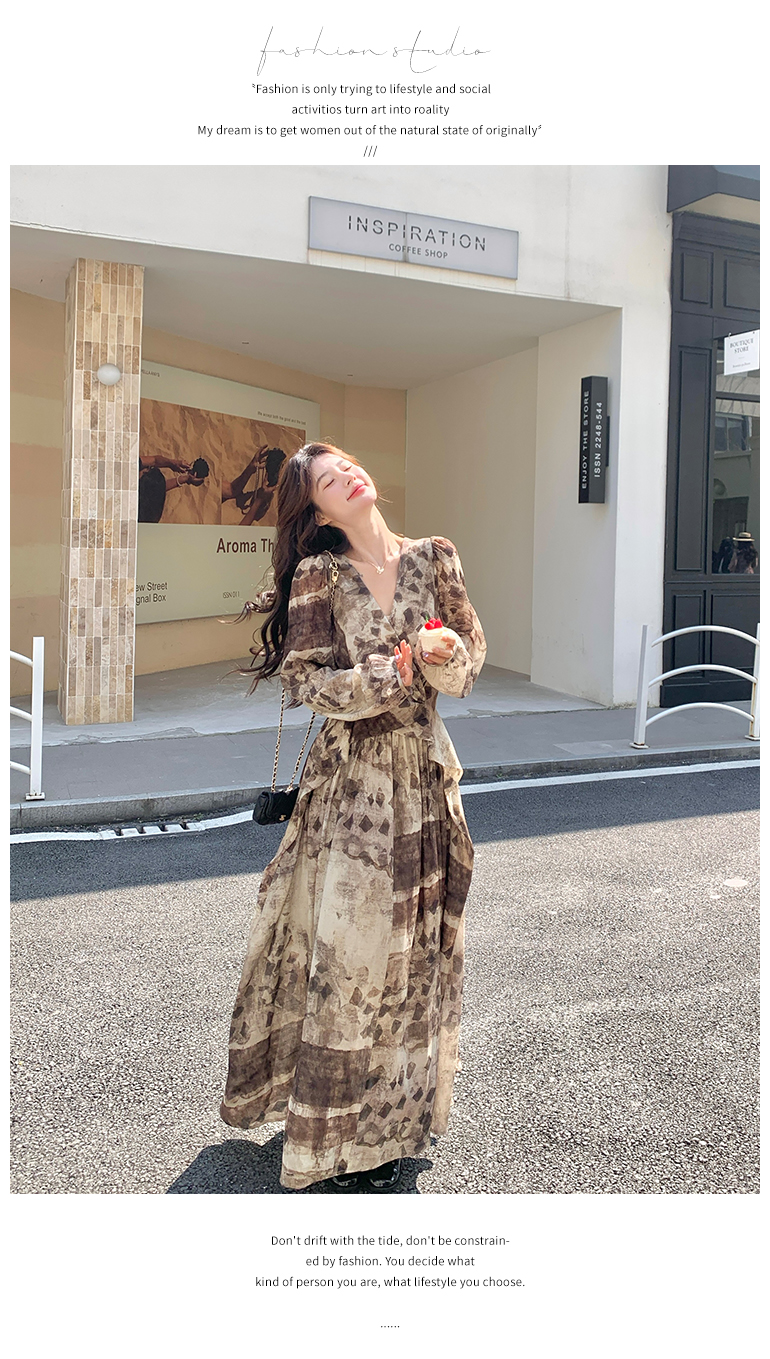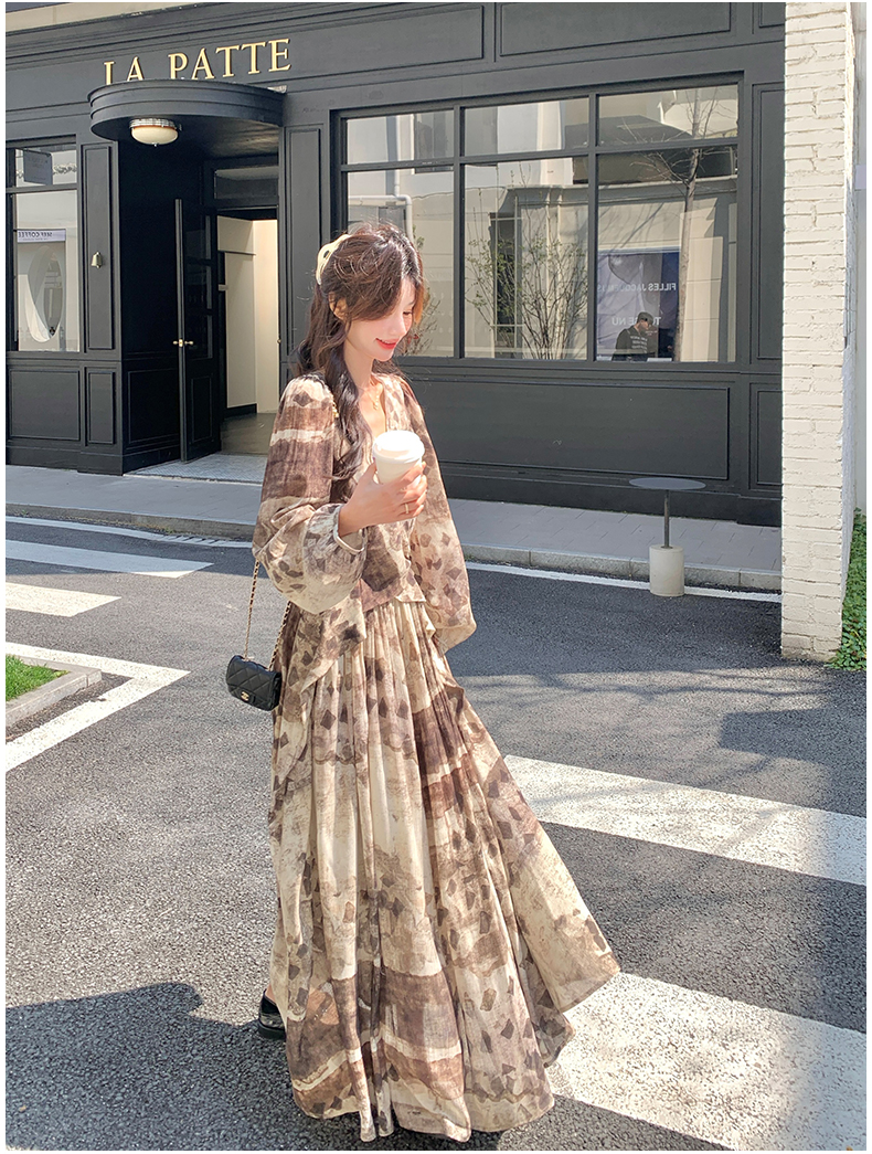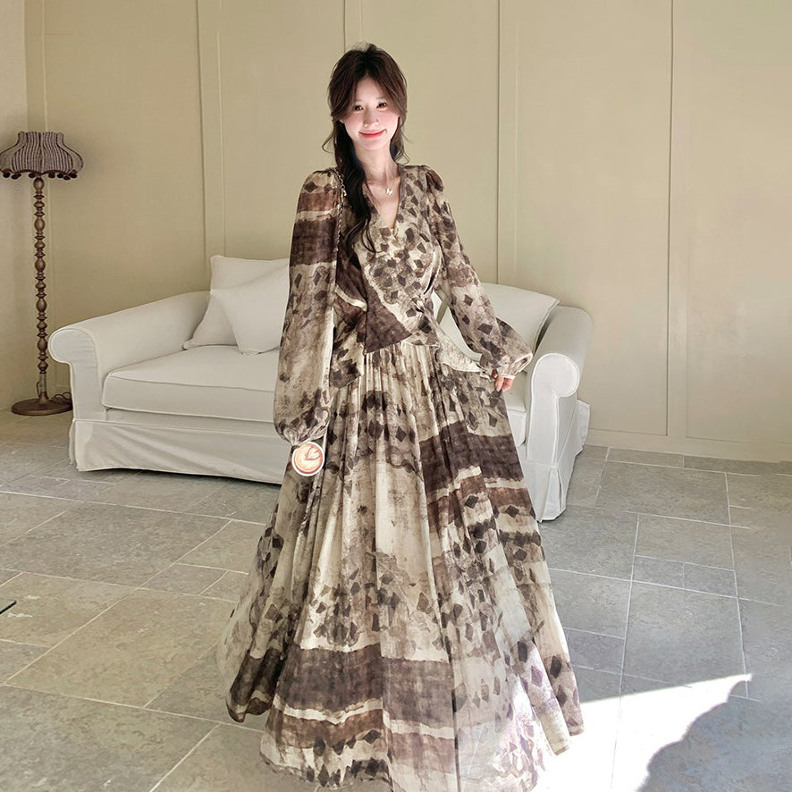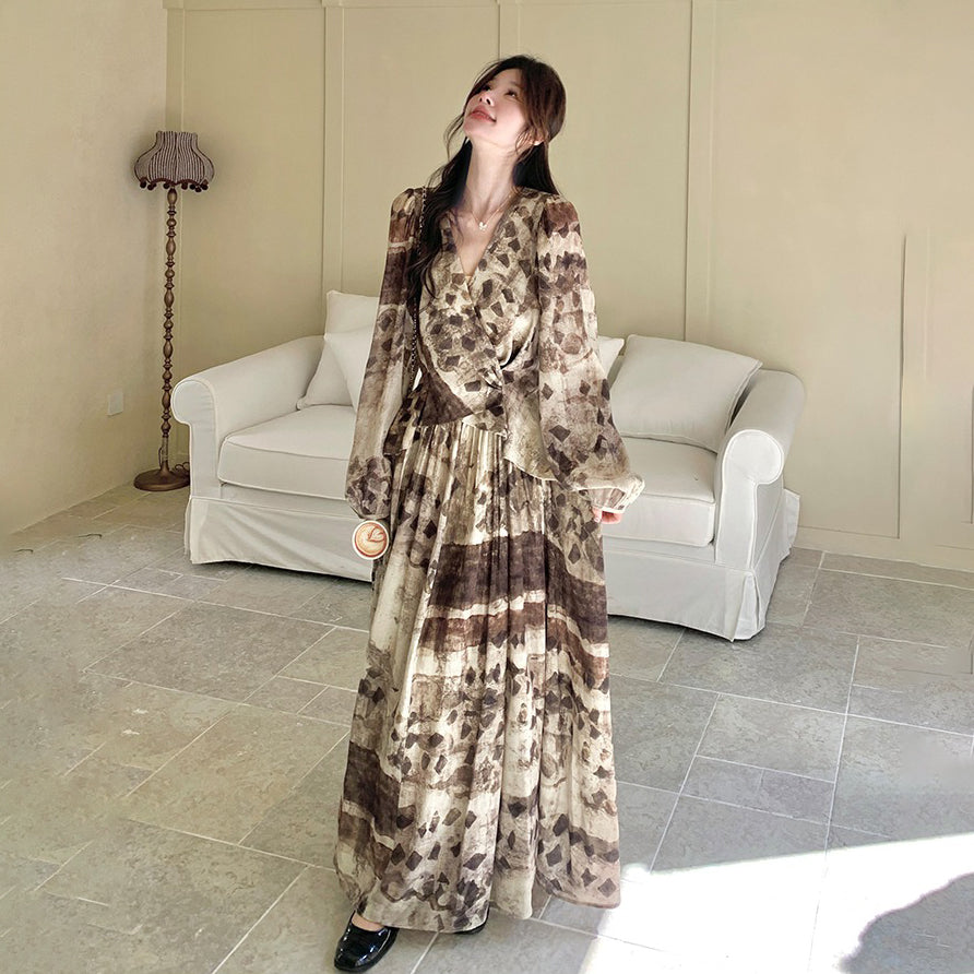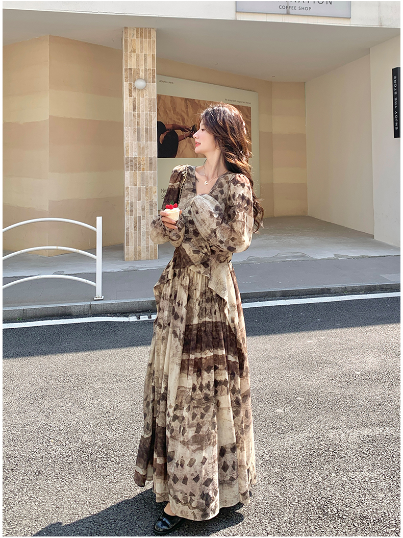 【商品名】【ワンピース】メラード調 ハイセンス 花柄 長袖ワンピース レディース 春秋 フレンチエレガント 民族調プリント マキシ丈【SHシリーズ】