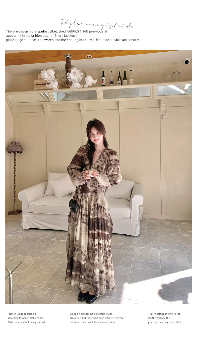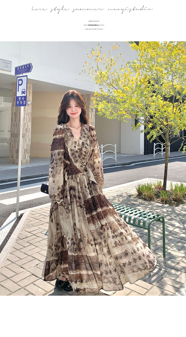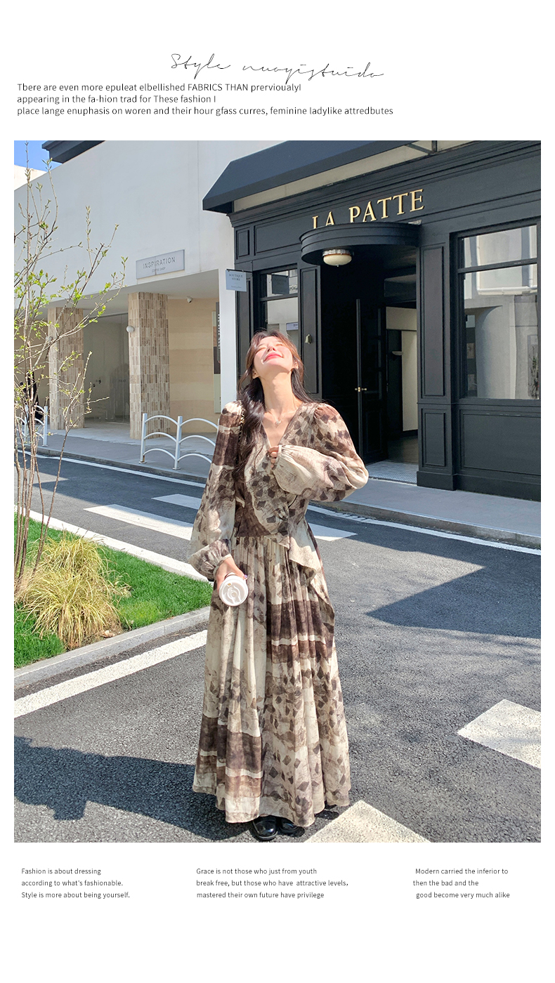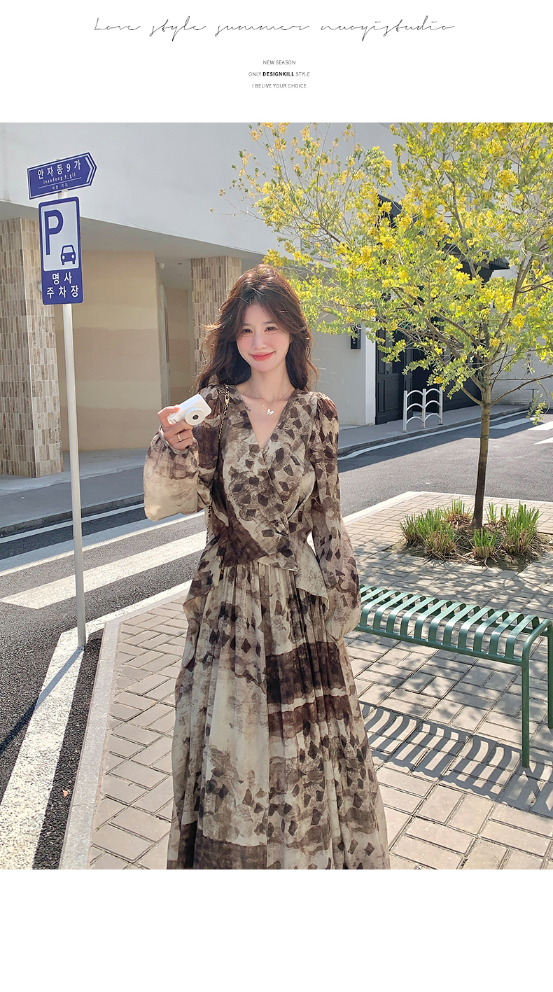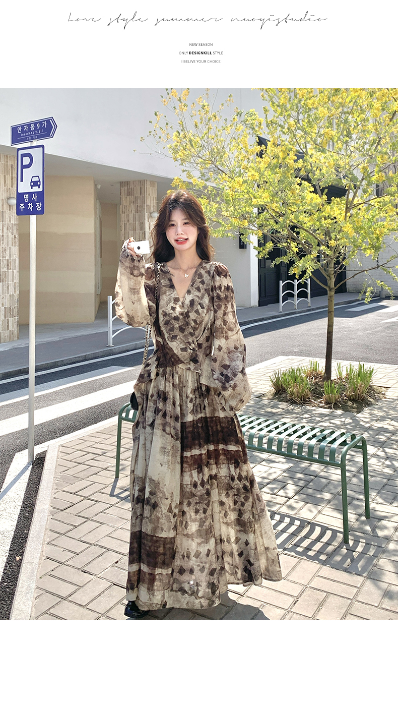 【商品名】【ワンピース】メラード調 ハイセンス 花柄 長袖ワンピース レディース 春秋 フレンチエレガント 民族調プリント マキシ丈【SHシリーズ】