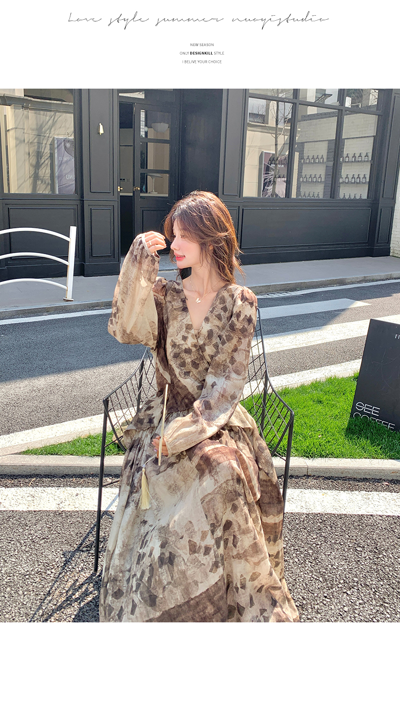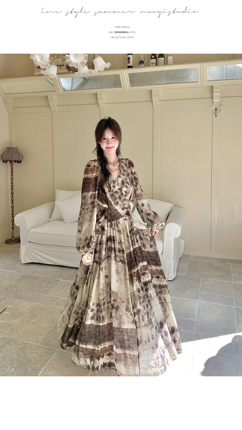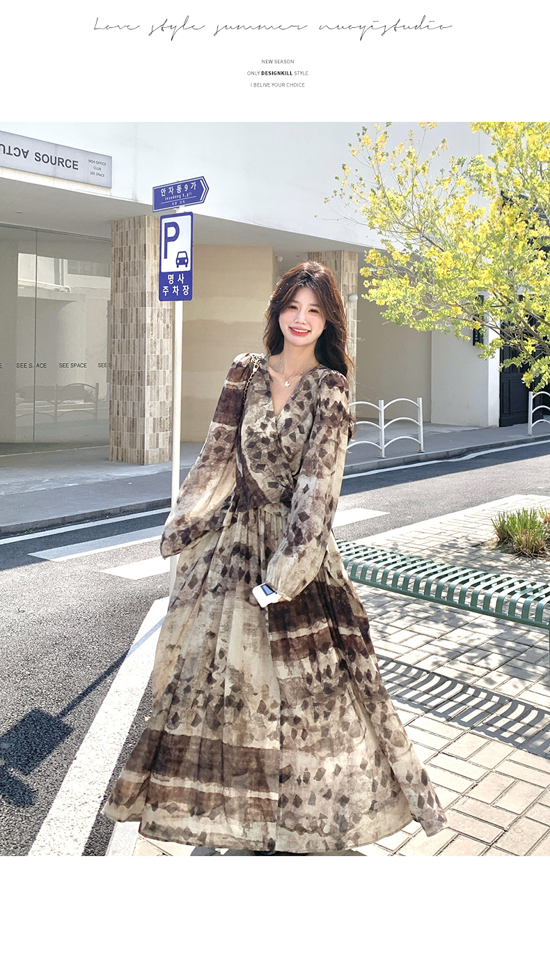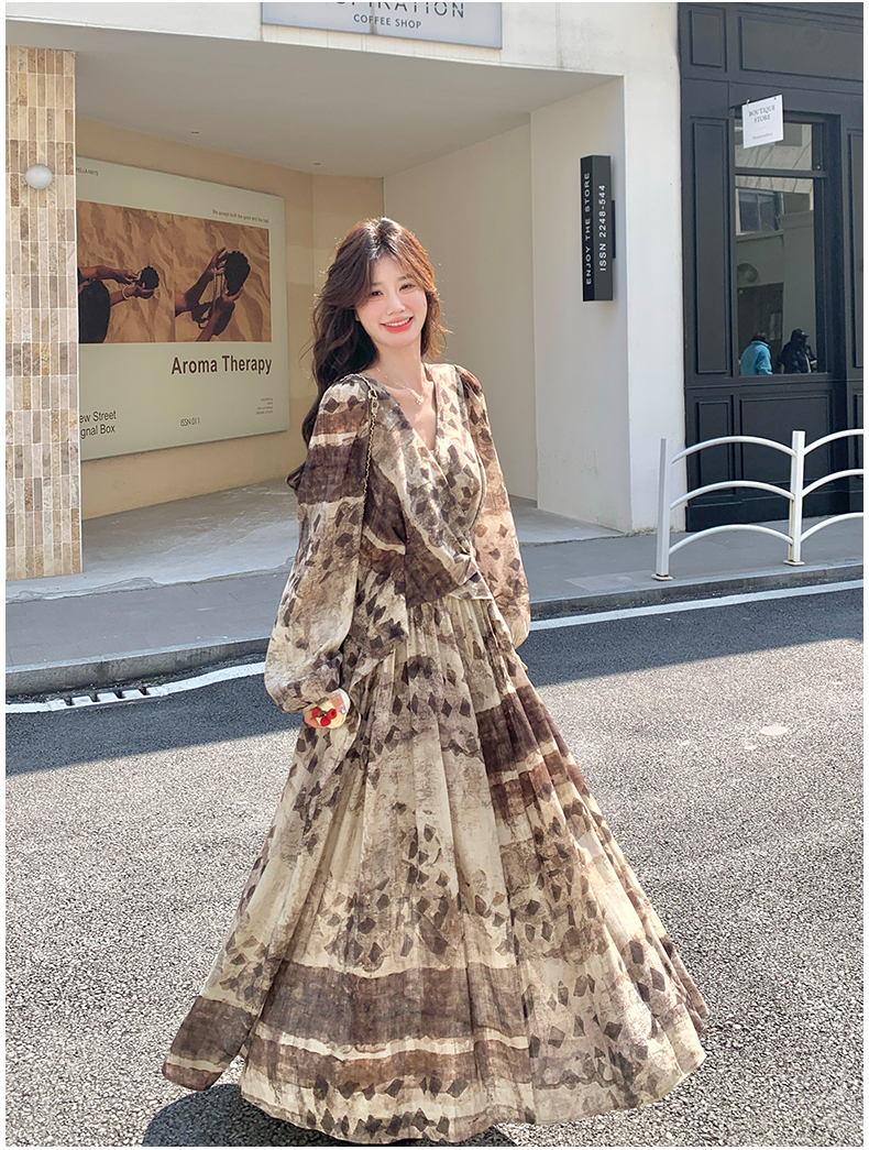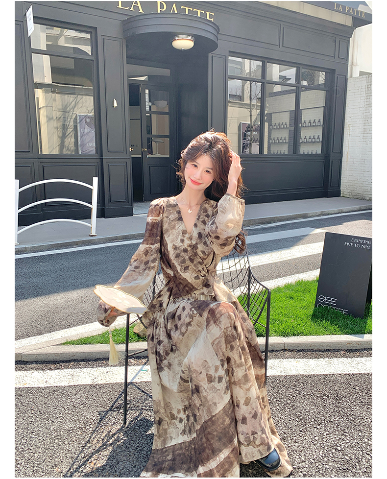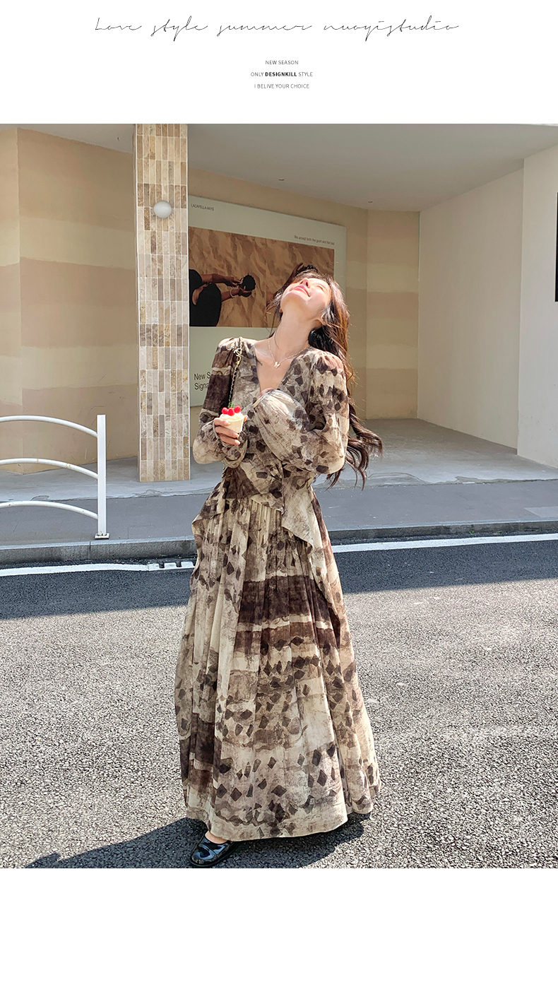 【商品名】【ワンピース】メラード調 ハイセンス 花柄 長袖ワンピース レディース 春秋 フレンチエレガント 民族調プリント マキシ丈【SHシリーズ】