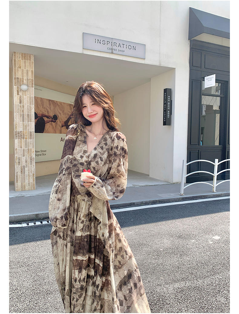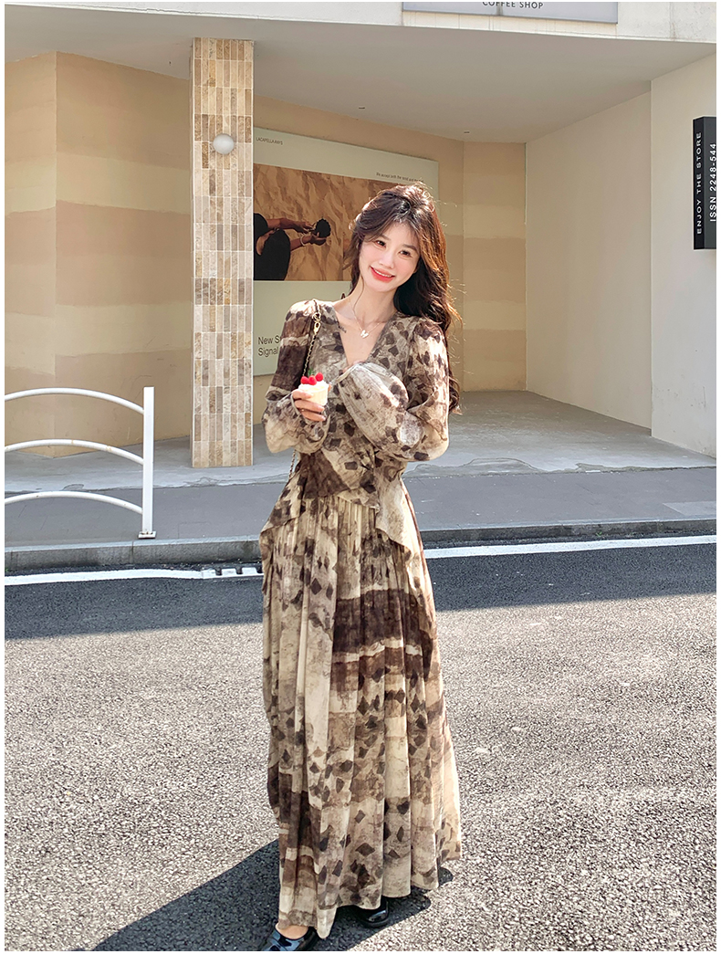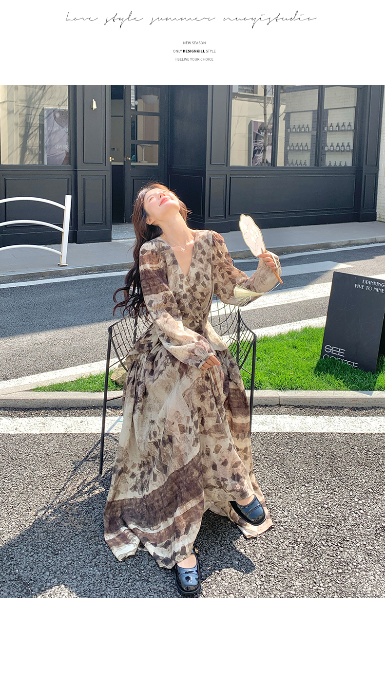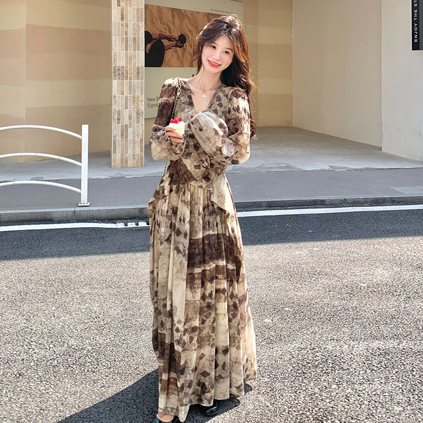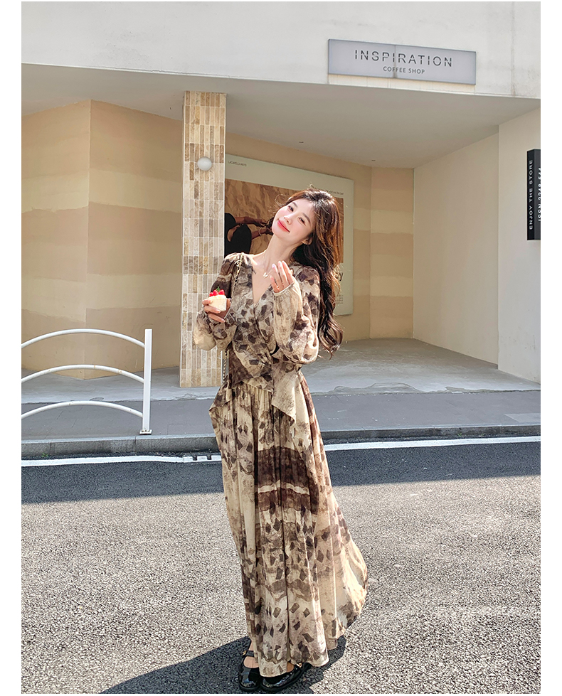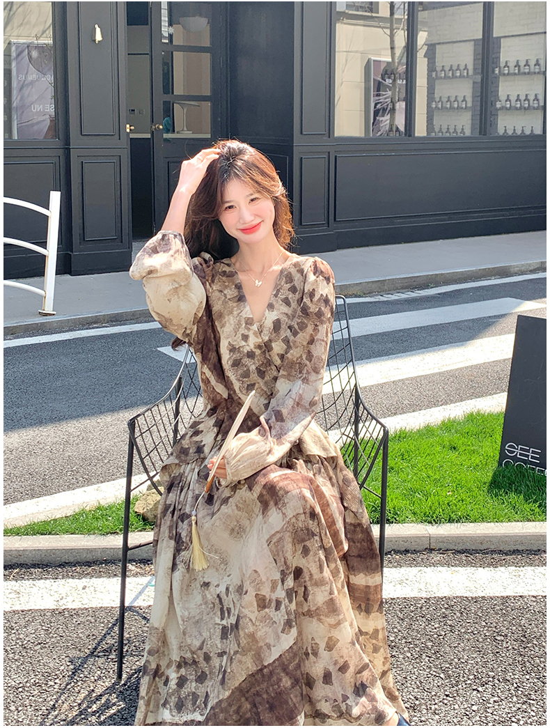 【商品名】【ワンピース】メラード調 ハイセンス 花柄 長袖ワンピース レディース 春秋 フレンチエレガント 民族調プリント マキシ丈【SHシリーズ】