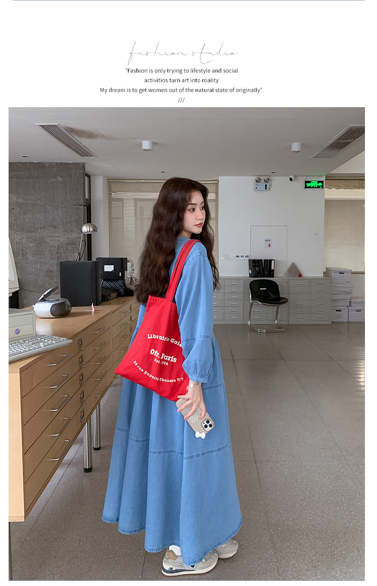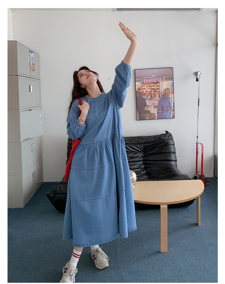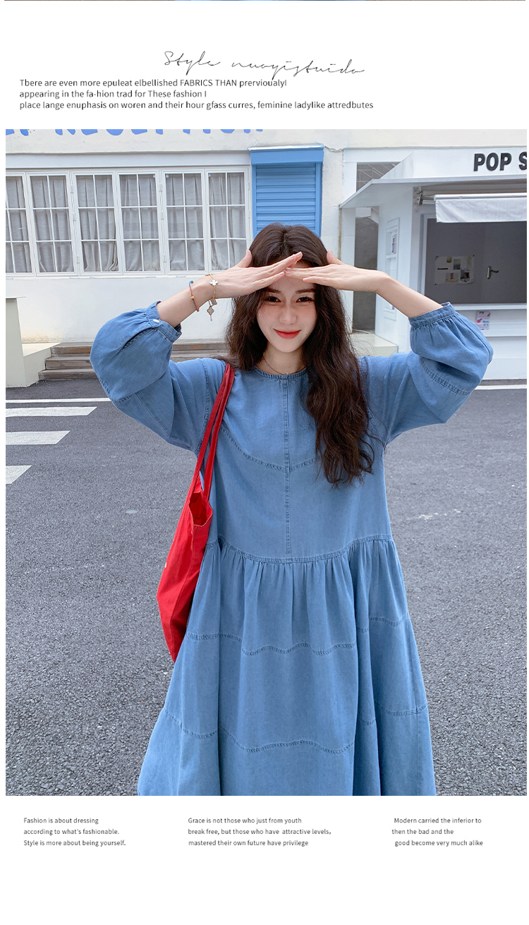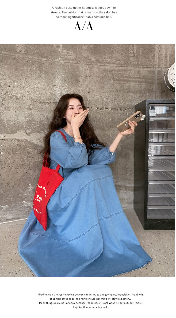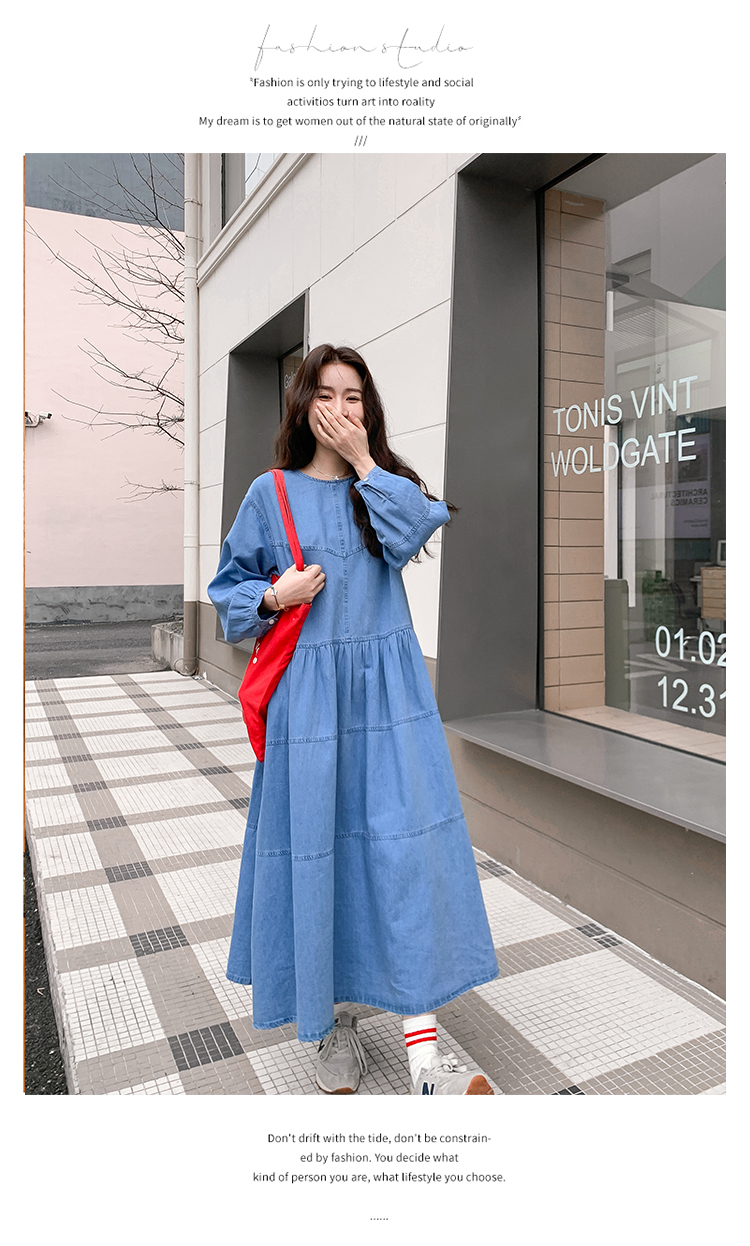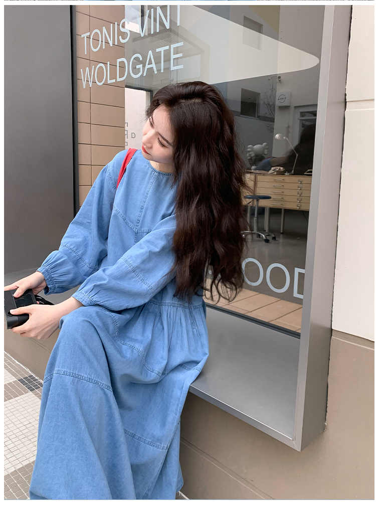 【商品名】【ワンピース】デニムロング 長袖ワンピース 春秋 2025新作 レトロカジュアル 細見え 優しげフェミニン ドーパミンスタイル【JZシリーズ】