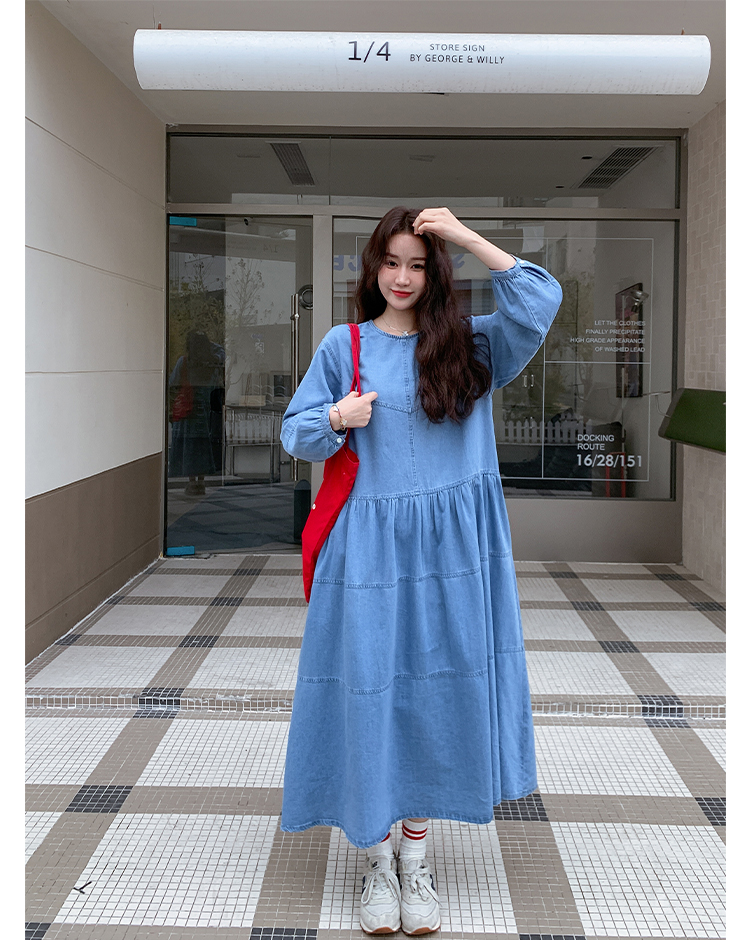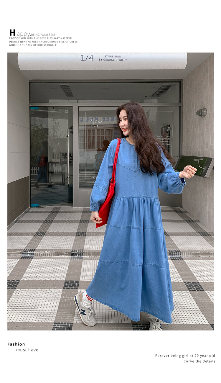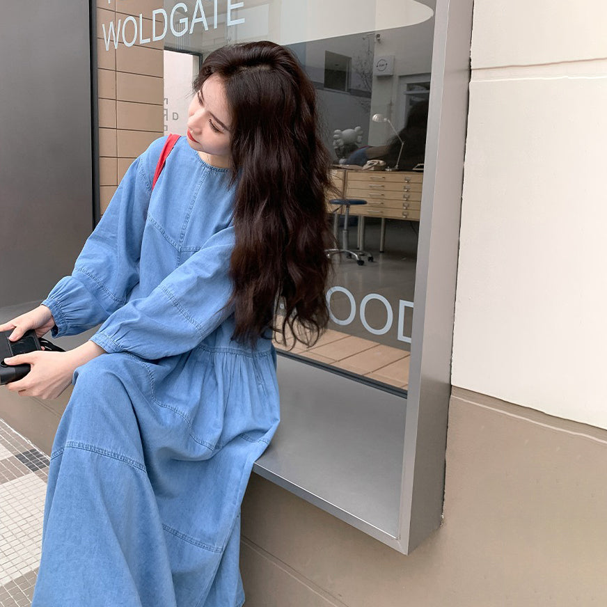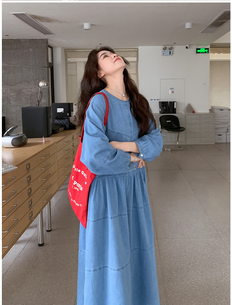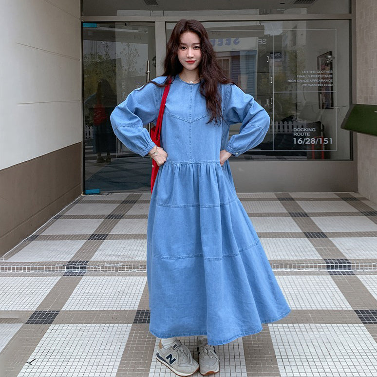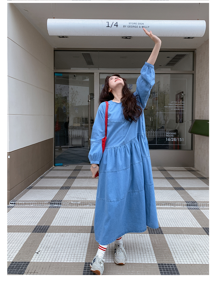 【ワンピース】デニムロング 長袖ワンピース 春秋 2025新作 レトロカジュアル 細見え 優しげフェミニン ドーパミンスタイル【JZシリーズ】