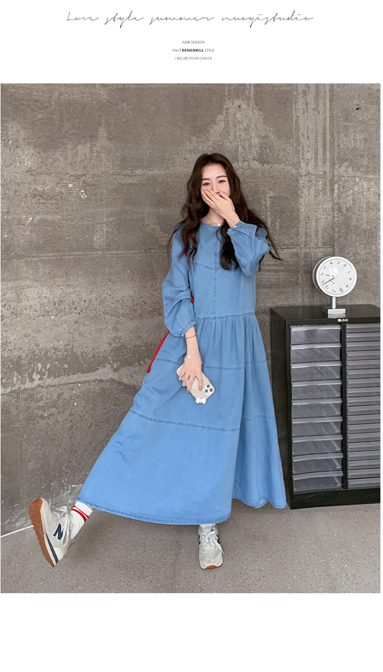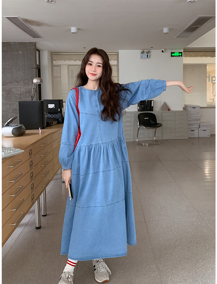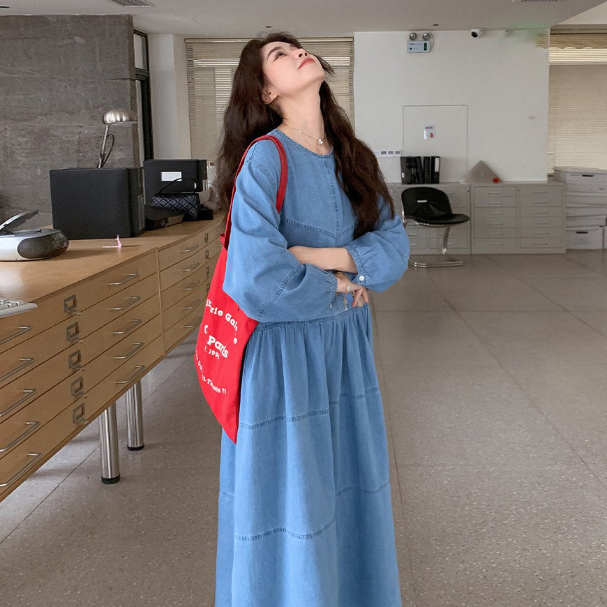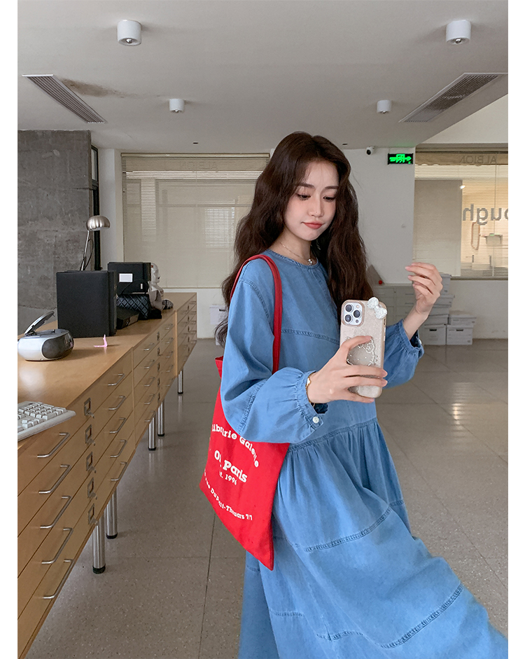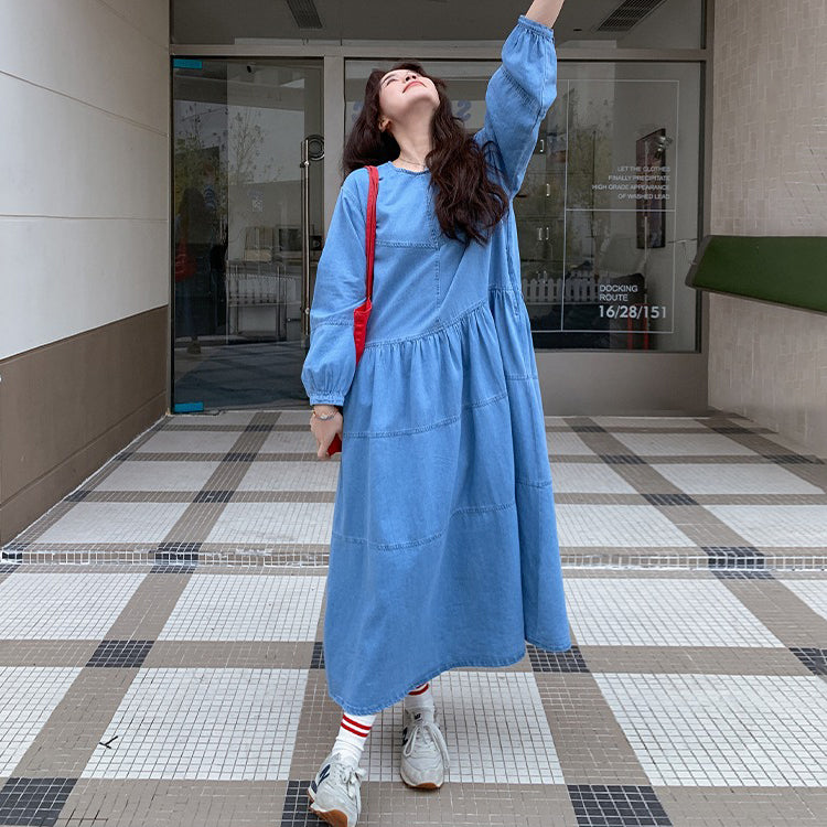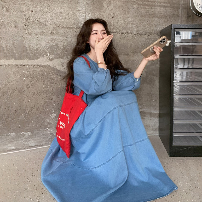 【ワンピース】デニムロング 長袖ワンピース 春秋 2025新作 レトロカジュアル 細見え 優しげフェミニン ドーパミンスタイル【JZシリーズ】