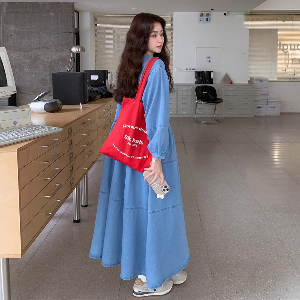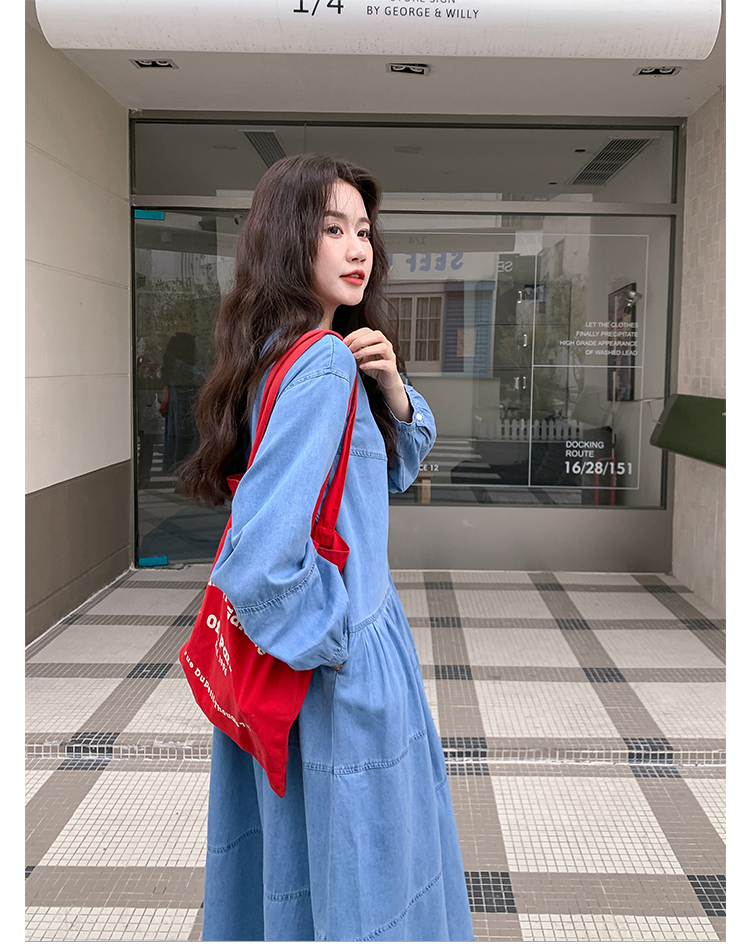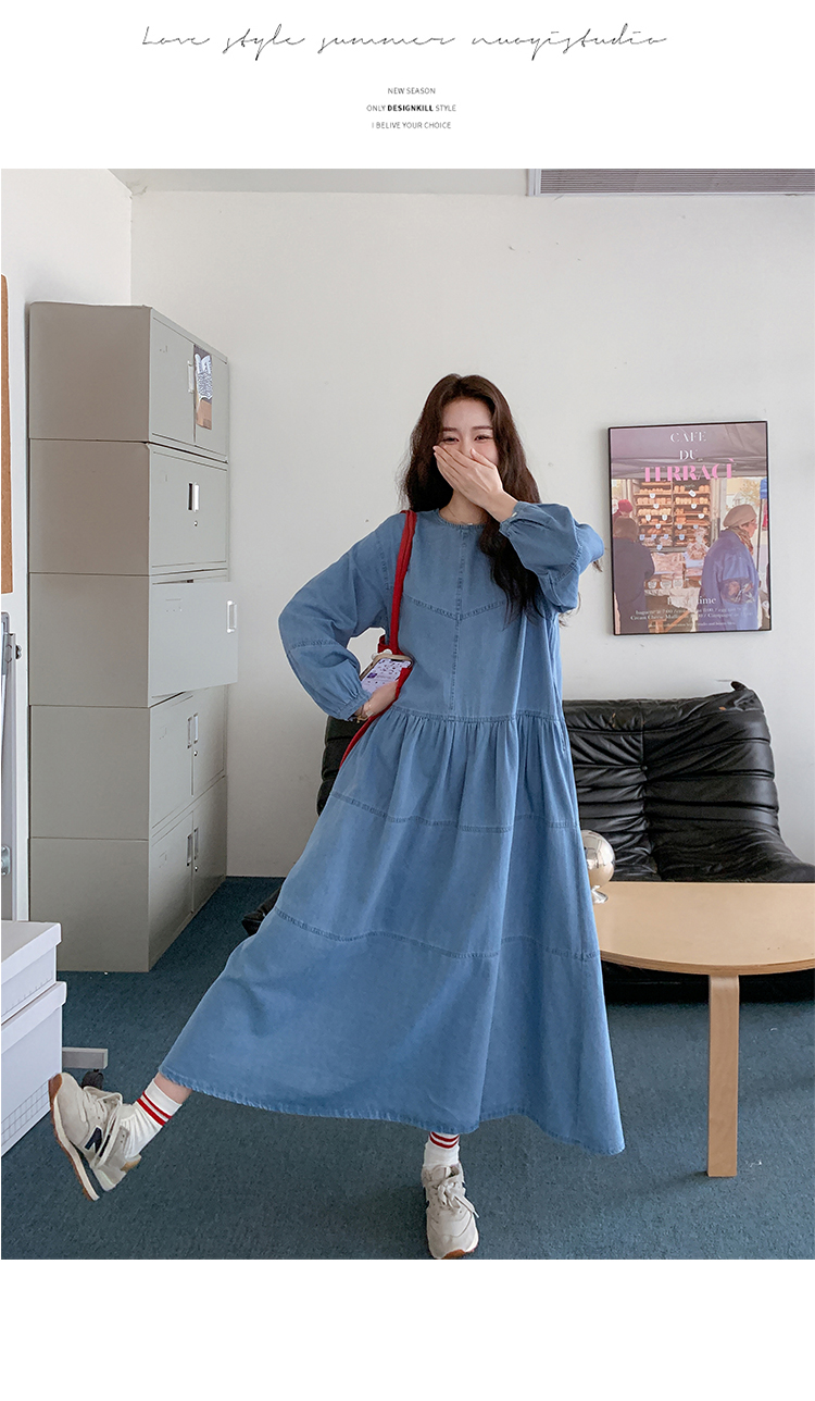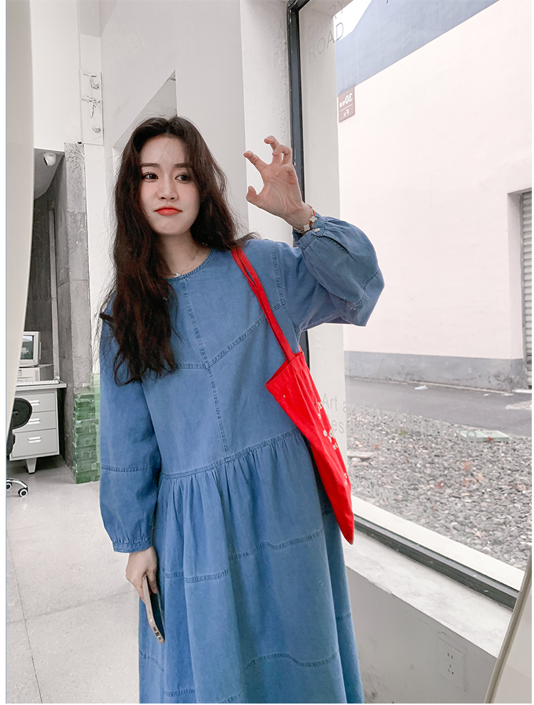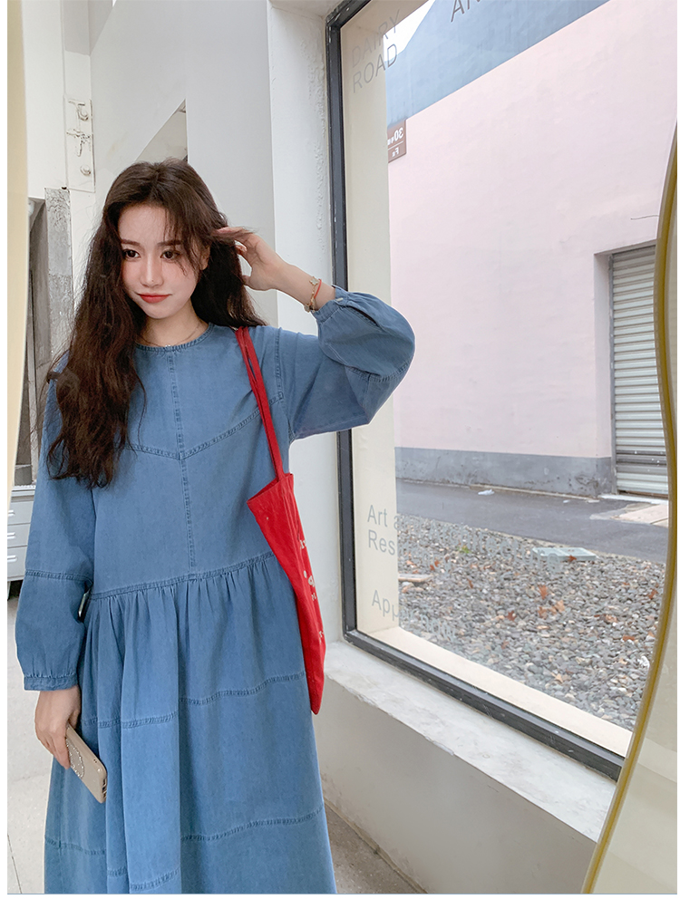 【ワンピース】デニムロング 長袖ワンピース 春秋 2025新作 レトロカジュアル 細見え 優しげフェミニン ドーパミンスタイル【JZシリーズ】