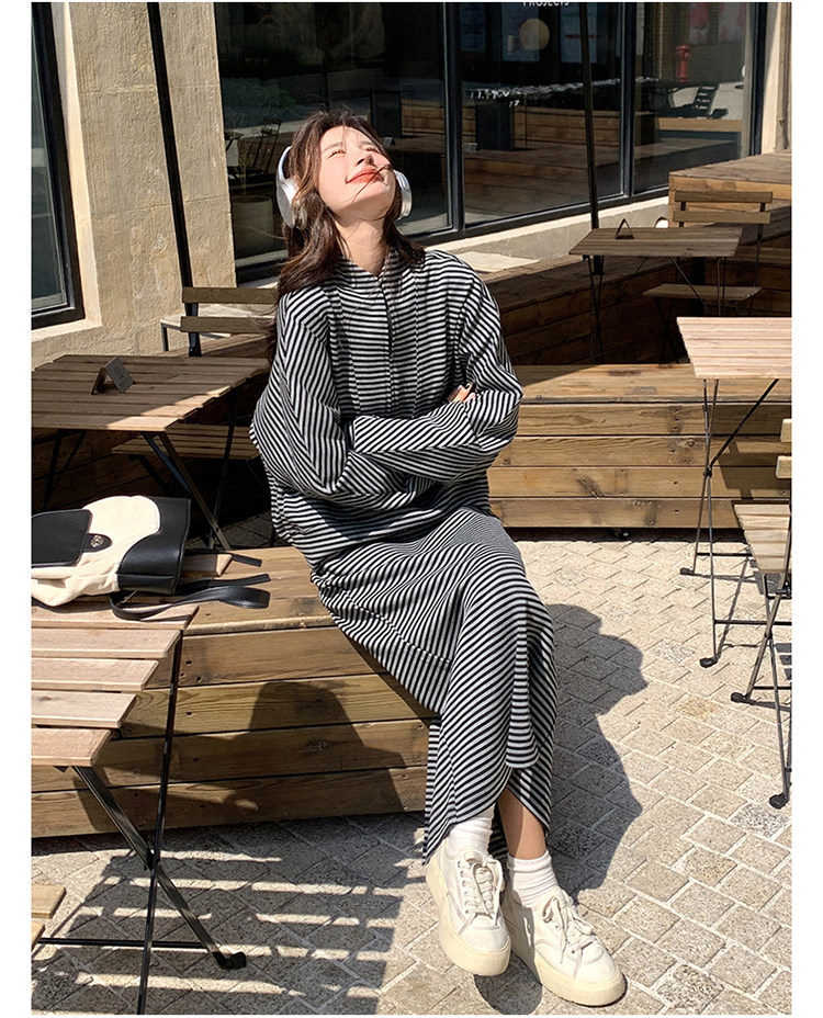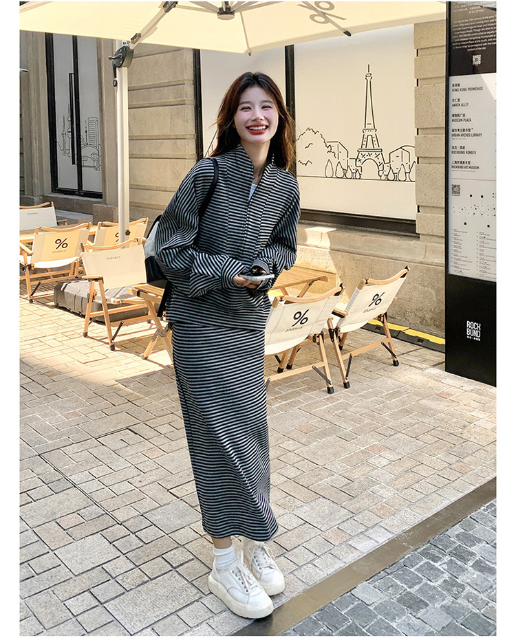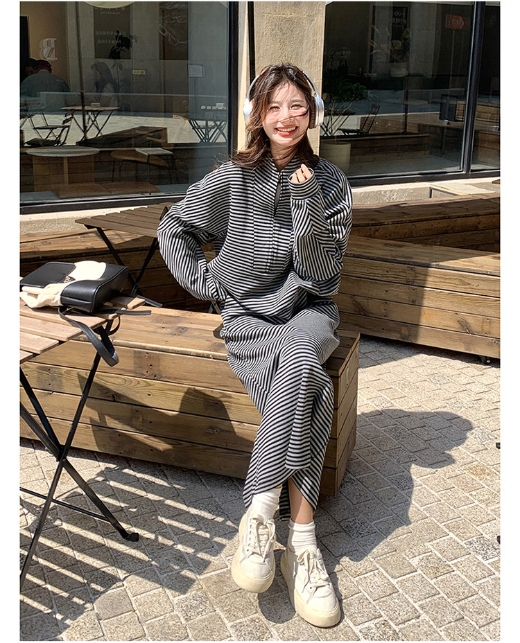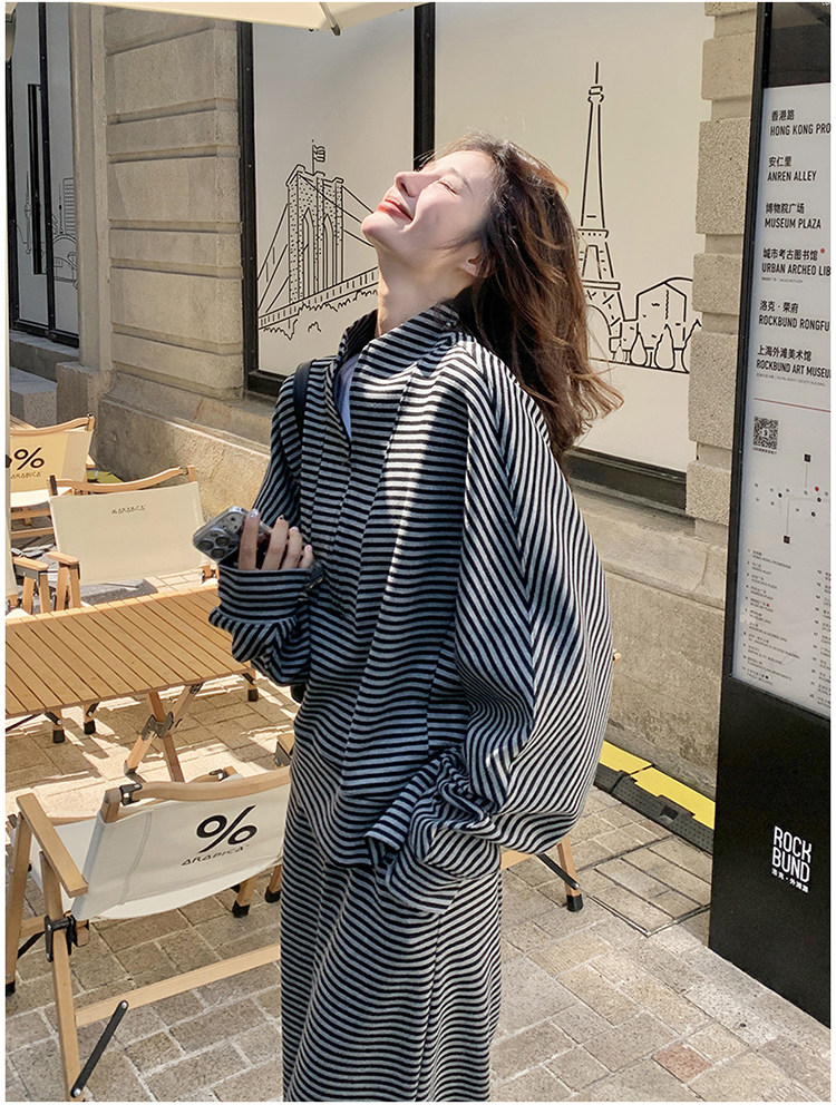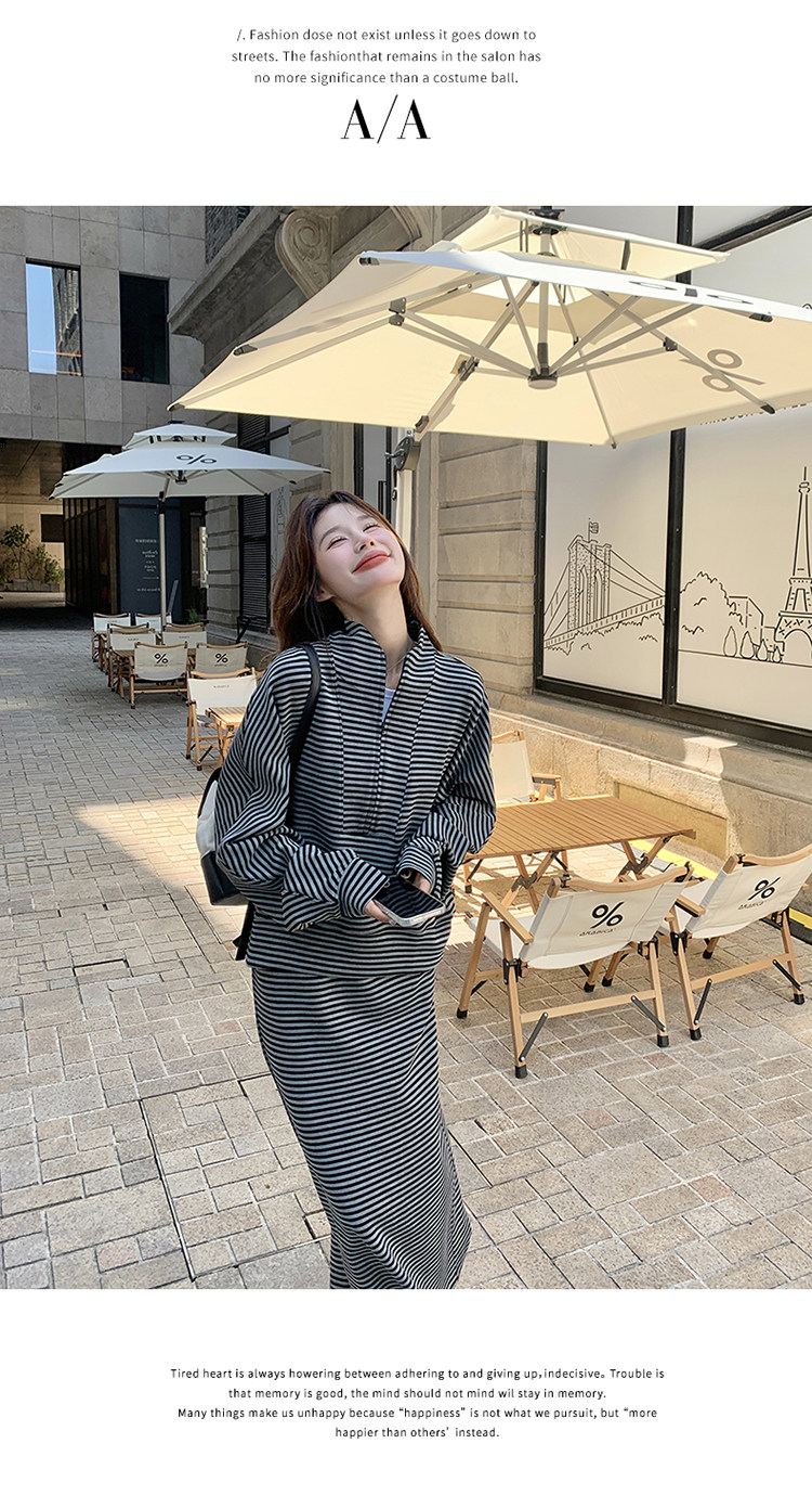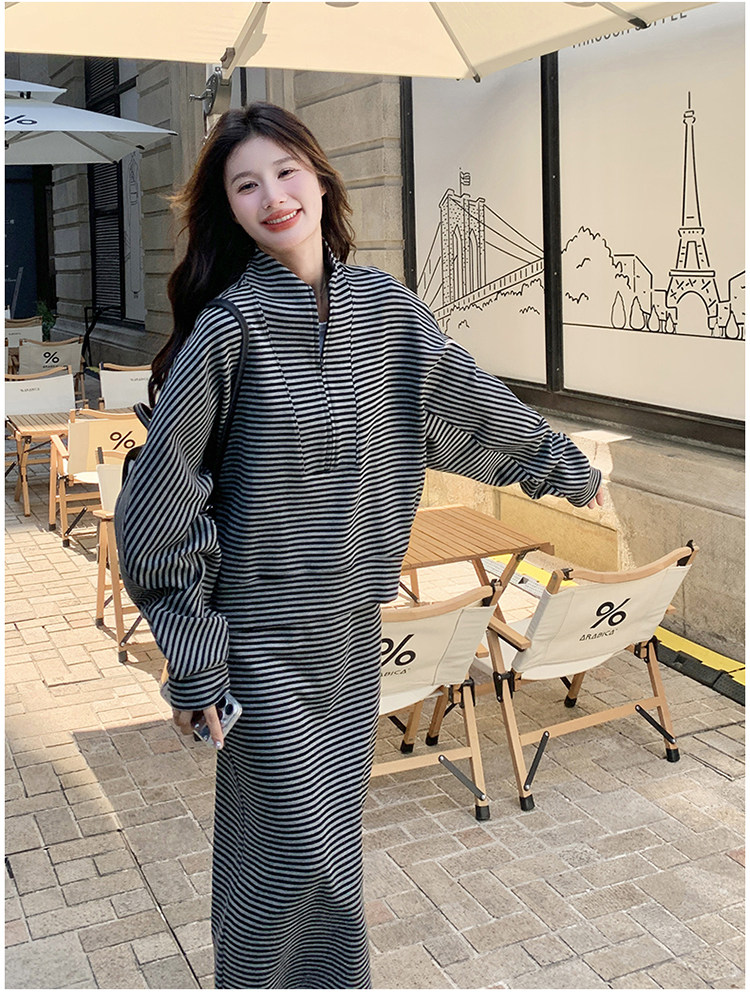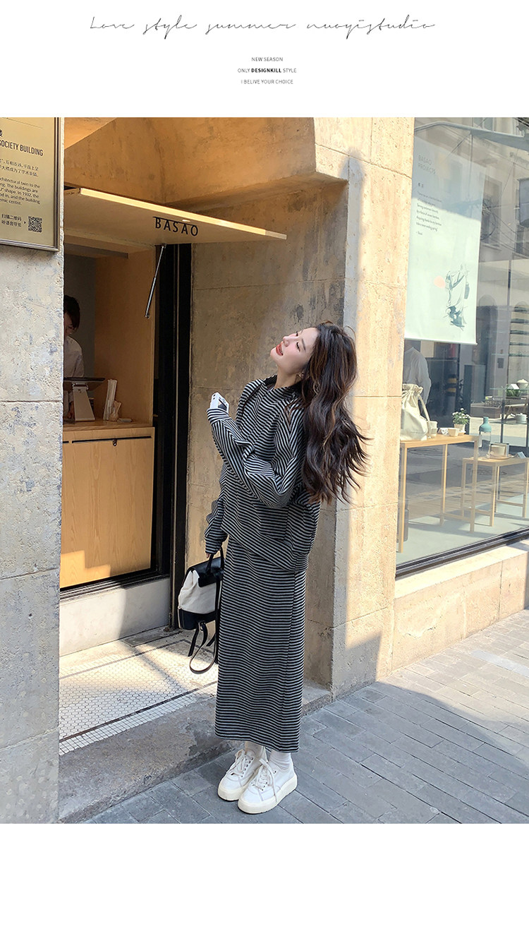 2点セット!【セットアップ】韓国トレンド ストライプスウェット パーカー+スカート 春秋 2点セット カジュアル OOTDコーデ フェミニン【SHシリーズ】