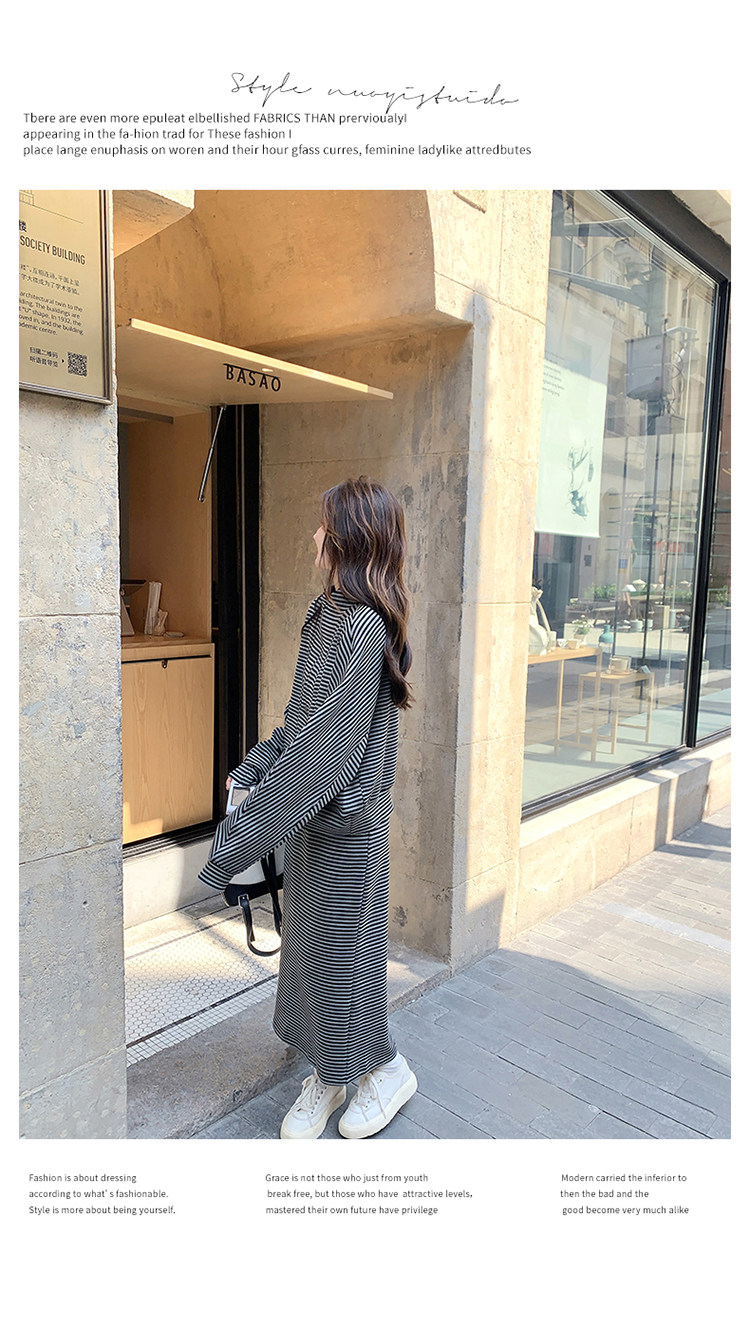 【商品名】2点セット!【セットアップ】韓国トレンド ストライプスウェット パーカー+スカート 春秋 2点セット カジュアル OOTDコーデ フェミニン【SHシリーズ】