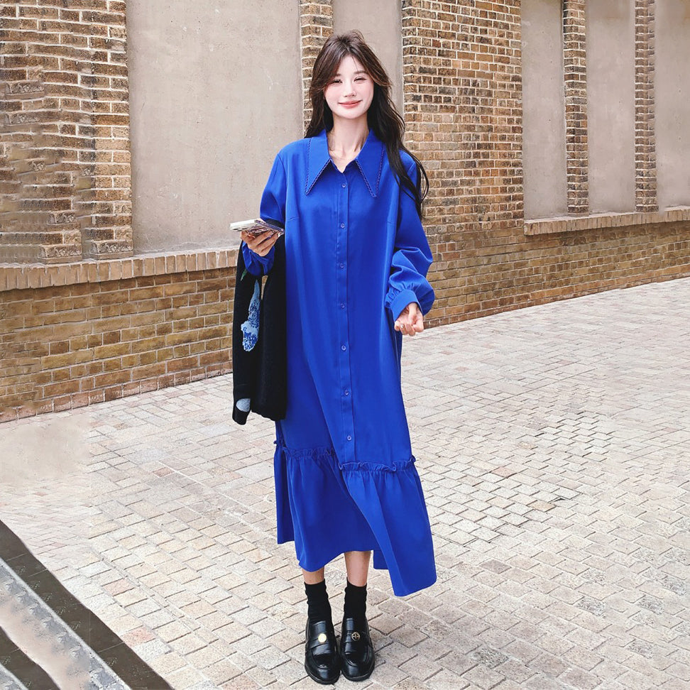 【ワンピース】春 秋 冬 刺繍 スイート 切り替え シャツ 長袖 ワンピース 【SHシリーズ】