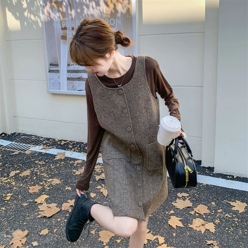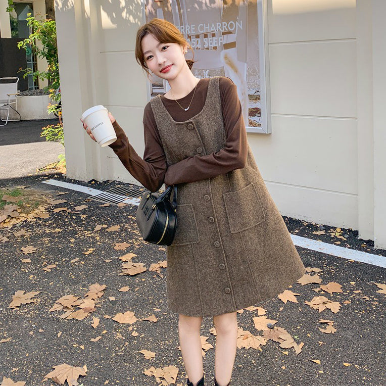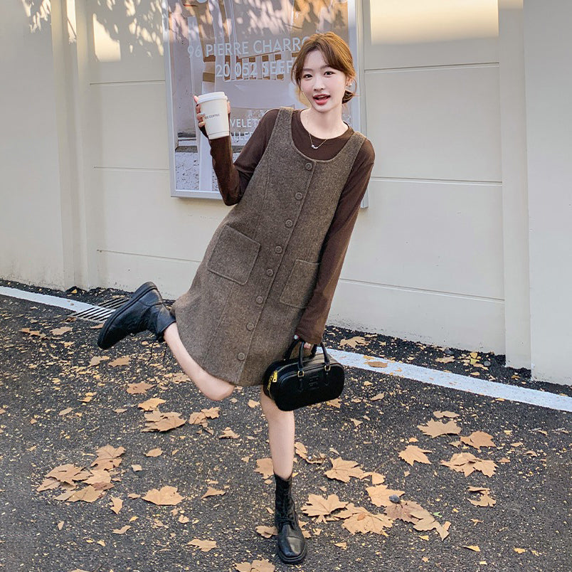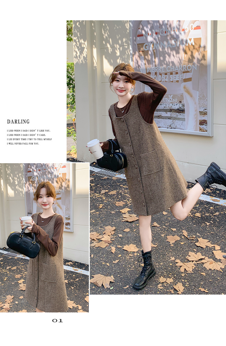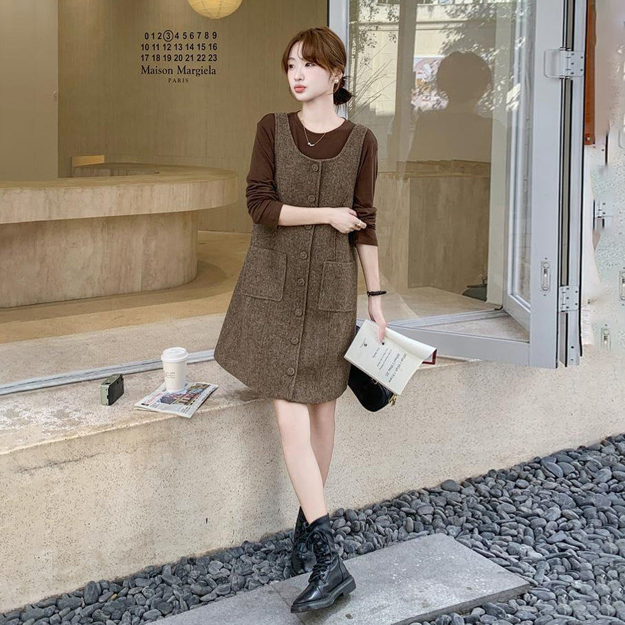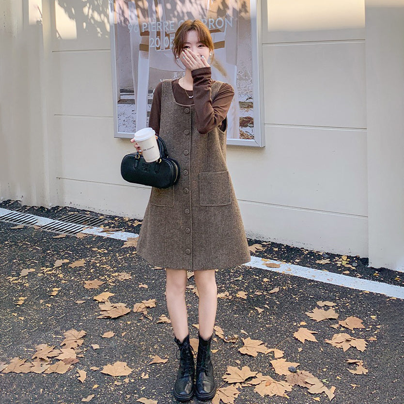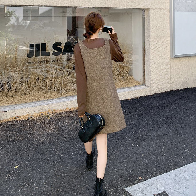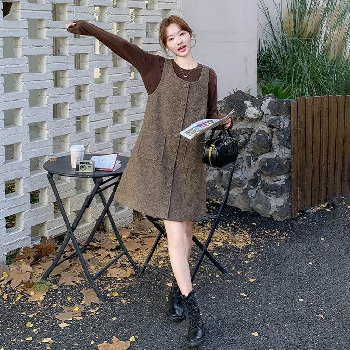 【商品名】2点セット!【セットアップ】メラード ノースリーブ ウールワンピース レディース 秋冬新作 高級感 インナーワンピース【JZシリーズ】