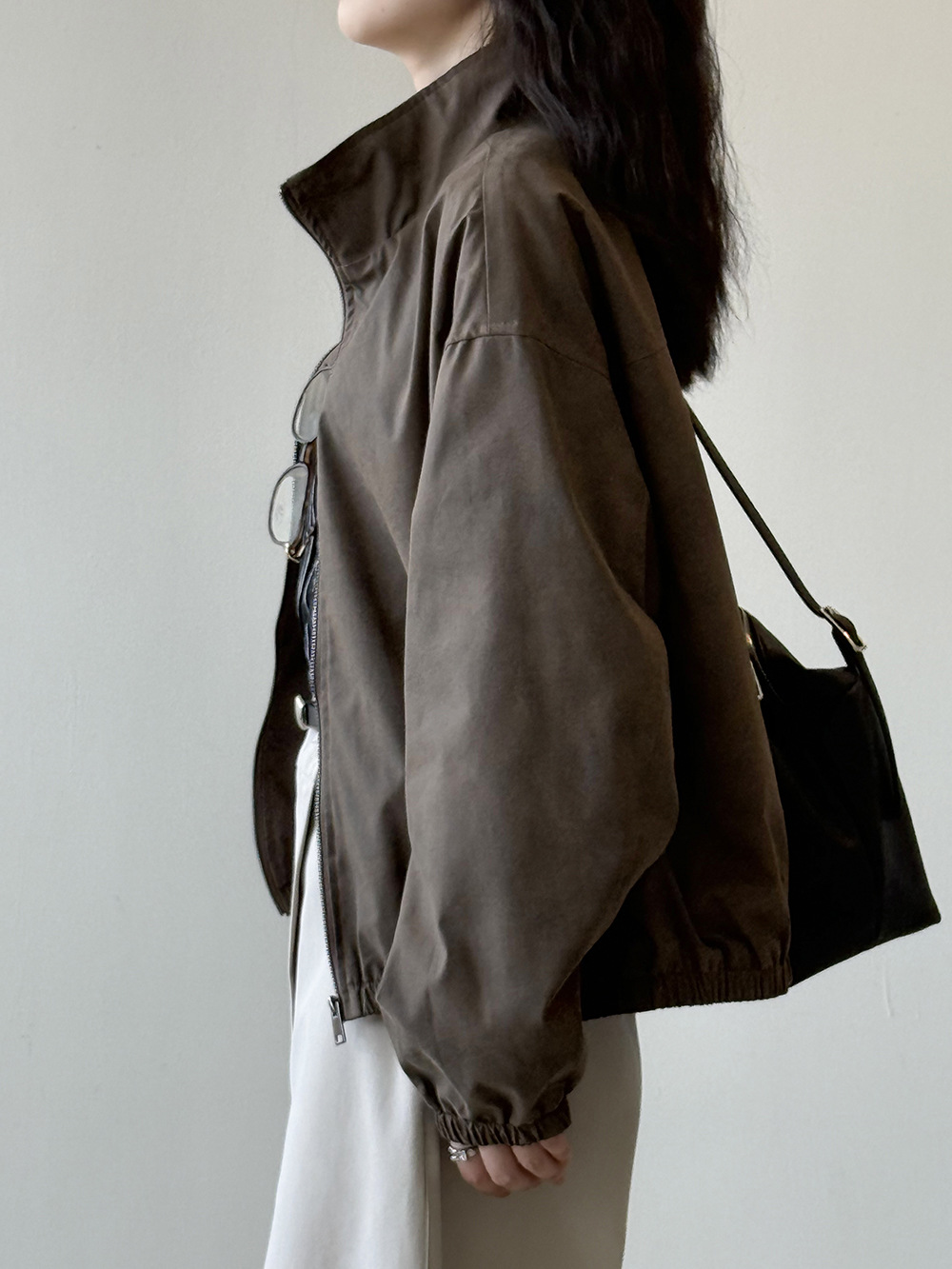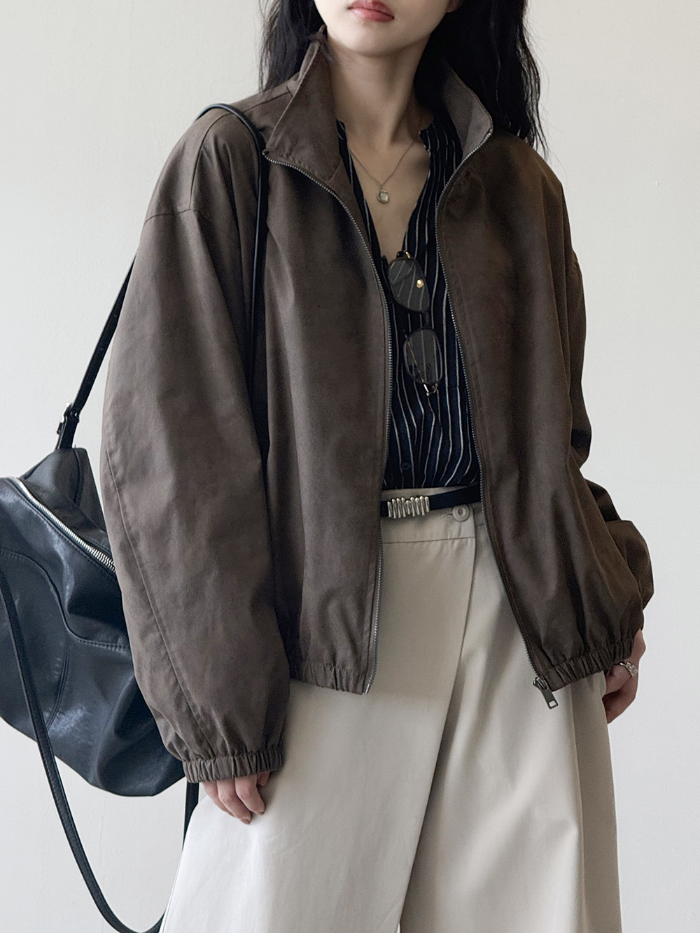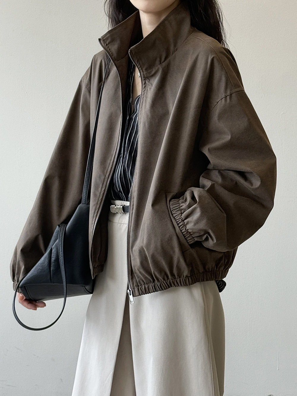 【アウター】スタンドカラー ワークジャケット レディース 春秋 小洒落 ゆったり カジュアル ショート丈 ジップアップジャケット【JZシリーズ】