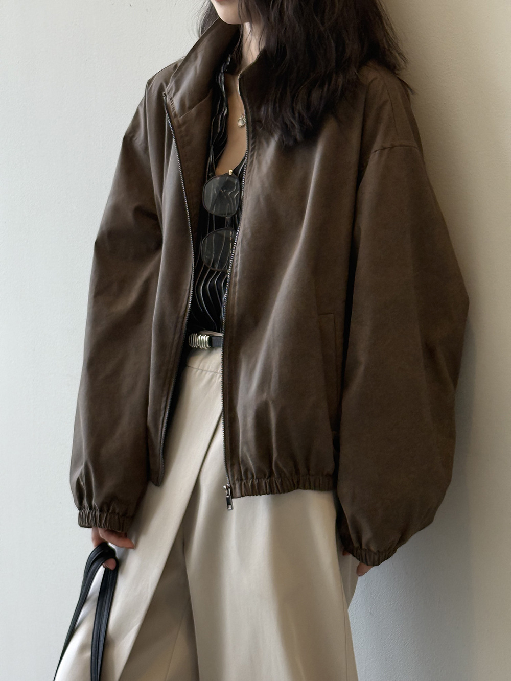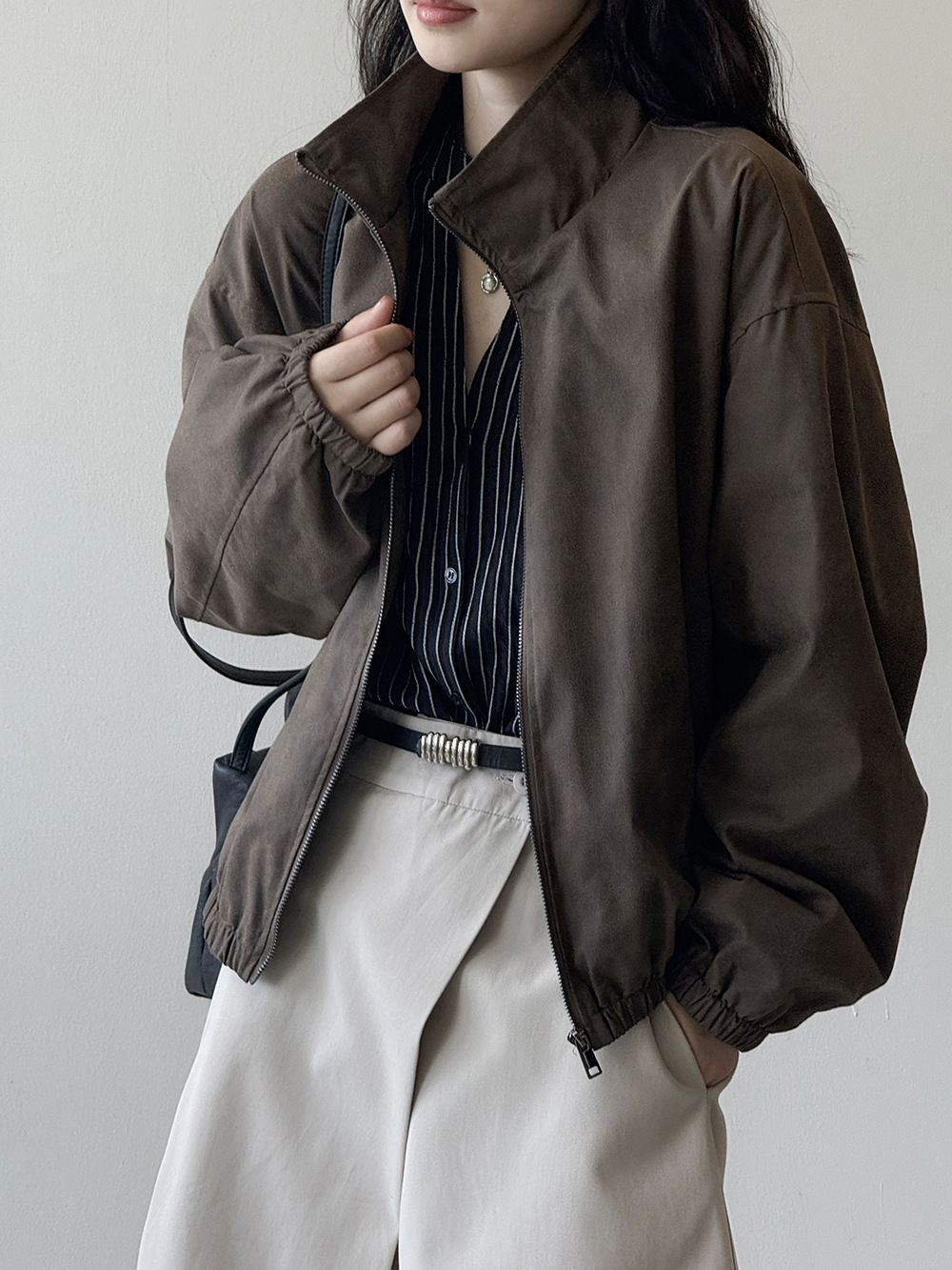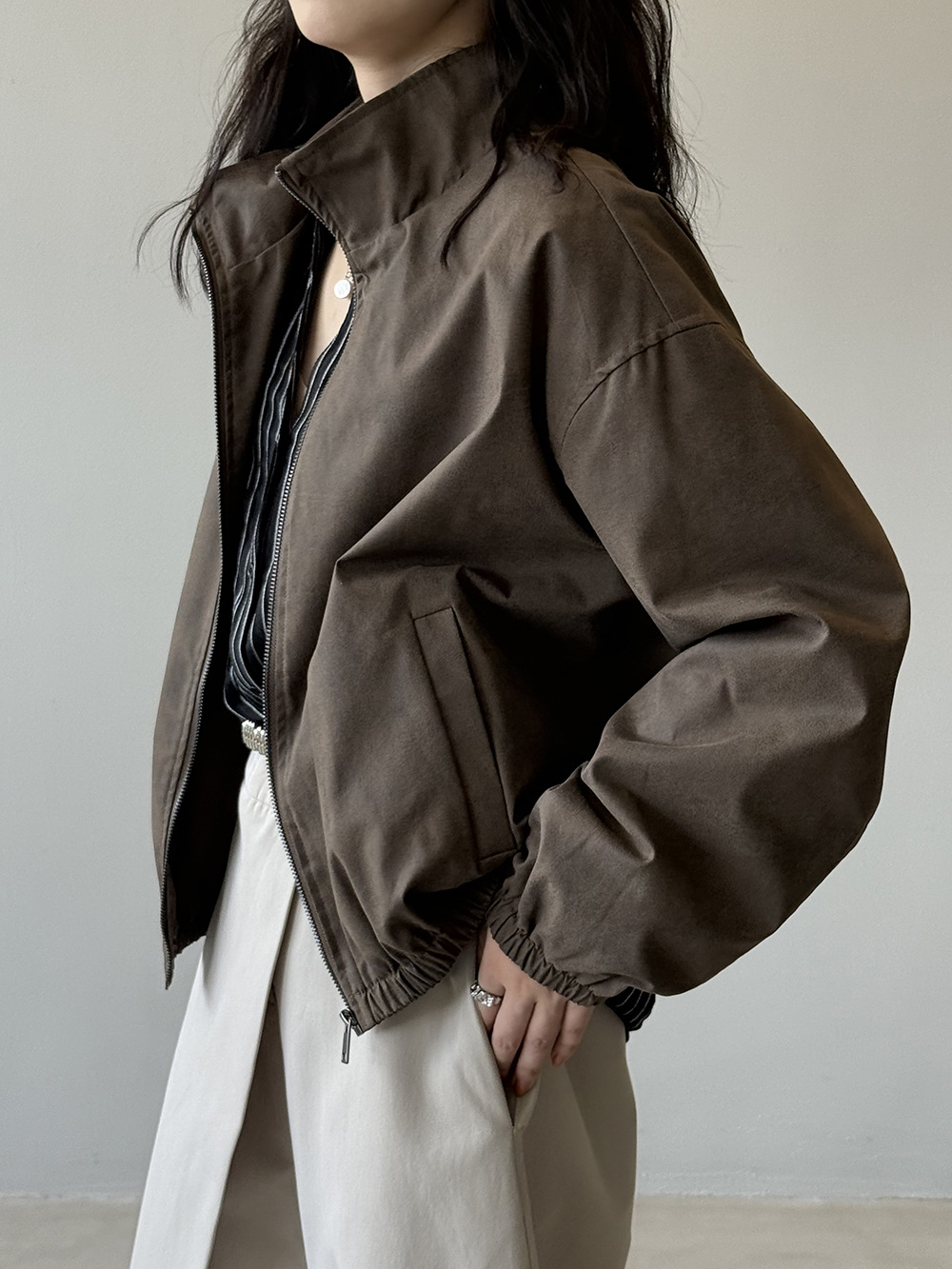 【アウター】スタンドカラー ワークジャケット レディース 春秋 小洒落 ゆったり カジュアル ショート丈 ジップアップジャケット【JZシリーズ】