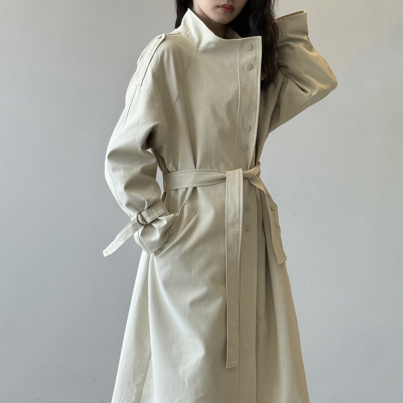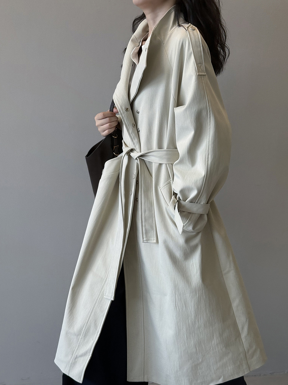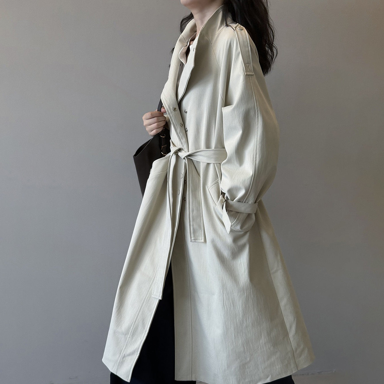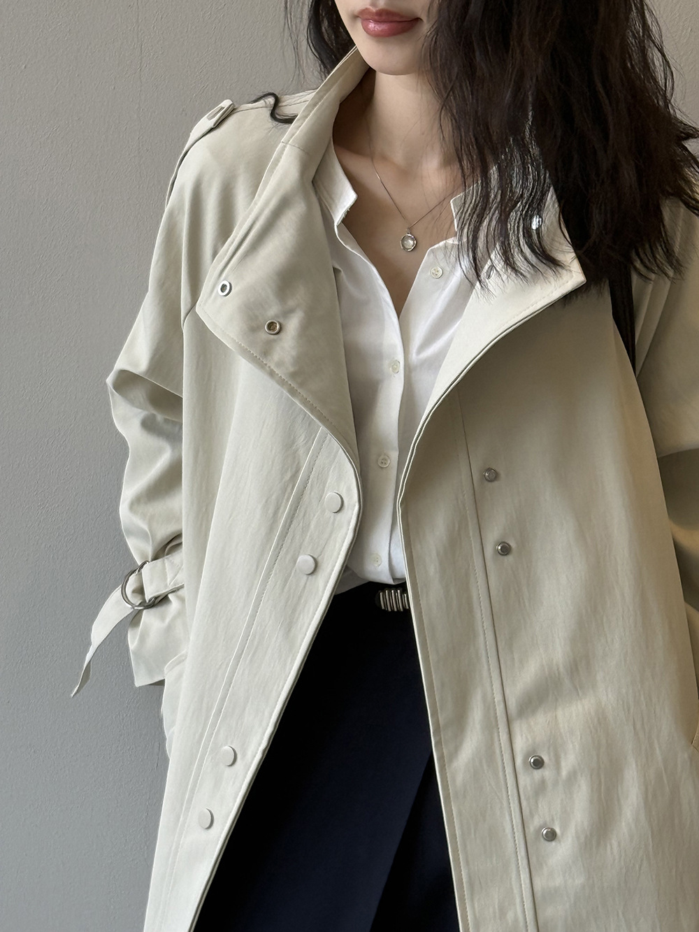 【商品名】【アウター】気質 オフィススタイル トレンチコート レディース 春秋 レトロ 万能 ミディアム丈 コート ベルト付き【JZシリーズ】