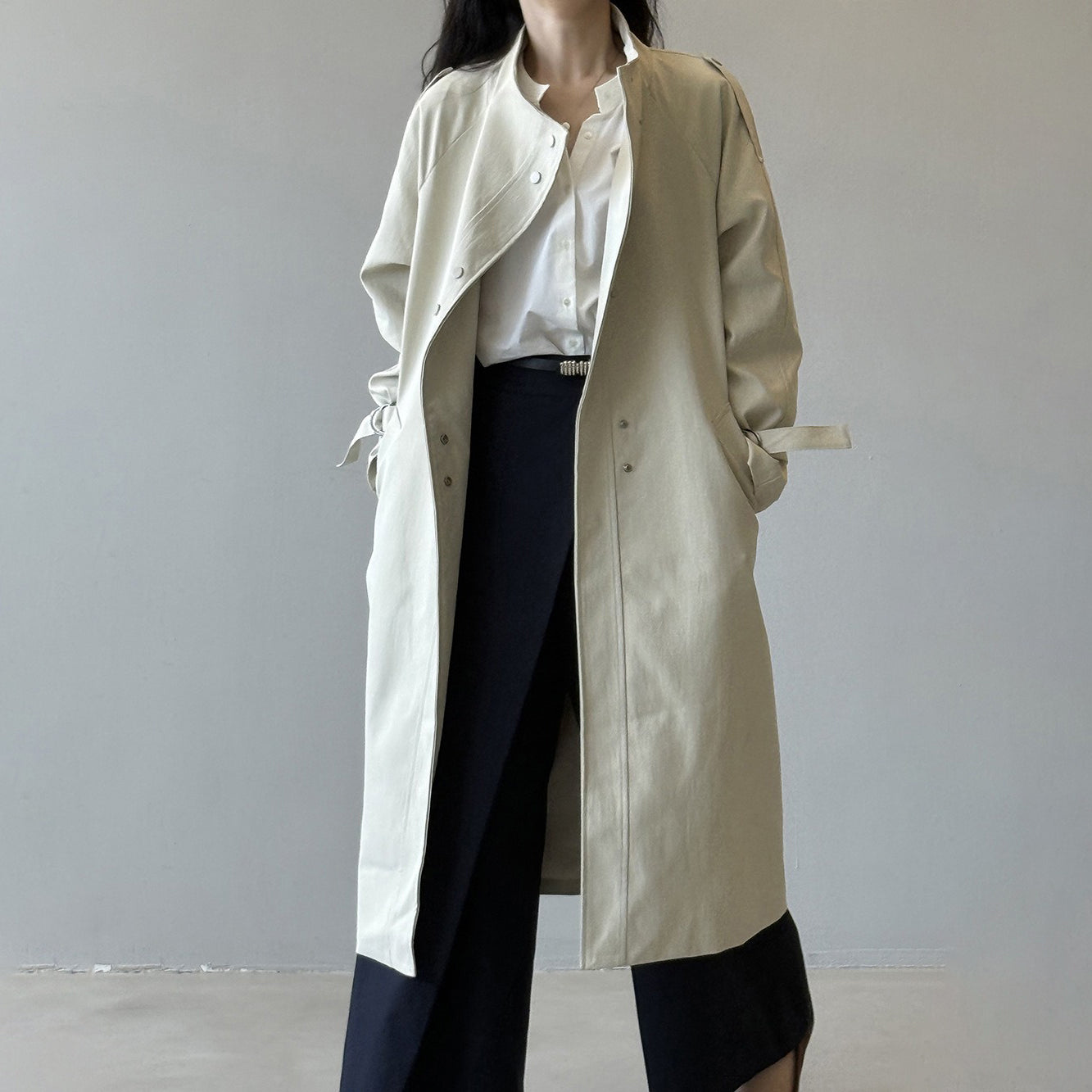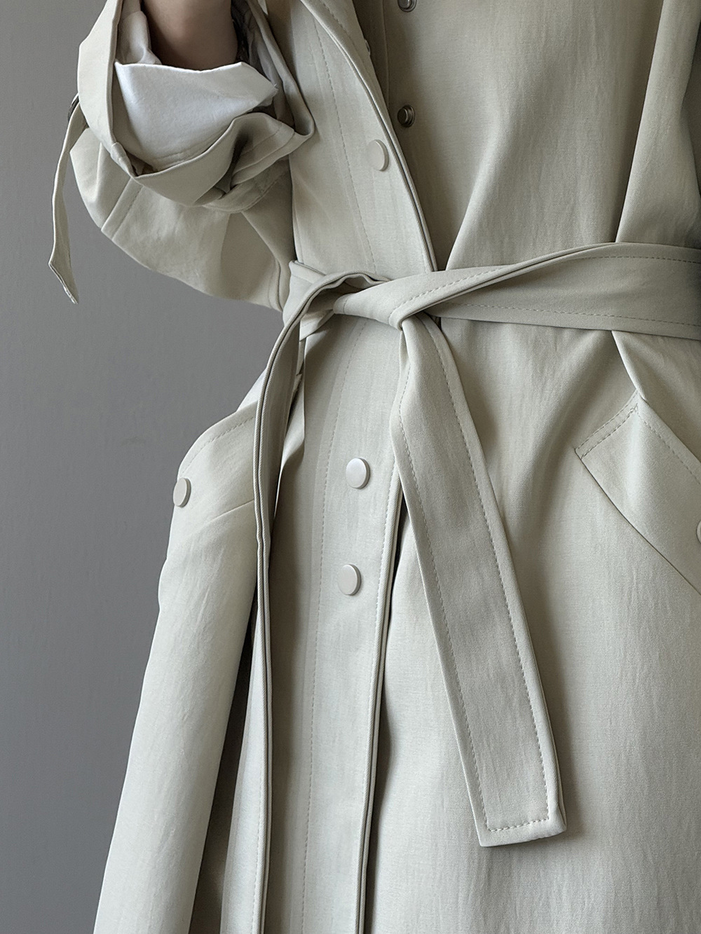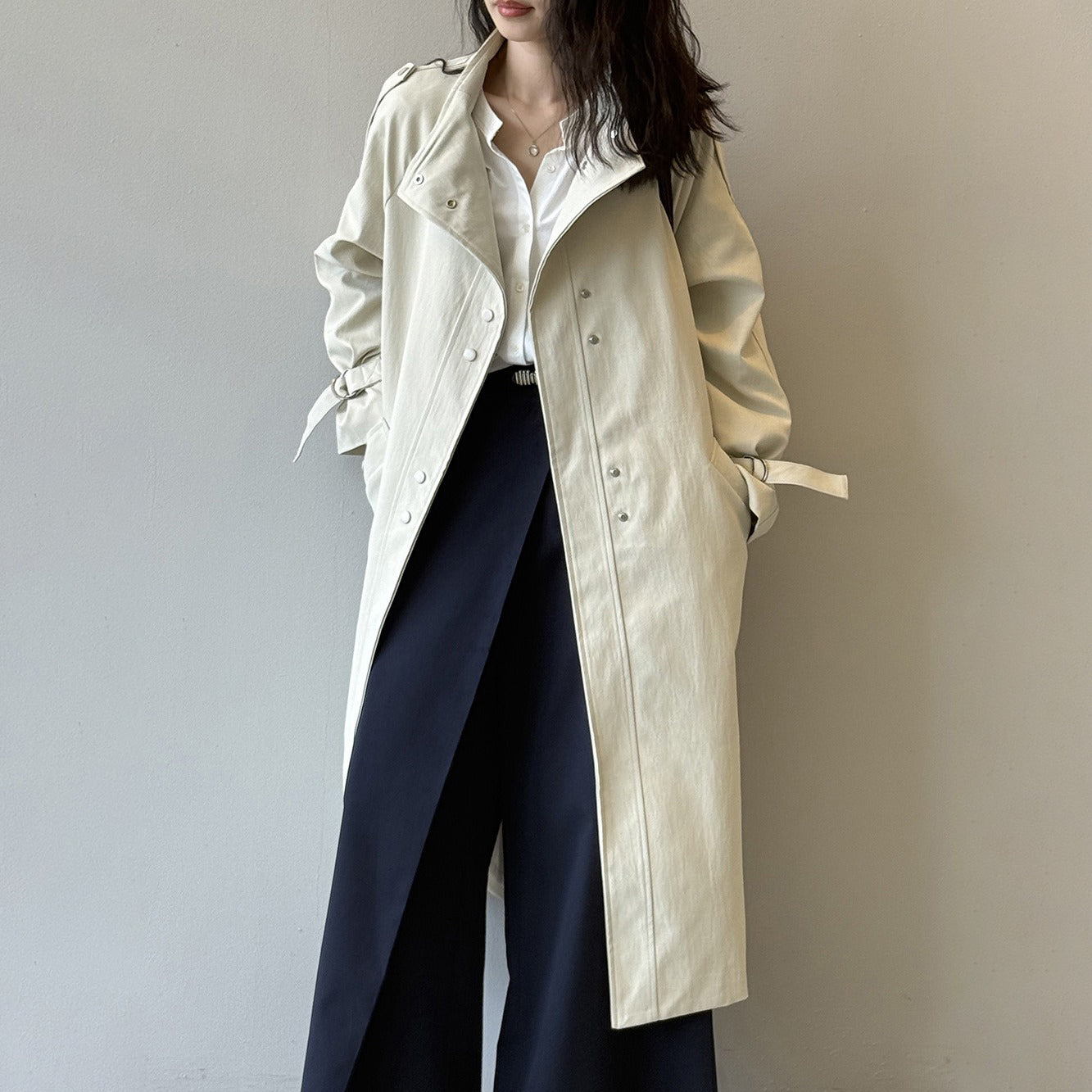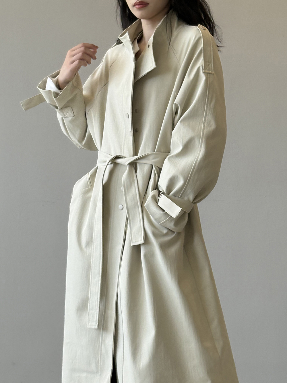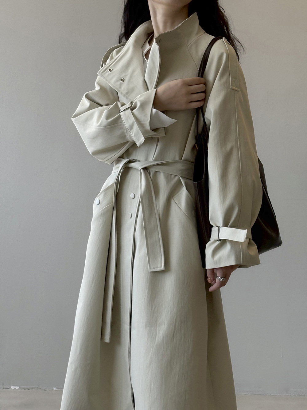 【商品名】【アウター】気質 オフィススタイル トレンチコート レディース 春秋 レトロ 万能 ミディアム丈 コート ベルト付き【JZシリーズ】