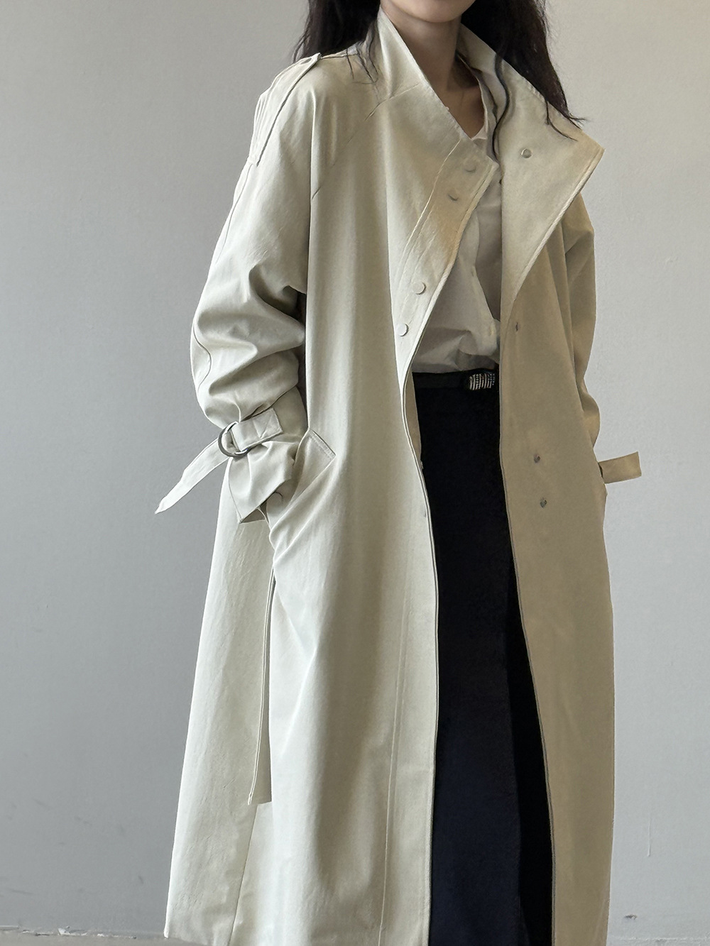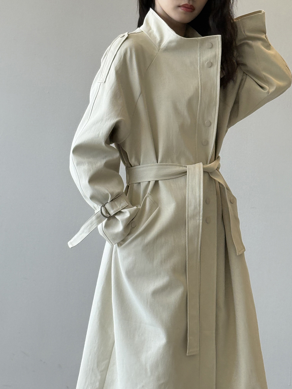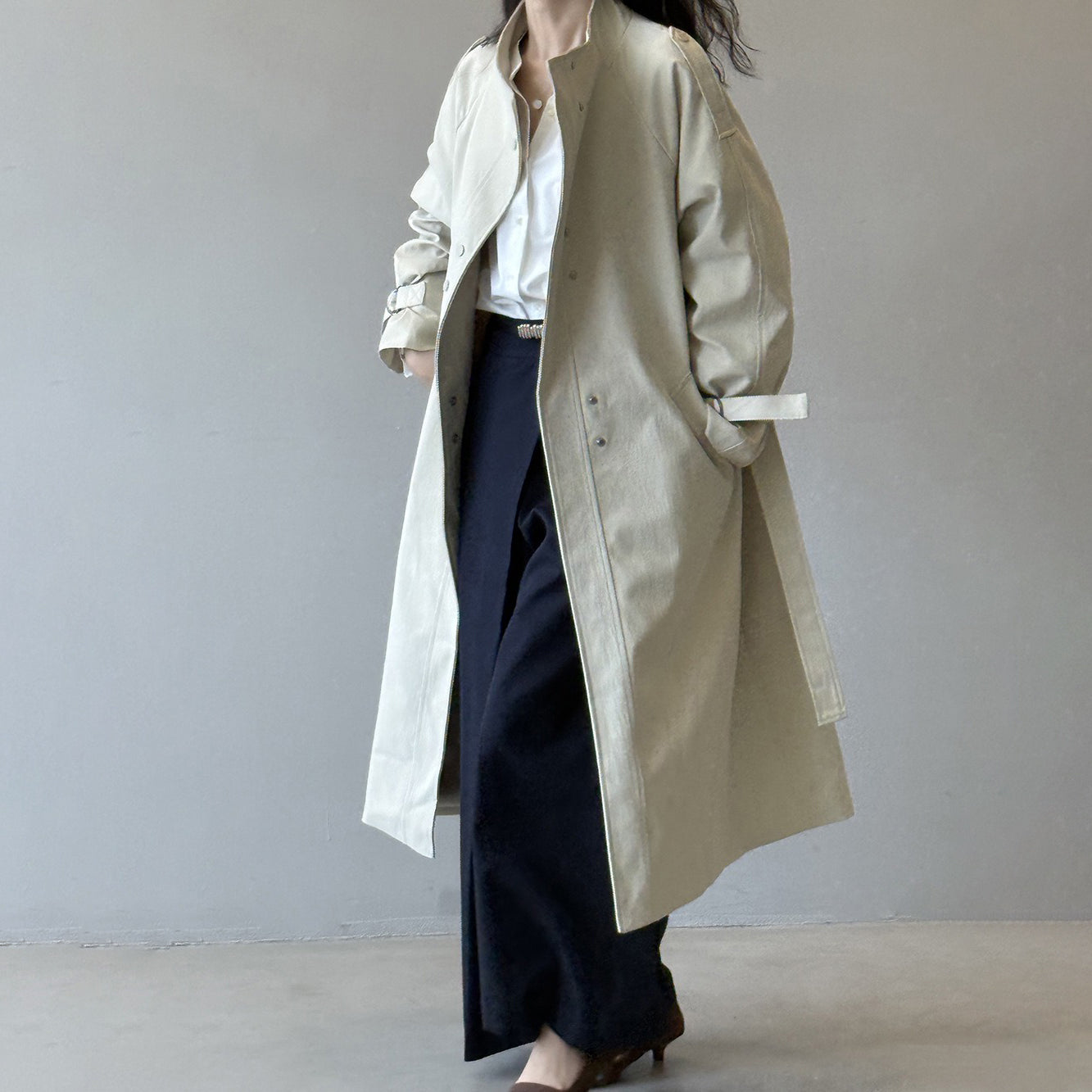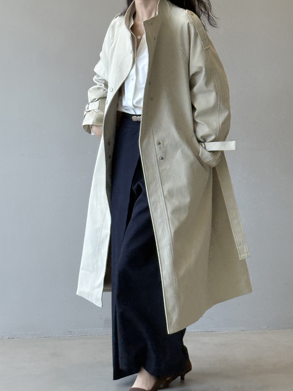 【商品名】【アウター】気質 オフィススタイル トレンチコート レディース 春秋 レトロ 万能 ミディアム丈 コート ベルト付き【JZシリーズ】