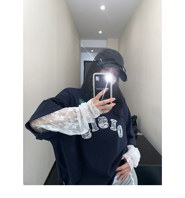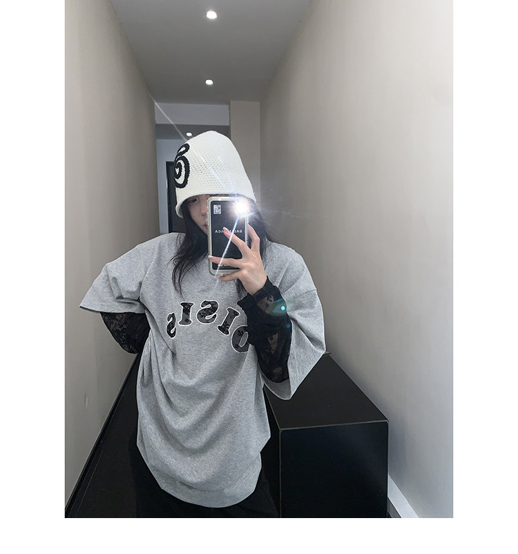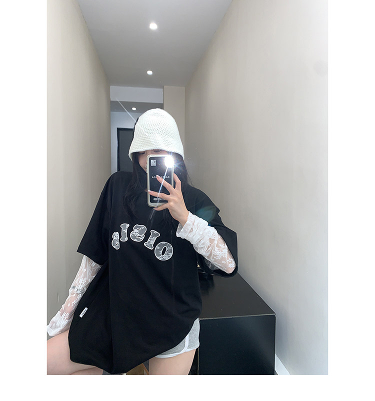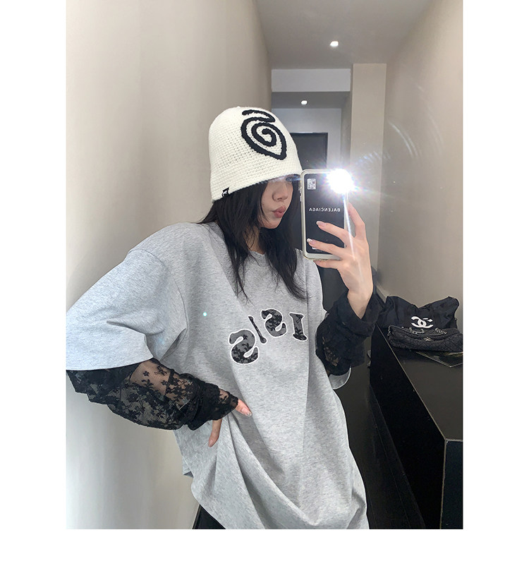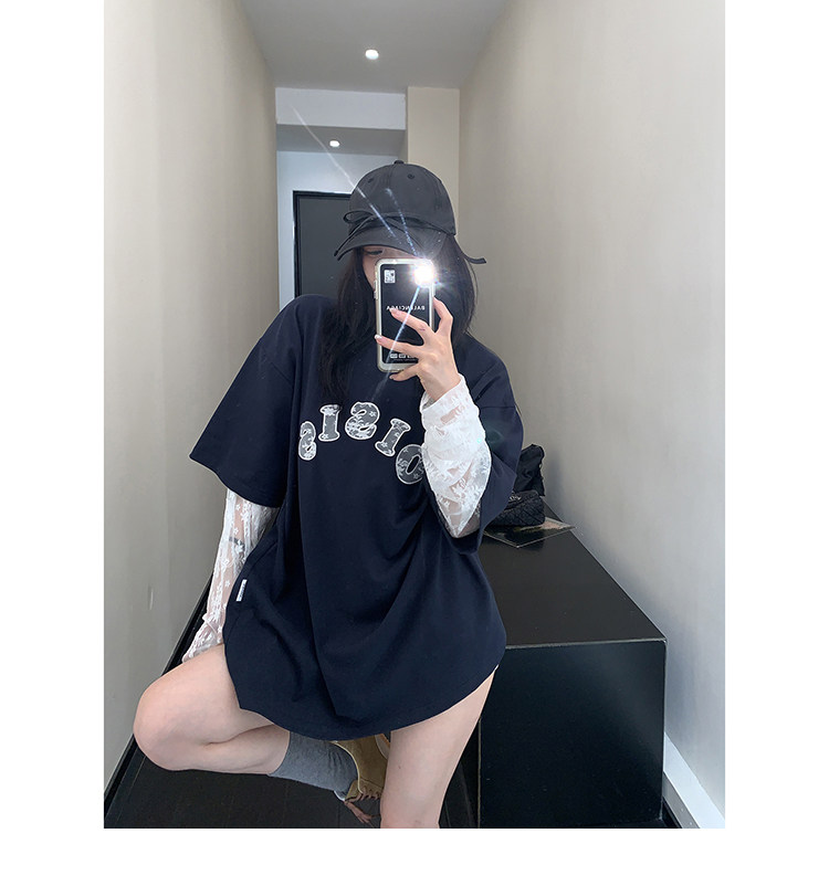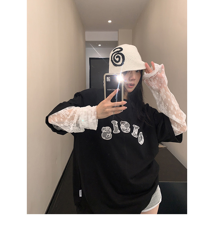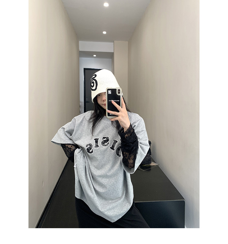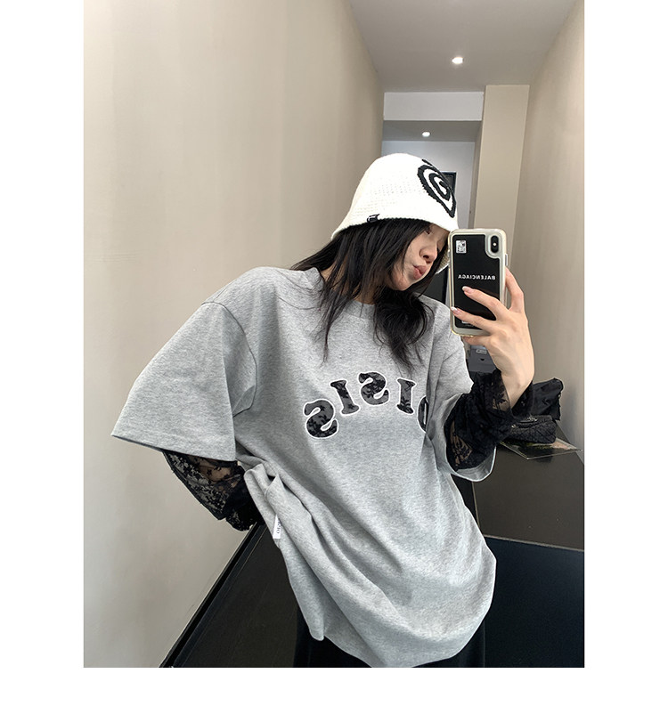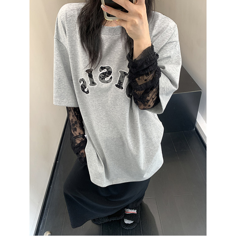 【トップス】ゆるかわ 春秋 リラックス感 レイヤード風 レース袖 長袖Tシャツ レディース【FCシリーズ】