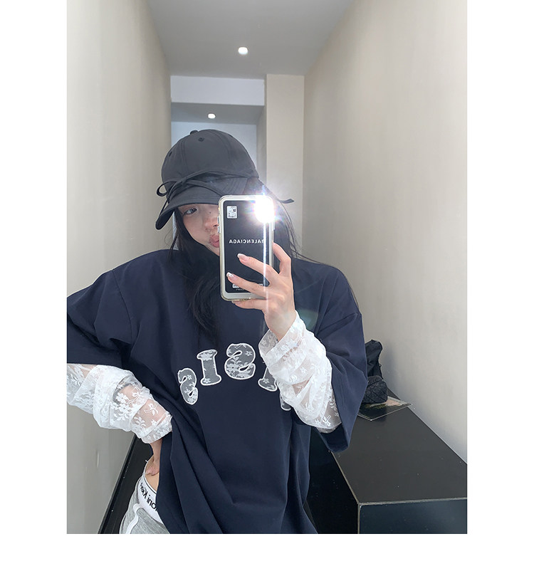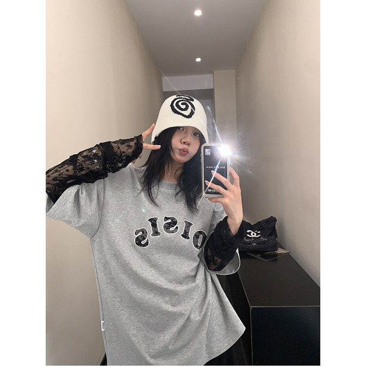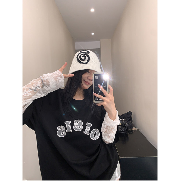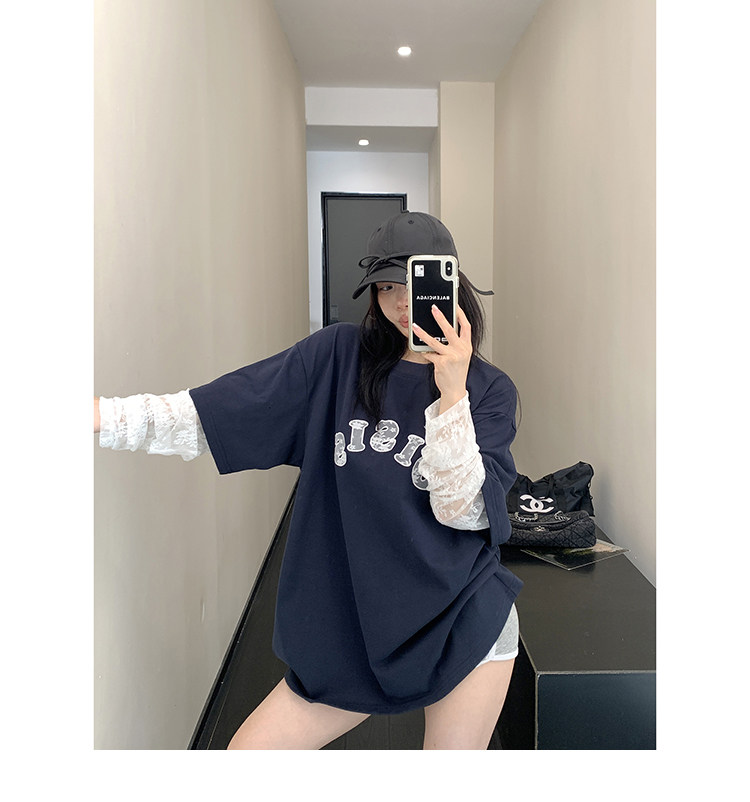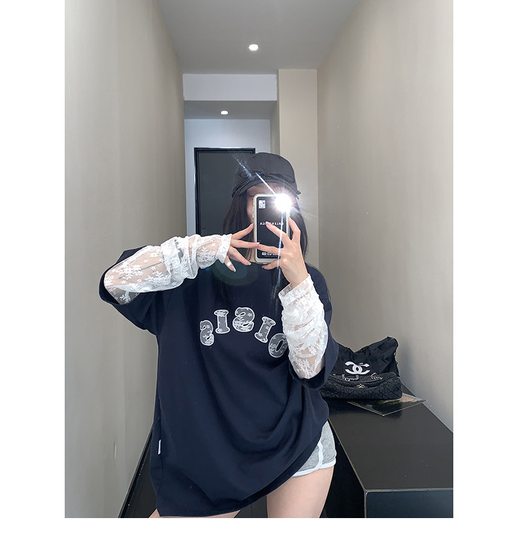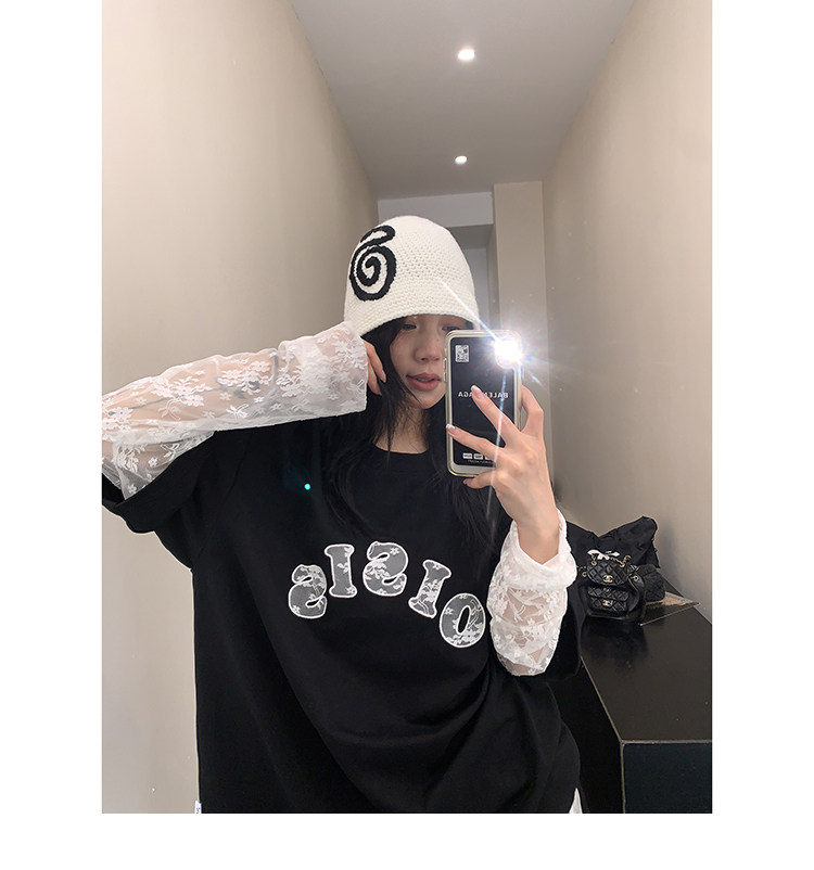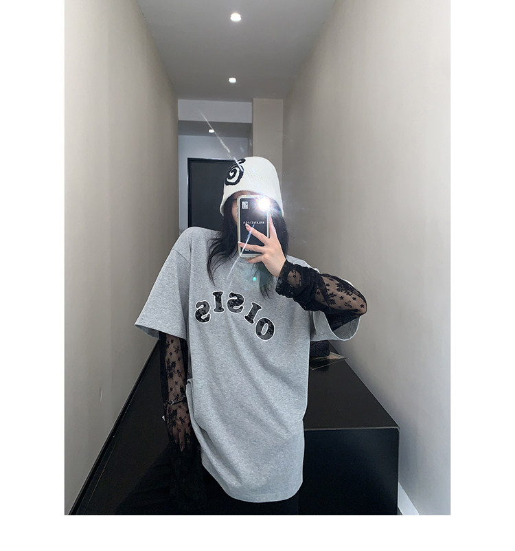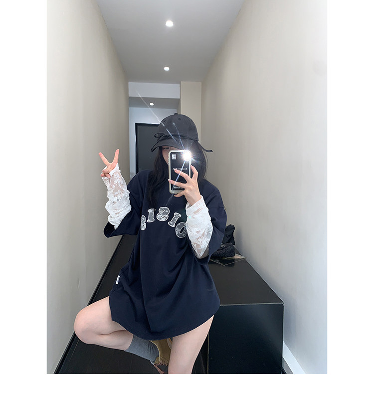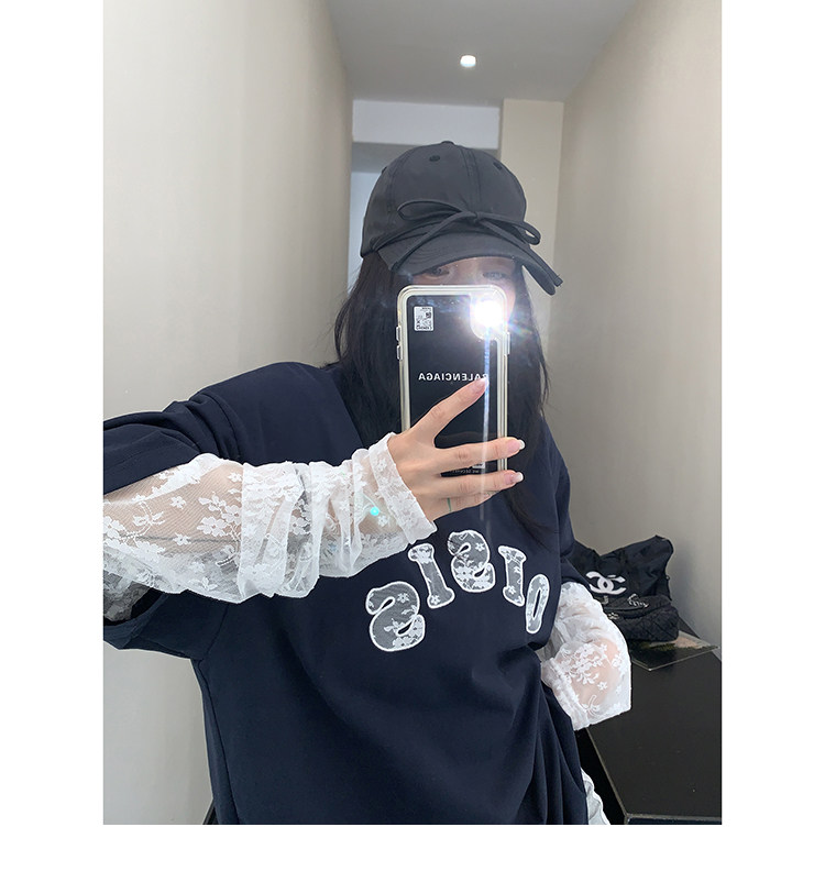 【トップス】ゆるかわ 春秋 リラックス感 レイヤード風 レース袖 長袖Tシャツ レディース【FCシリーズ】