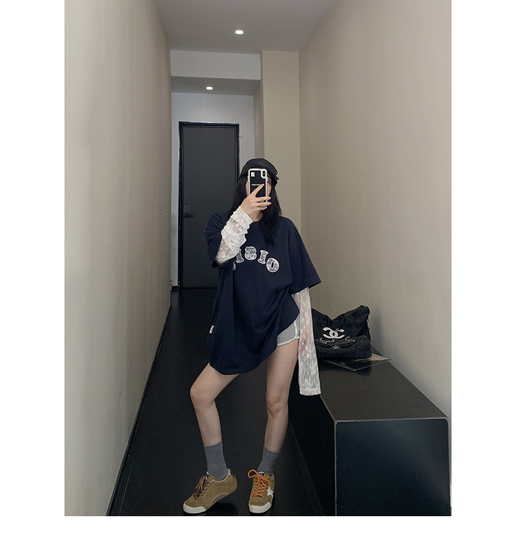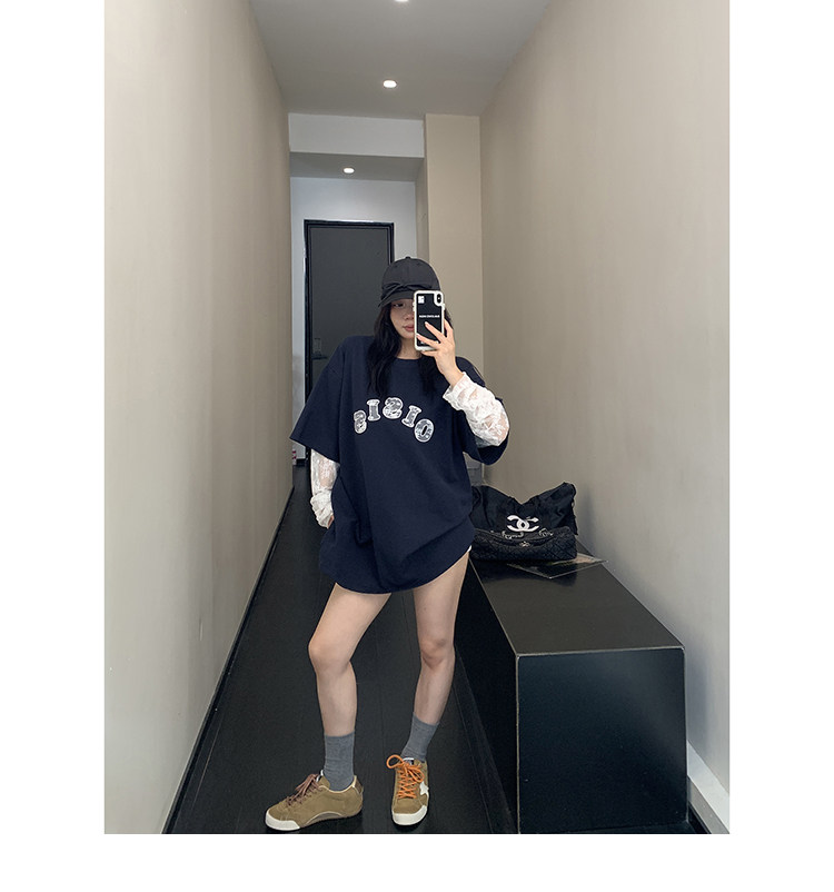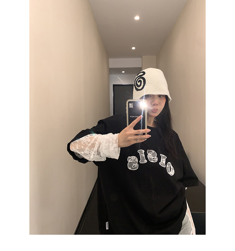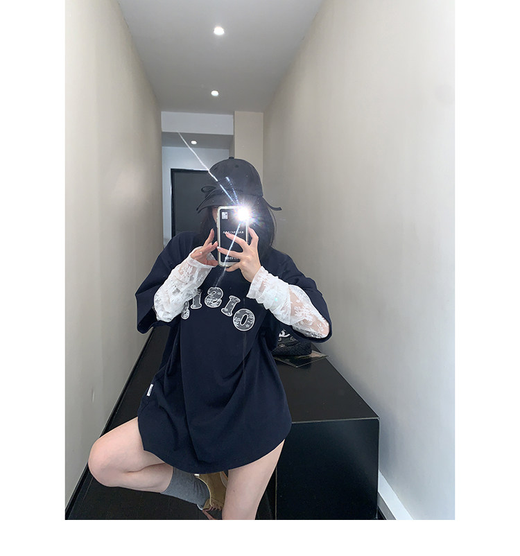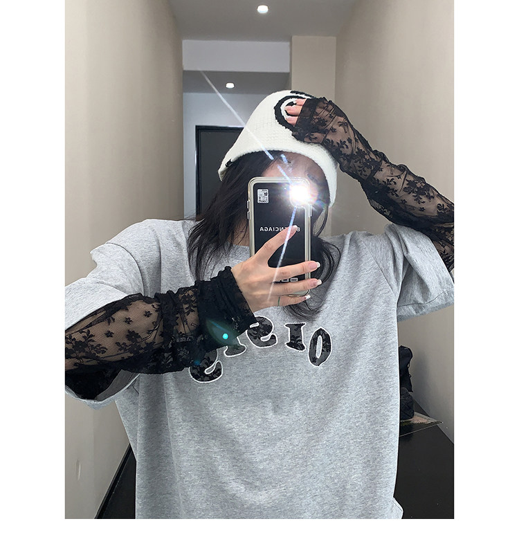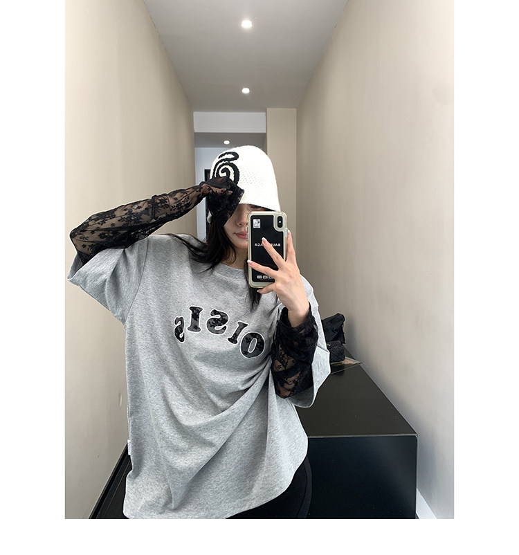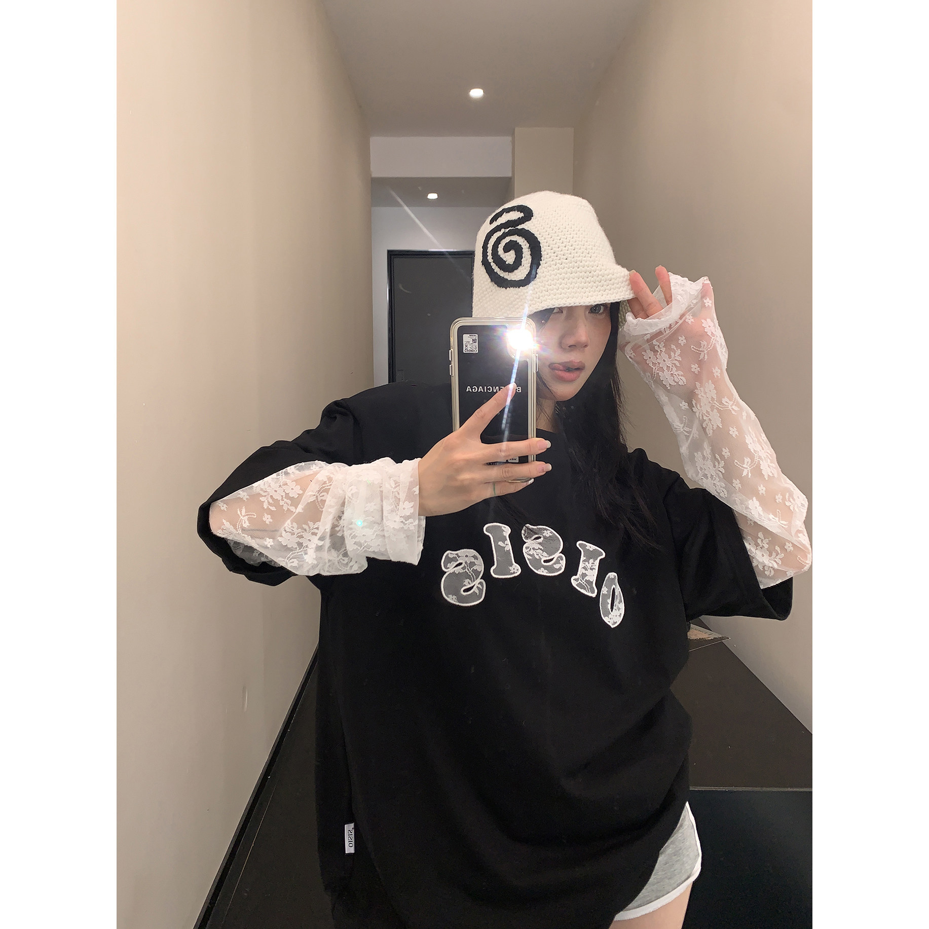 【トップス】ゆるかわ 春秋 リラックス感 レイヤード風 レース袖 長袖Tシャツ レディース【FCシリーズ】