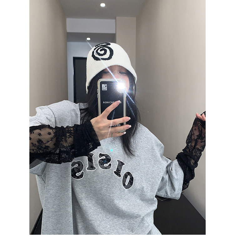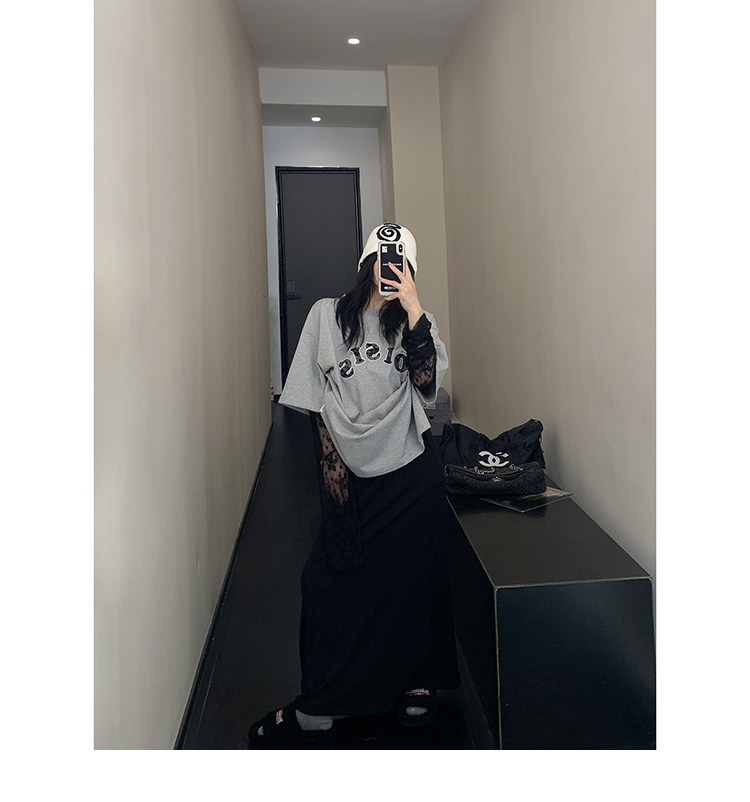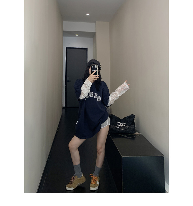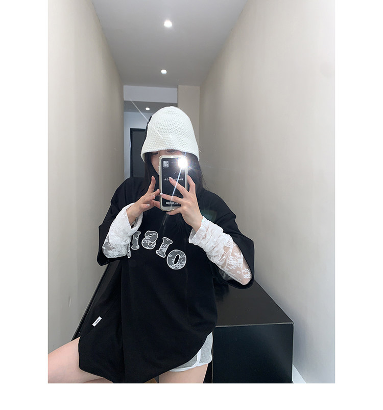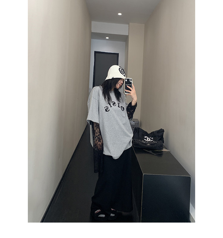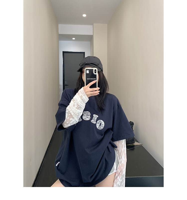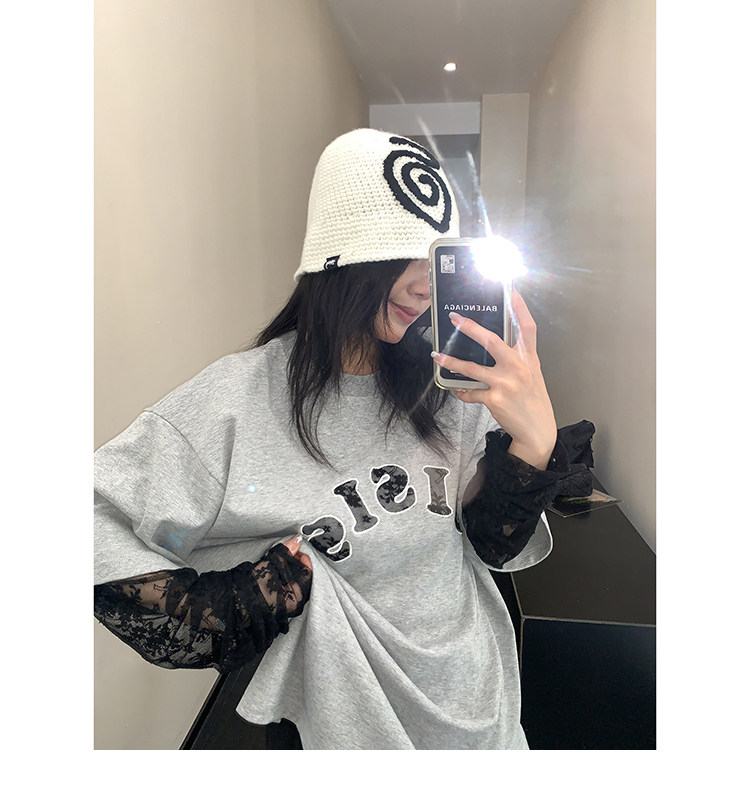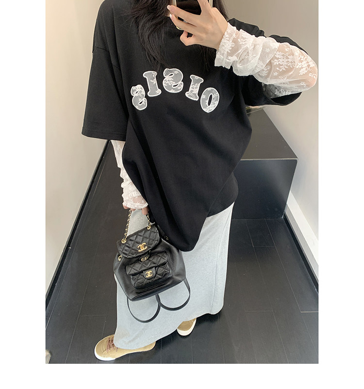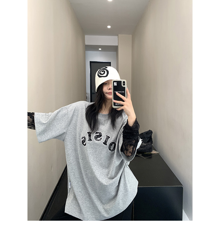 【トップス】ゆるかわ 春秋 リラックス感 レイヤード風 レース袖 長袖Tシャツ レディース【FCシリーズ】