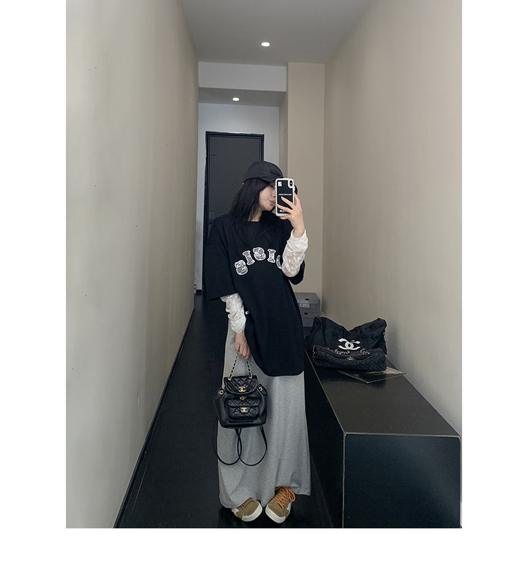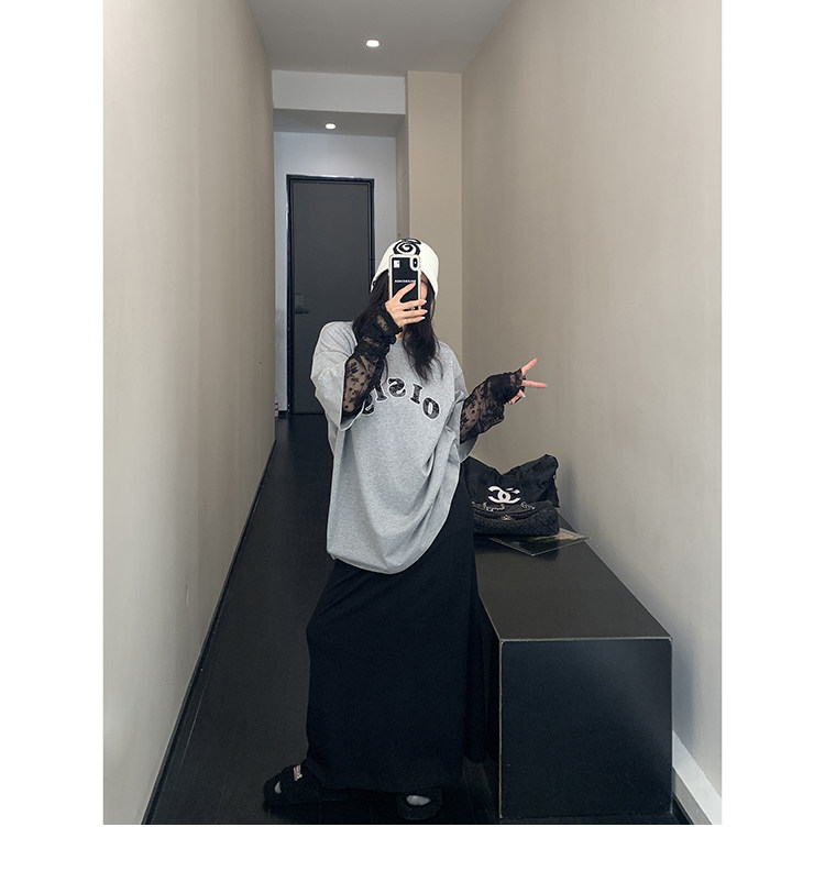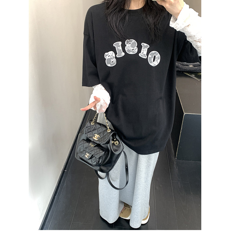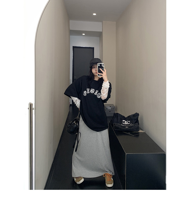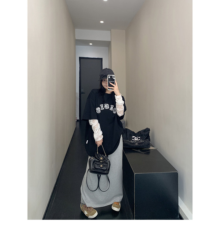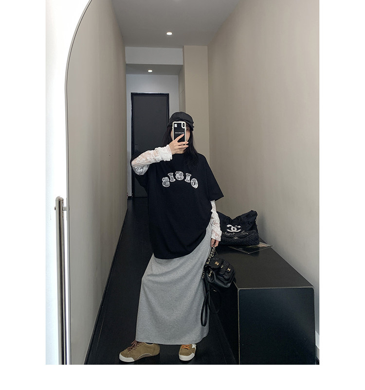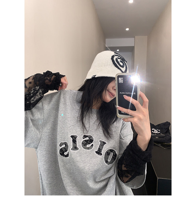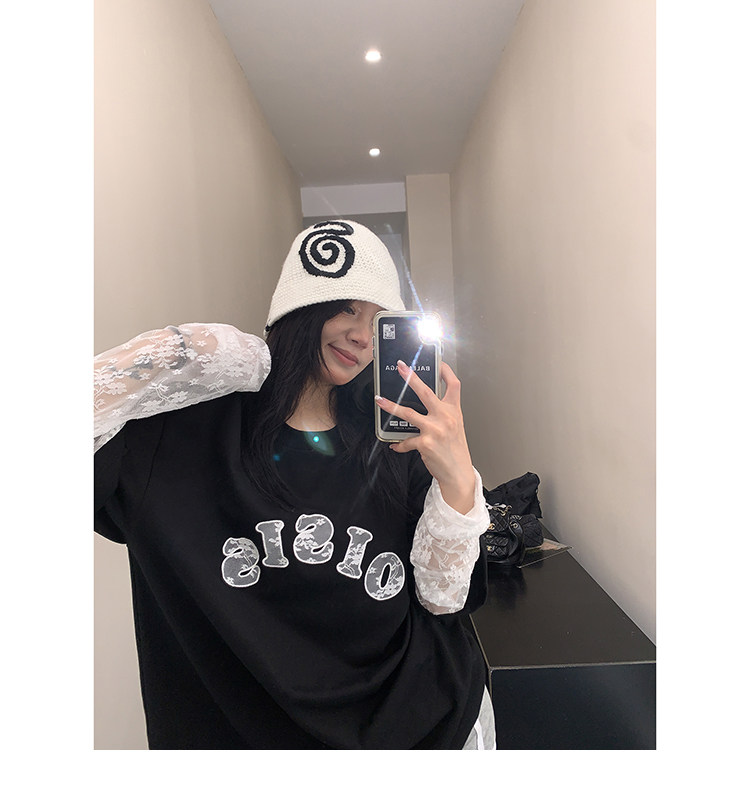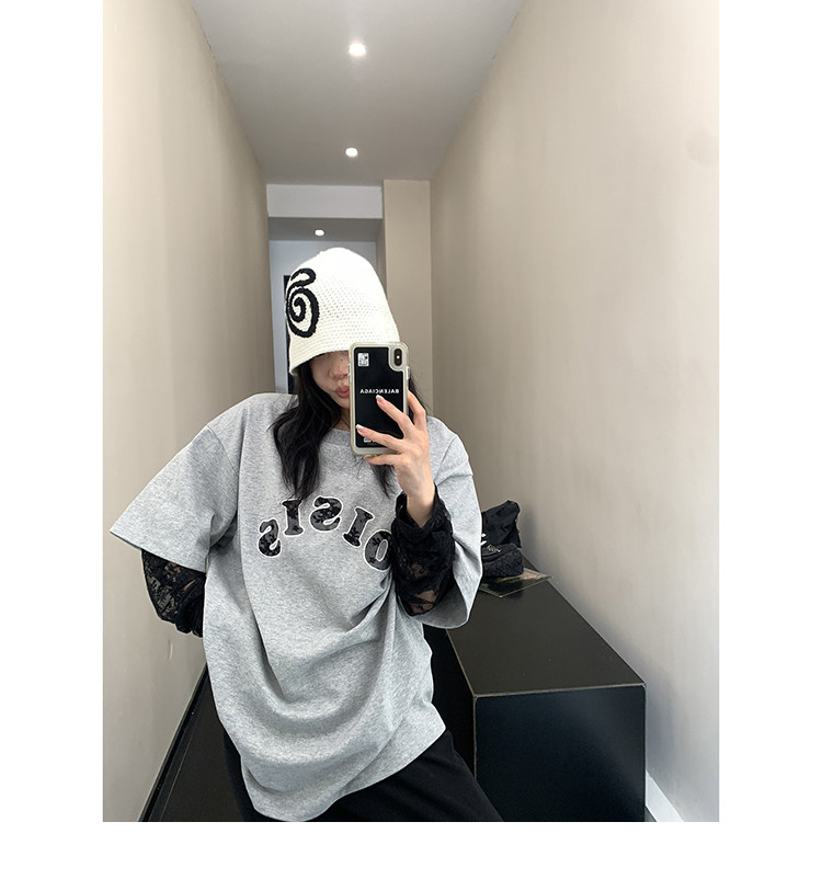 【トップス】ゆるかわ 春秋 リラックス感 レイヤード風 レース袖 長袖Tシャツ レディース【FCシリーズ】