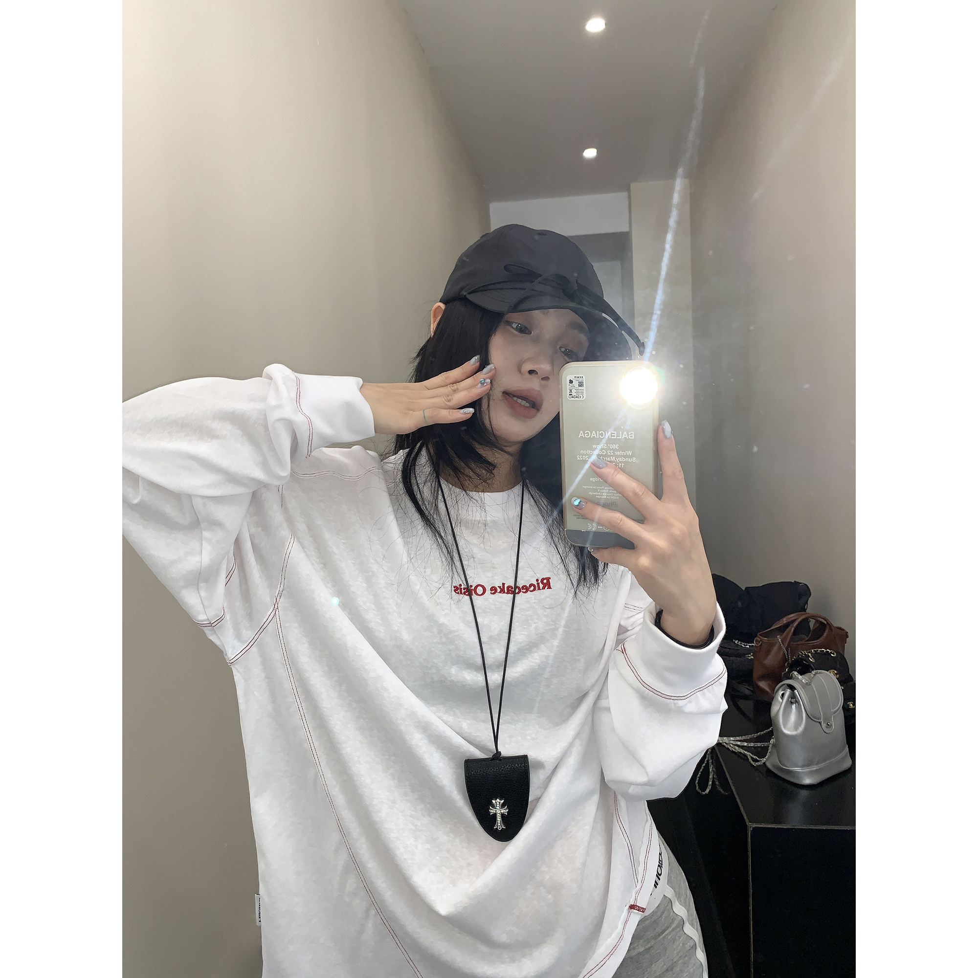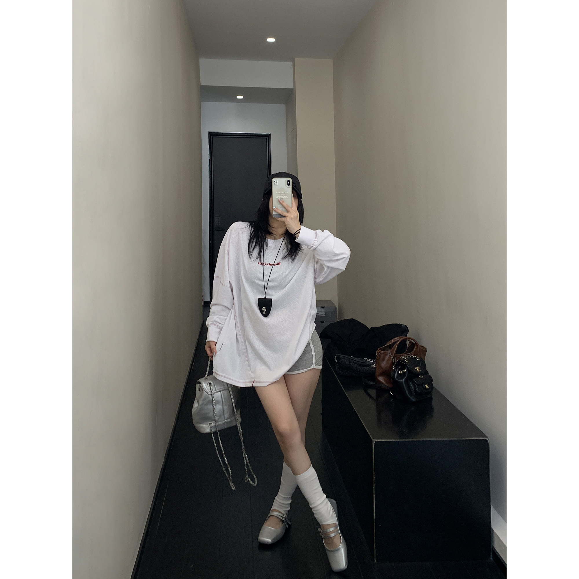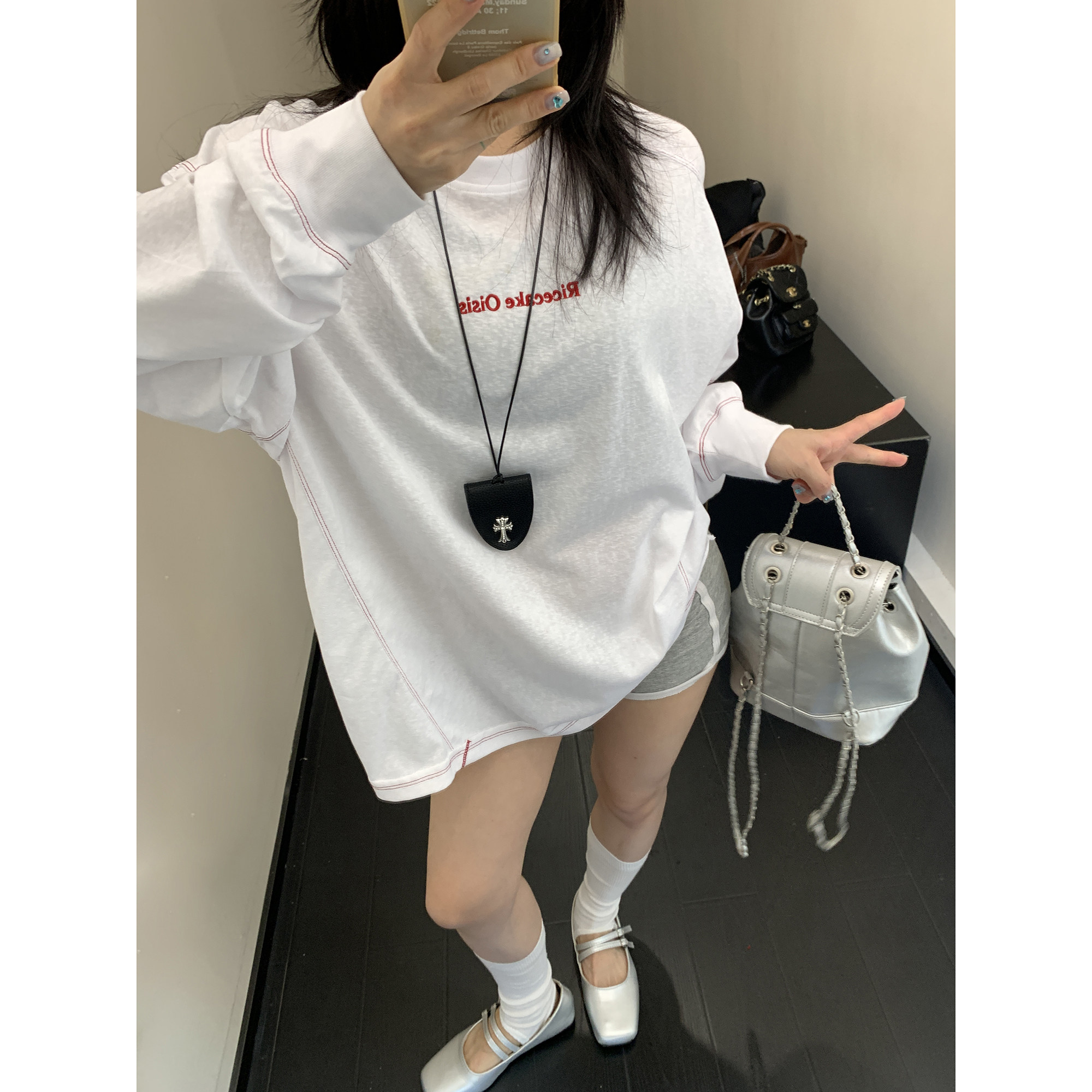 モデル:身長158cm、体重40kg、着用サイズ:L