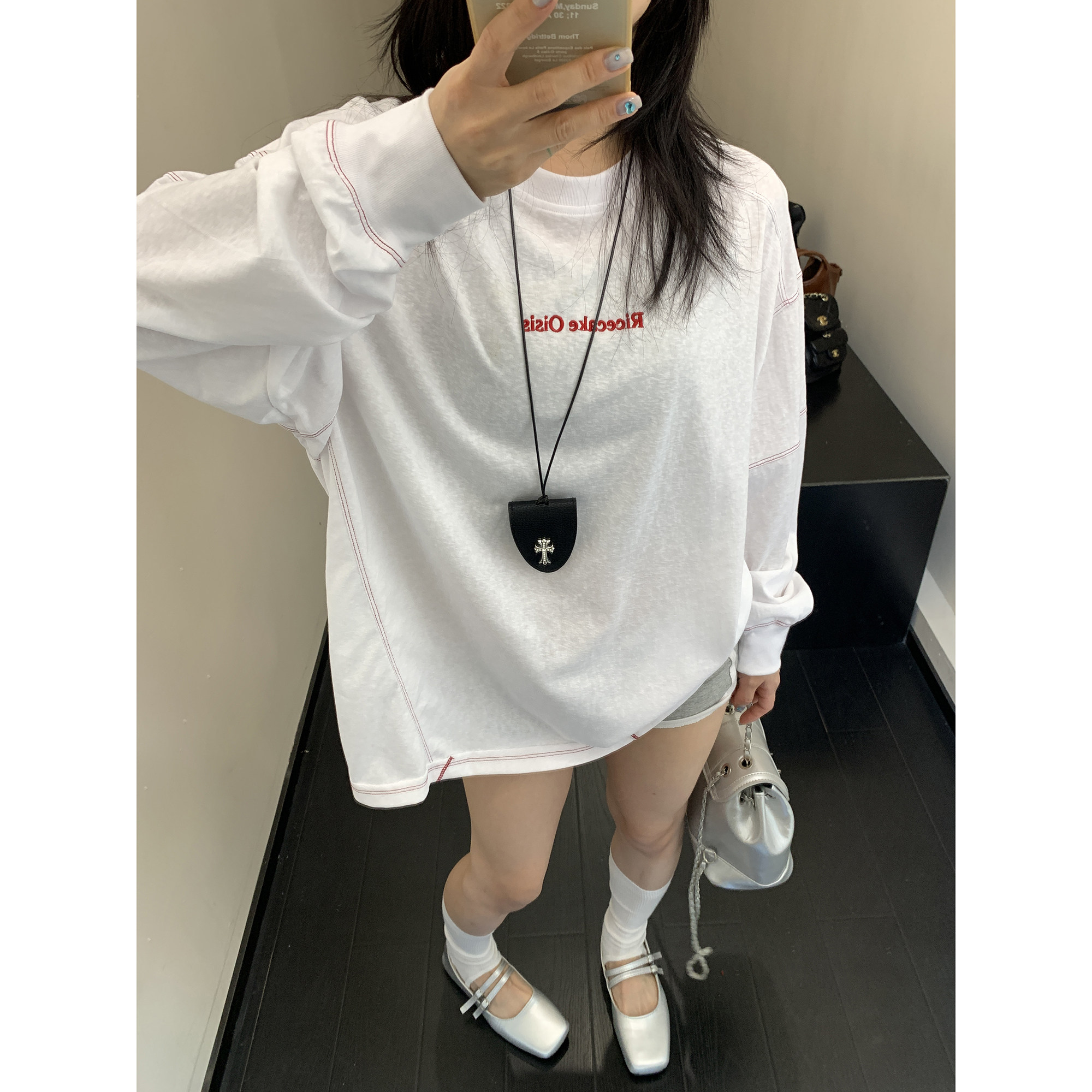 【トップス】リラックス感 ライト薄手 ステッチ刺繍 長袖Tシャツ プルオーバー レディース【FCシリーズ】