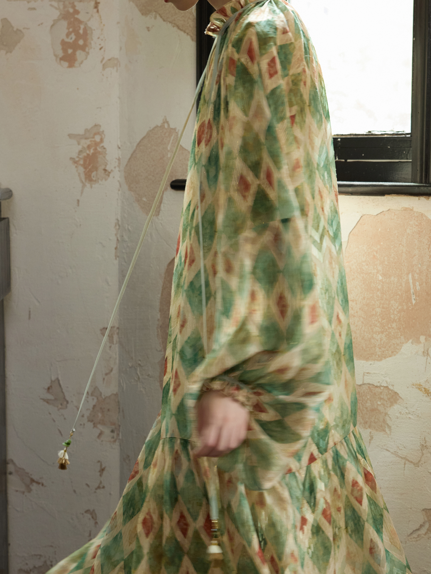【商品名】【ワンピース】フレンチ レトロ プリント パフスリーブワンピース ゆったり Vネック 長袖ワンピース【SHシリーズ】