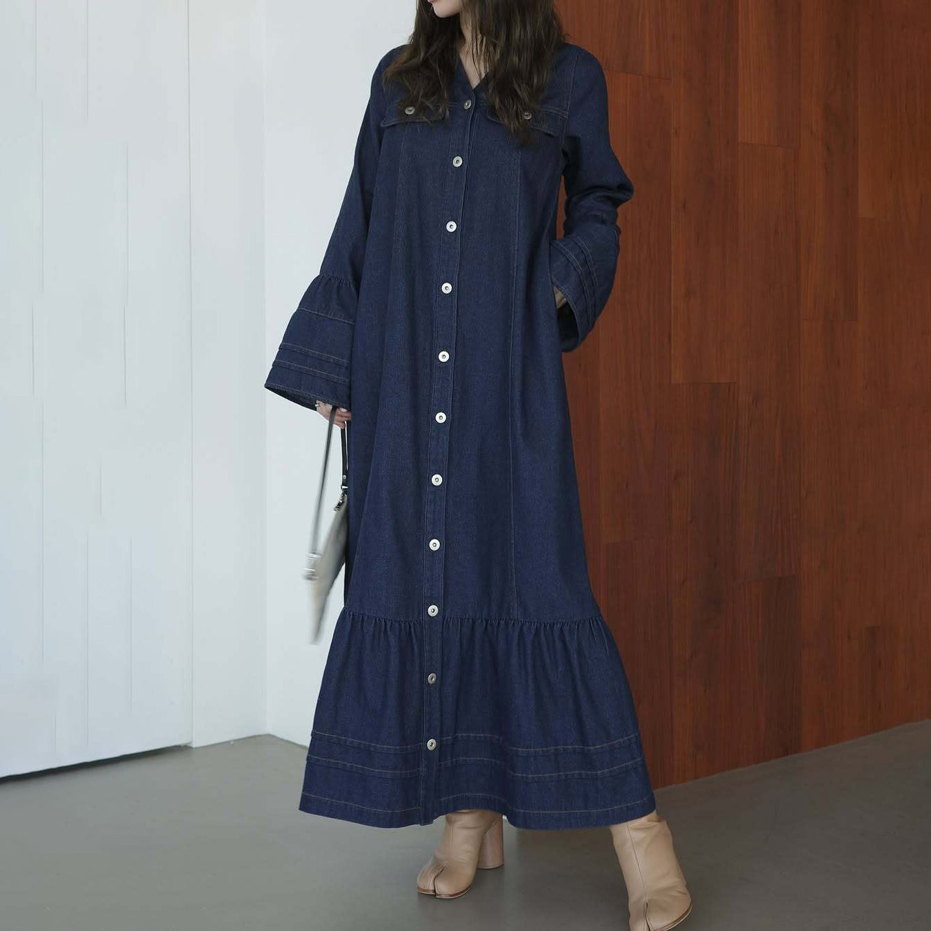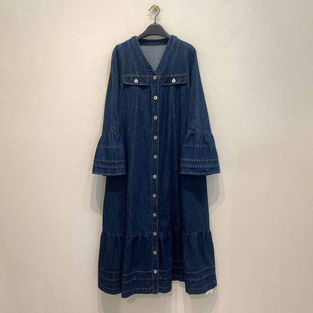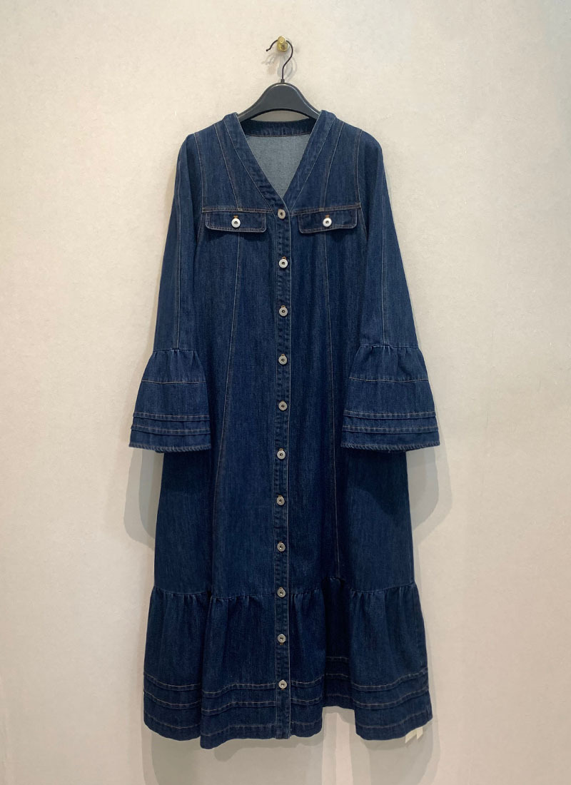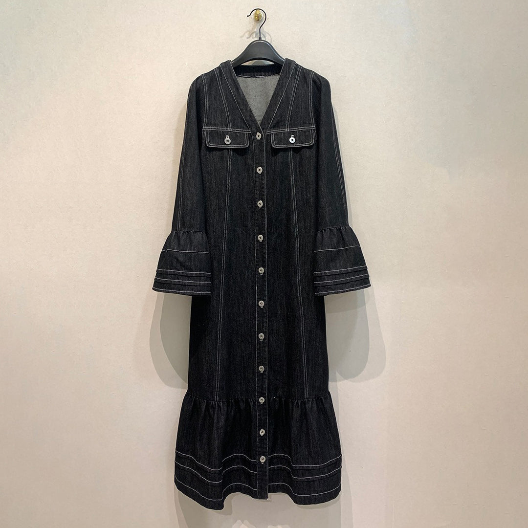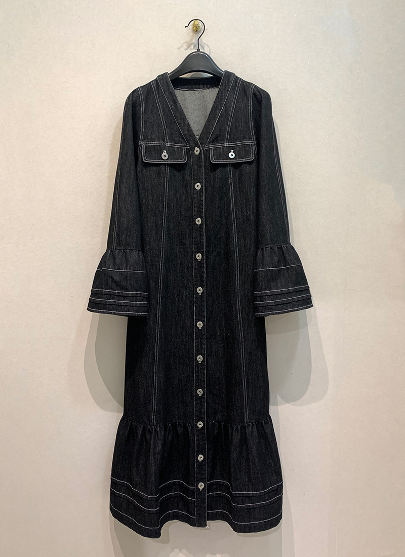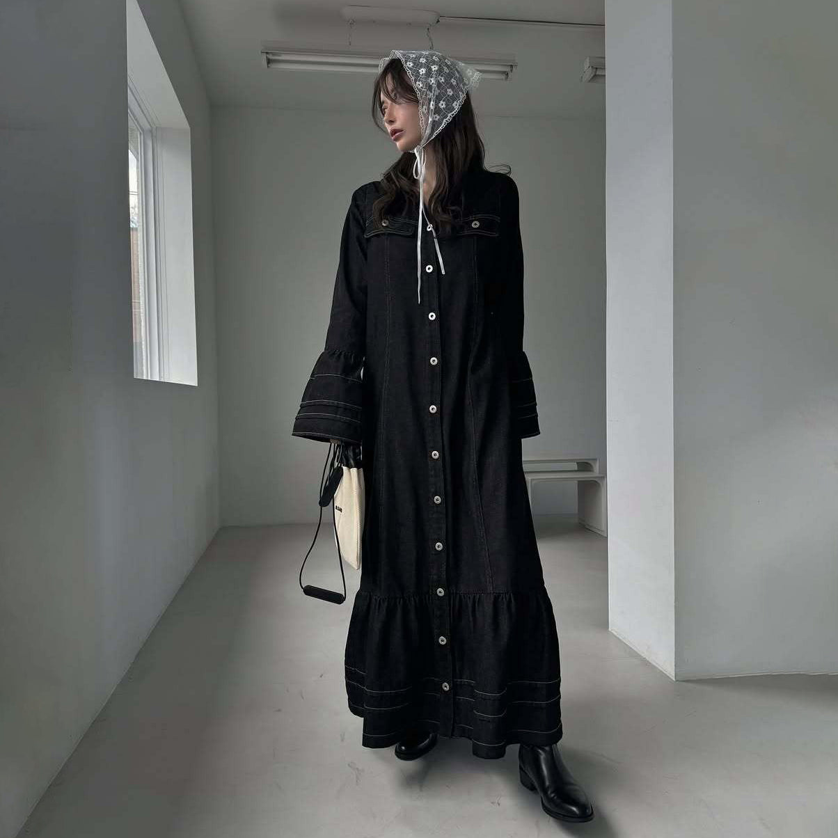 【ワンピース】日系 春夏 アメリカンレトロ オールドマネー風 デザインデニムワンピース レディース ゆったり カジュアル 長袖ワンピース【JZシリーズ】