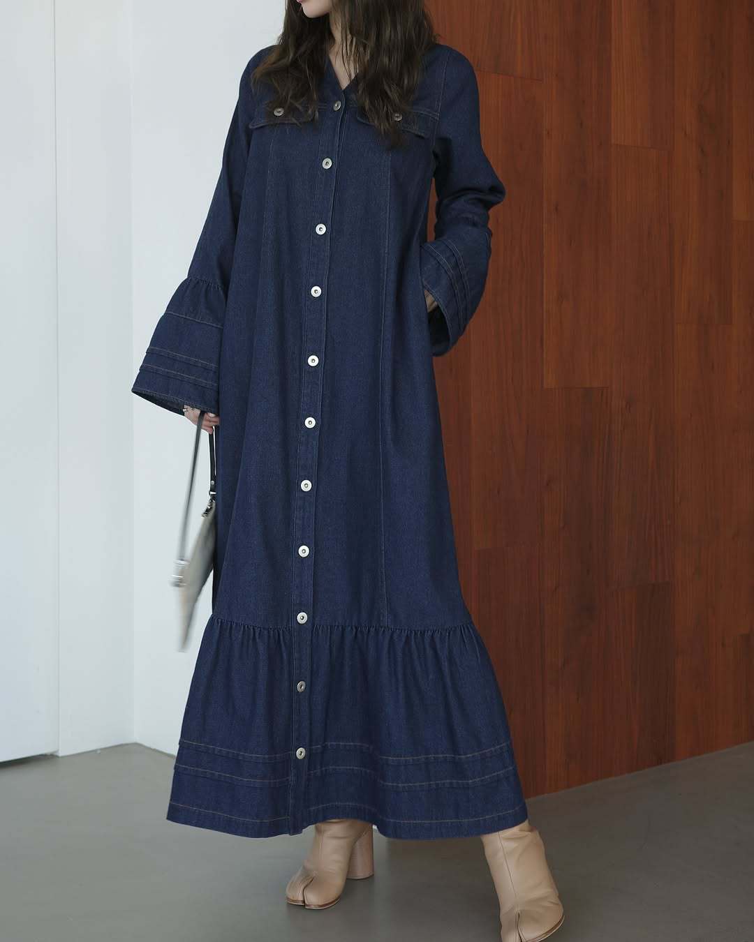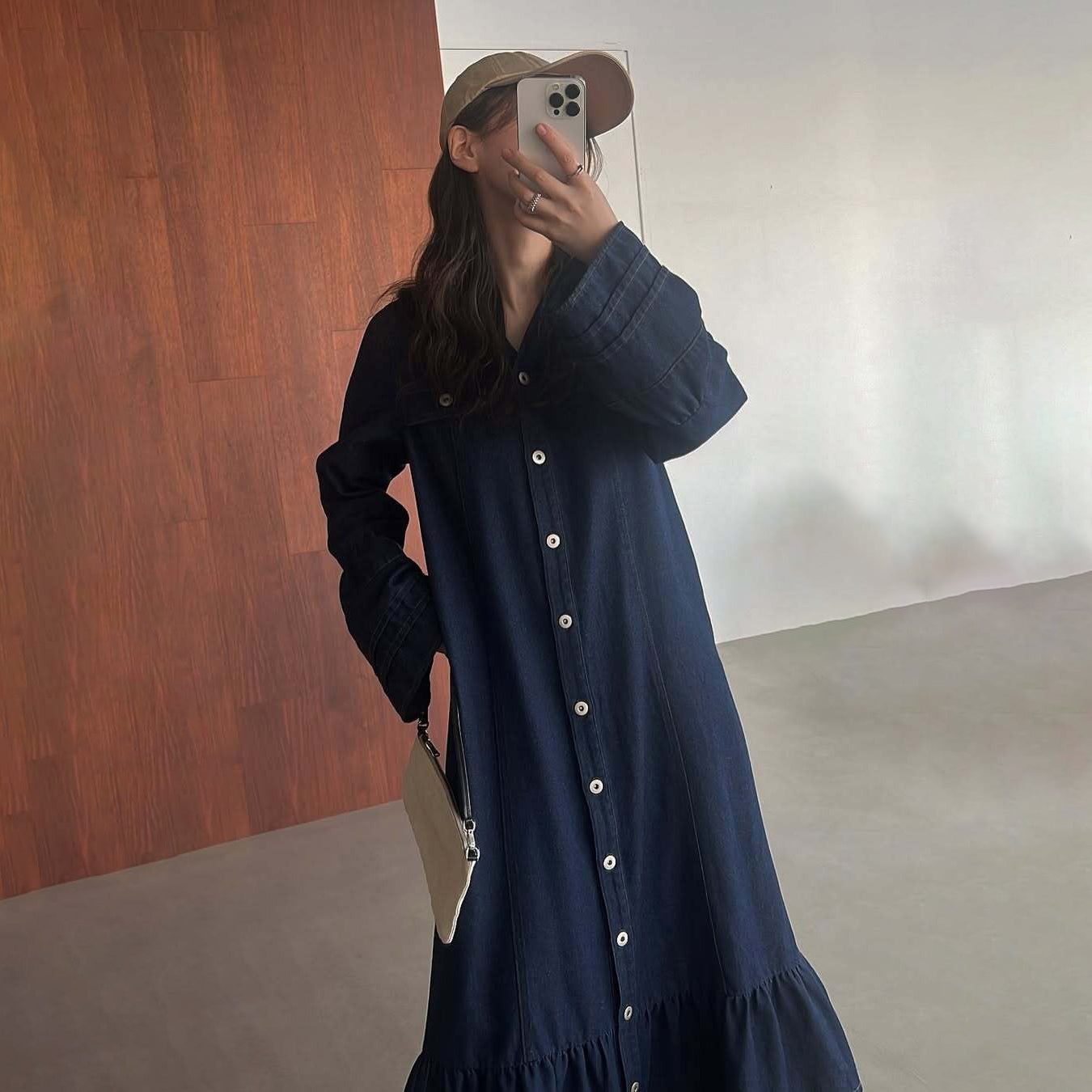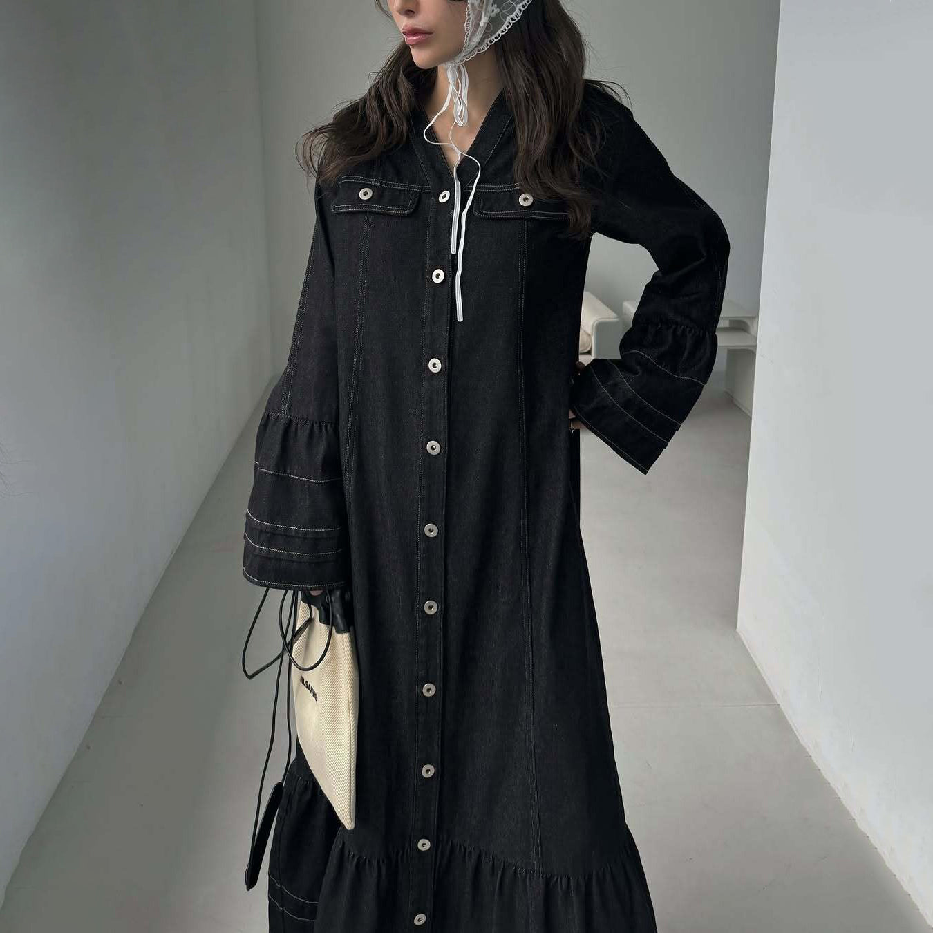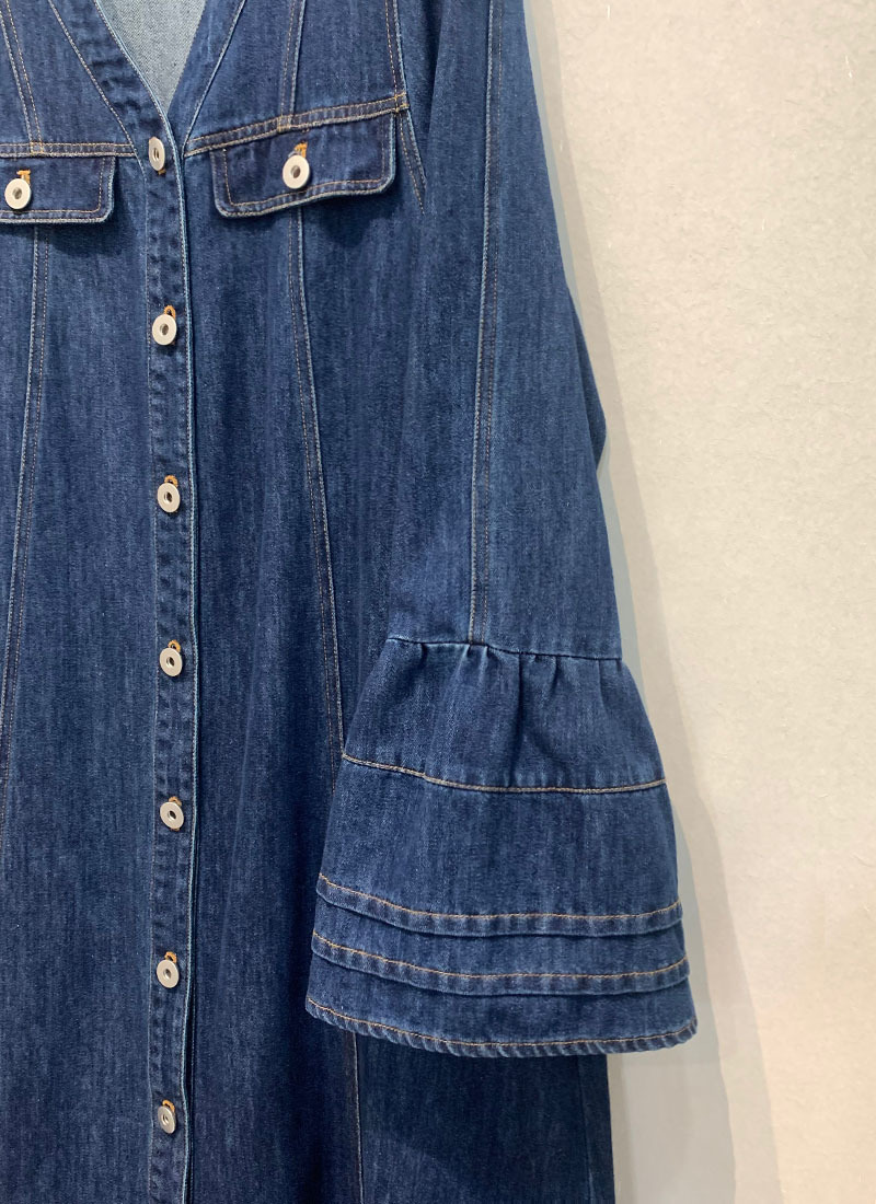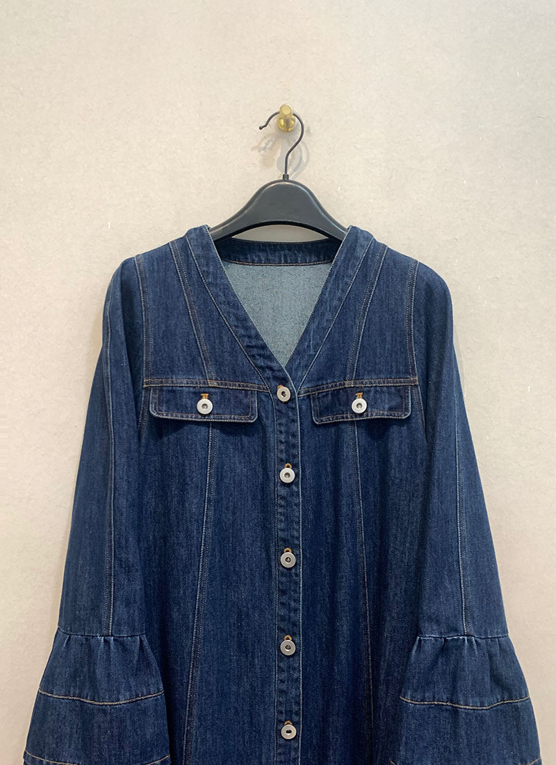【ワンピース】日系 春夏 アメリカンレトロ オールドマネー風 デザインデニムワンピース レディース ゆったり カジュアル 長袖ワンピース【JZシリーズ】