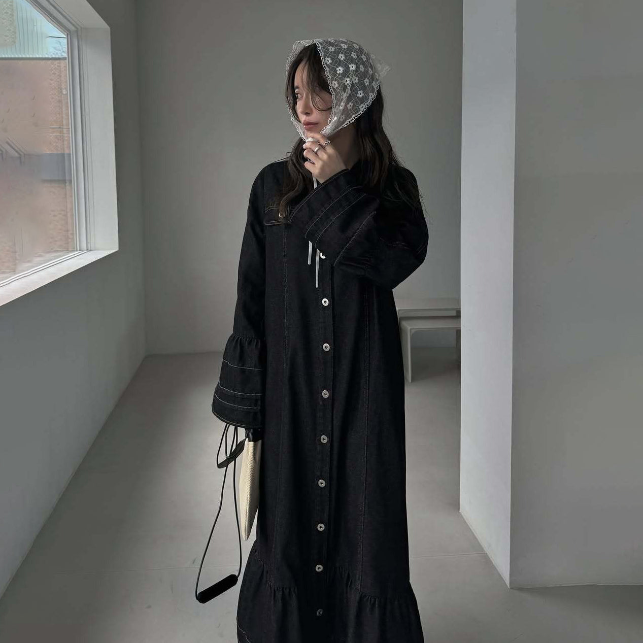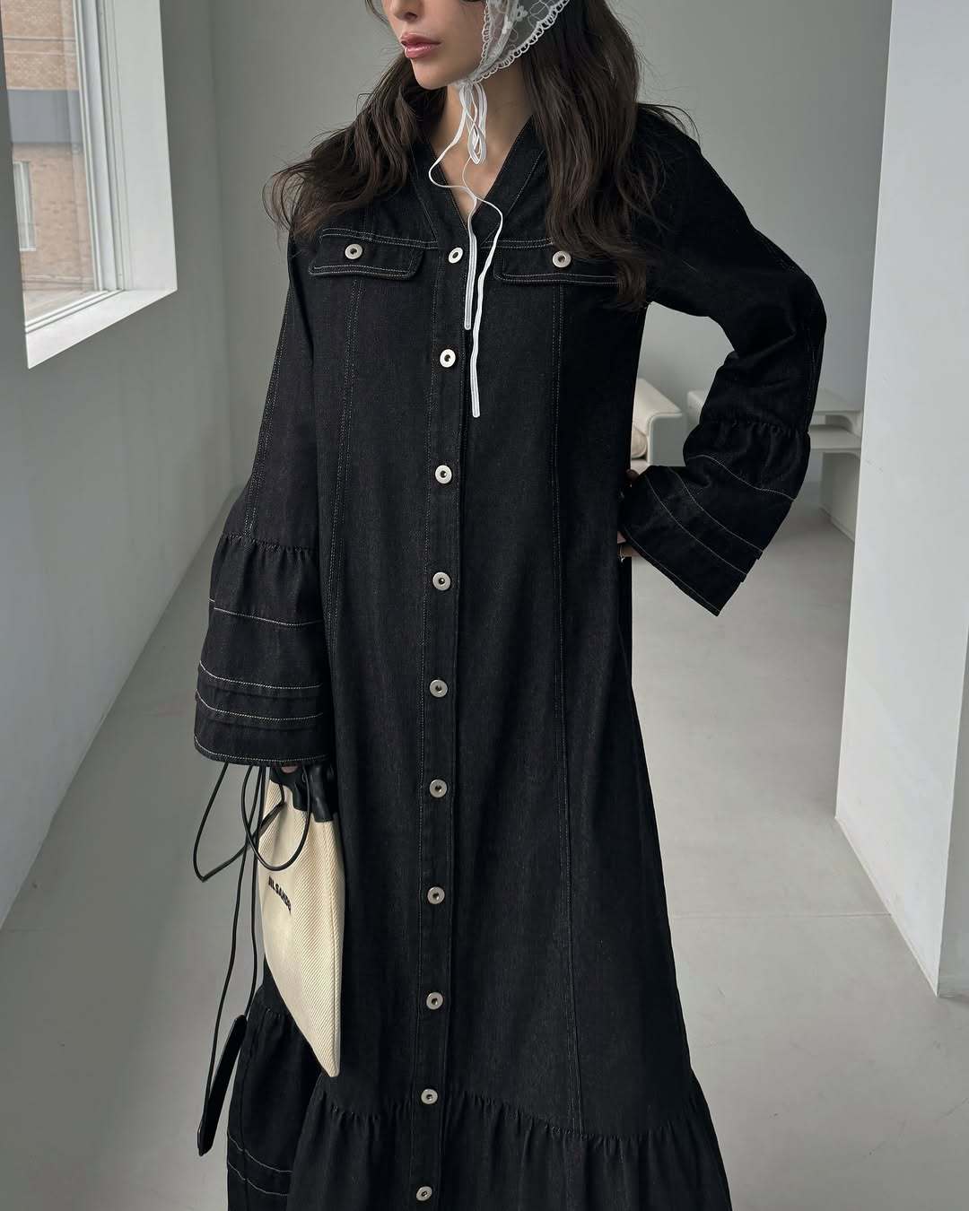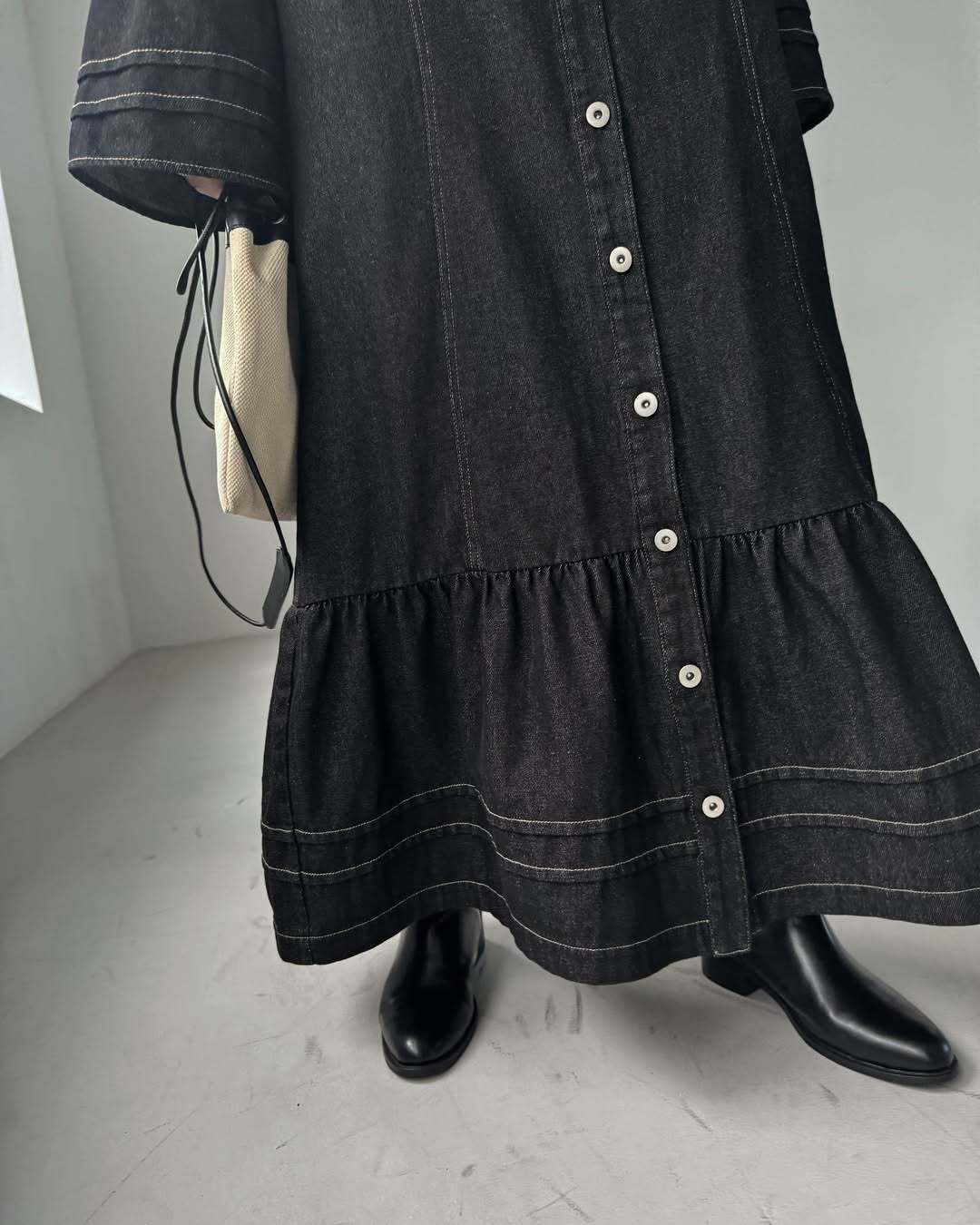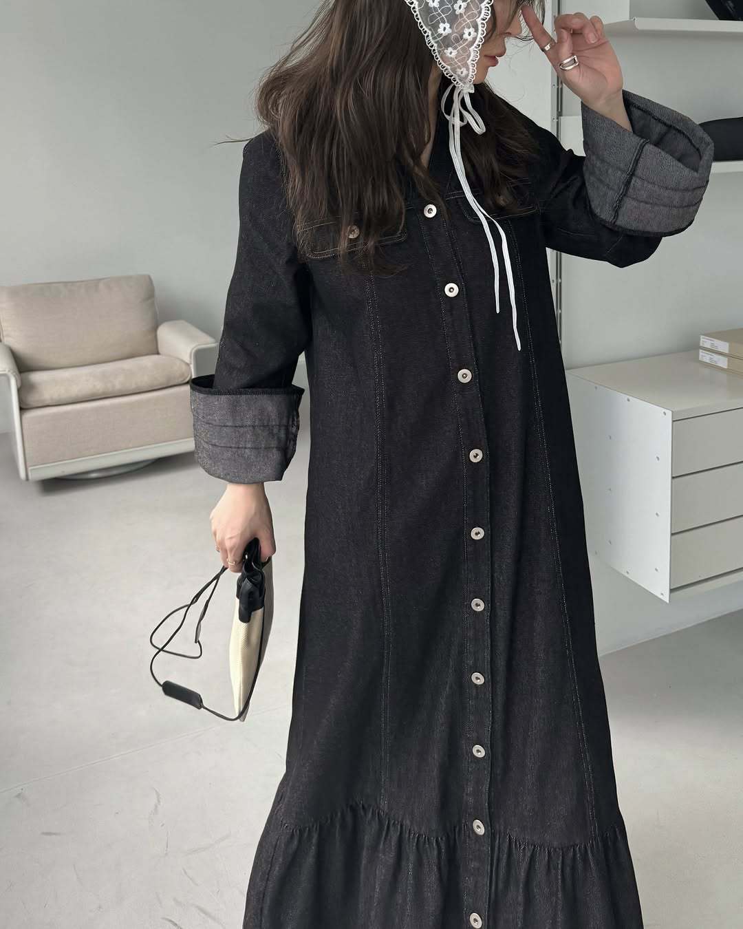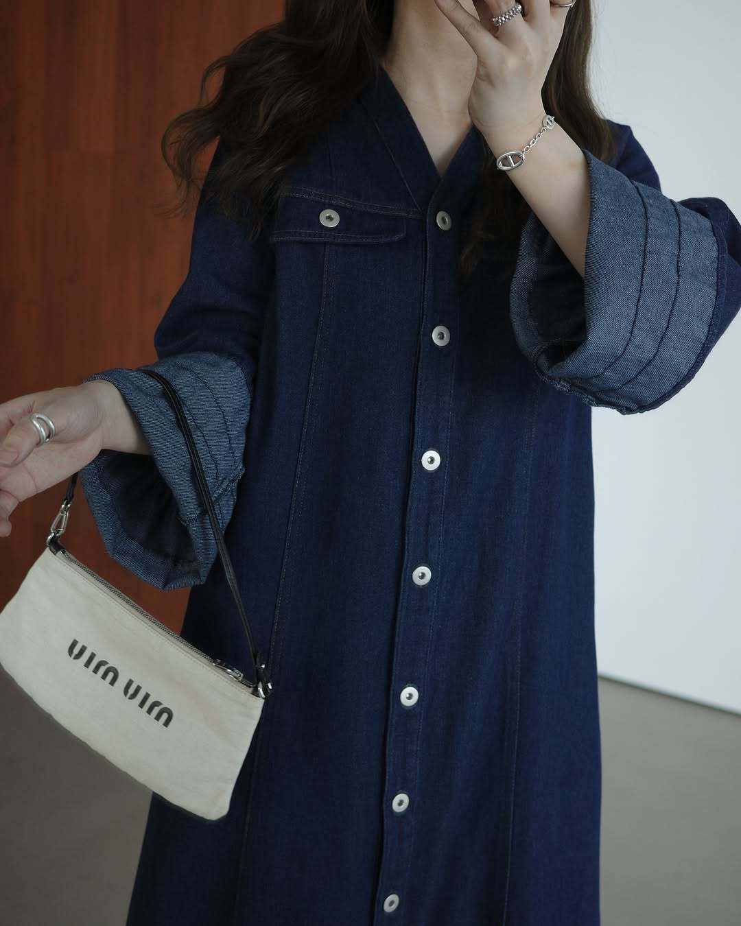 【ワンピース】日系 春夏 アメリカンレトロ オールドマネー風 デザインデニムワンピース レディース ゆったり カジュアル 長袖ワンピース【JZシリーズ】