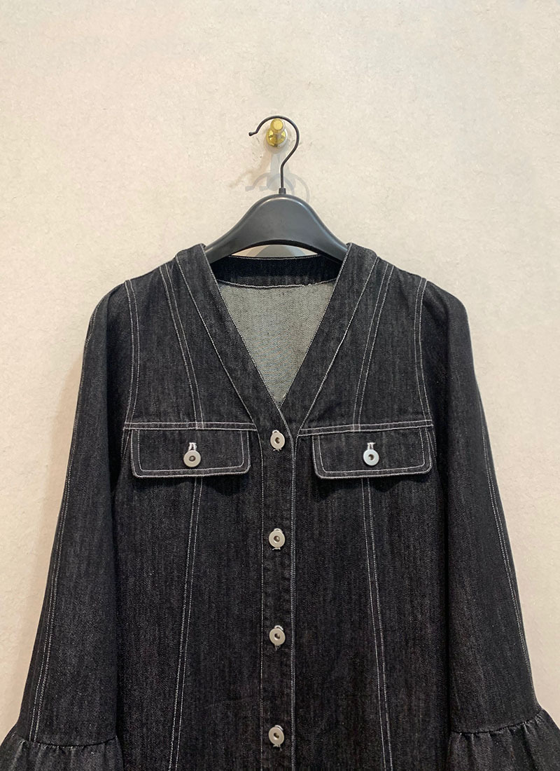 【商品名】【ワンピース】日系 春夏 アメリカンレトロ オールドマネー風 デザインデニムワンピース レディース ゆったり カジュアル 長袖ワンピース【JZシリーズ】