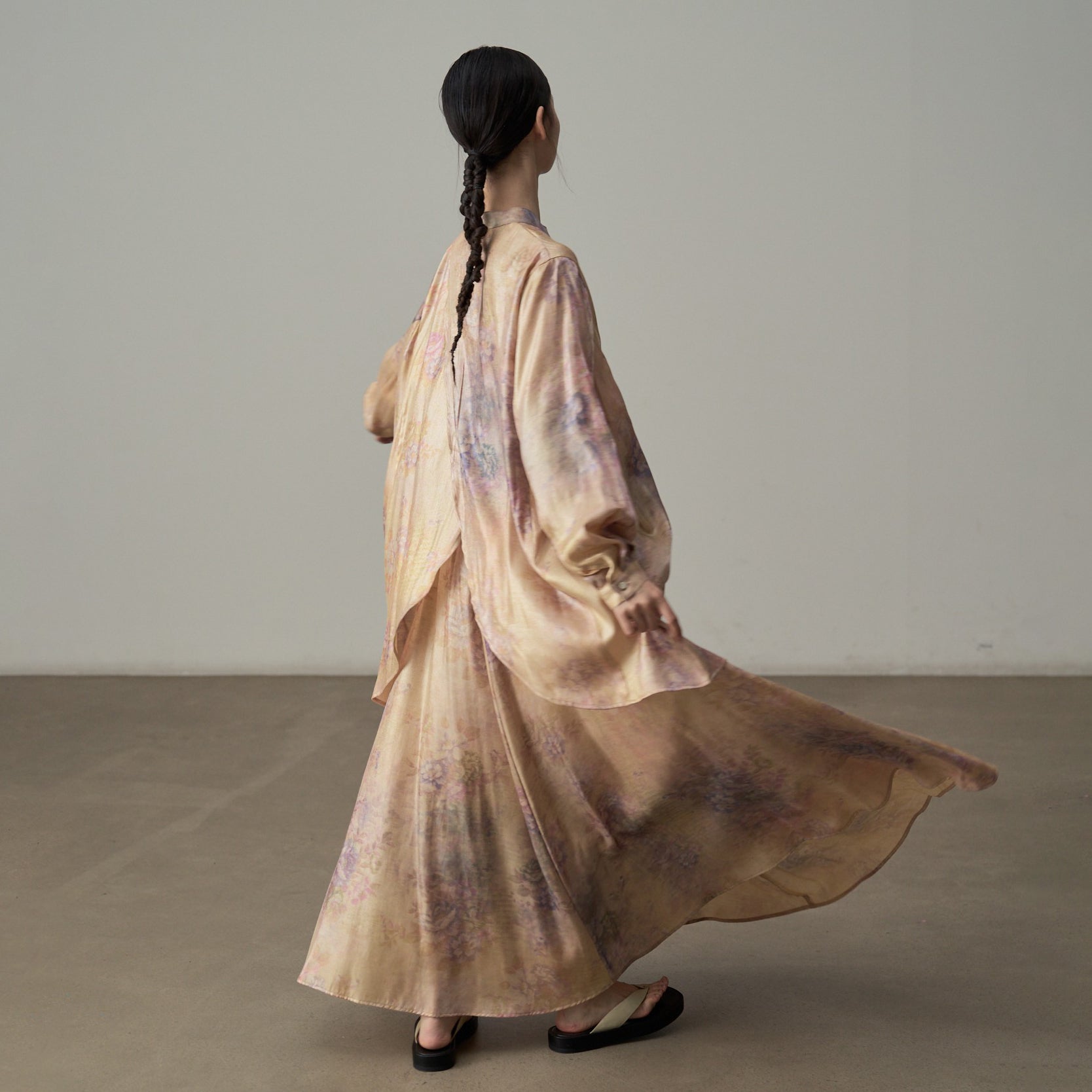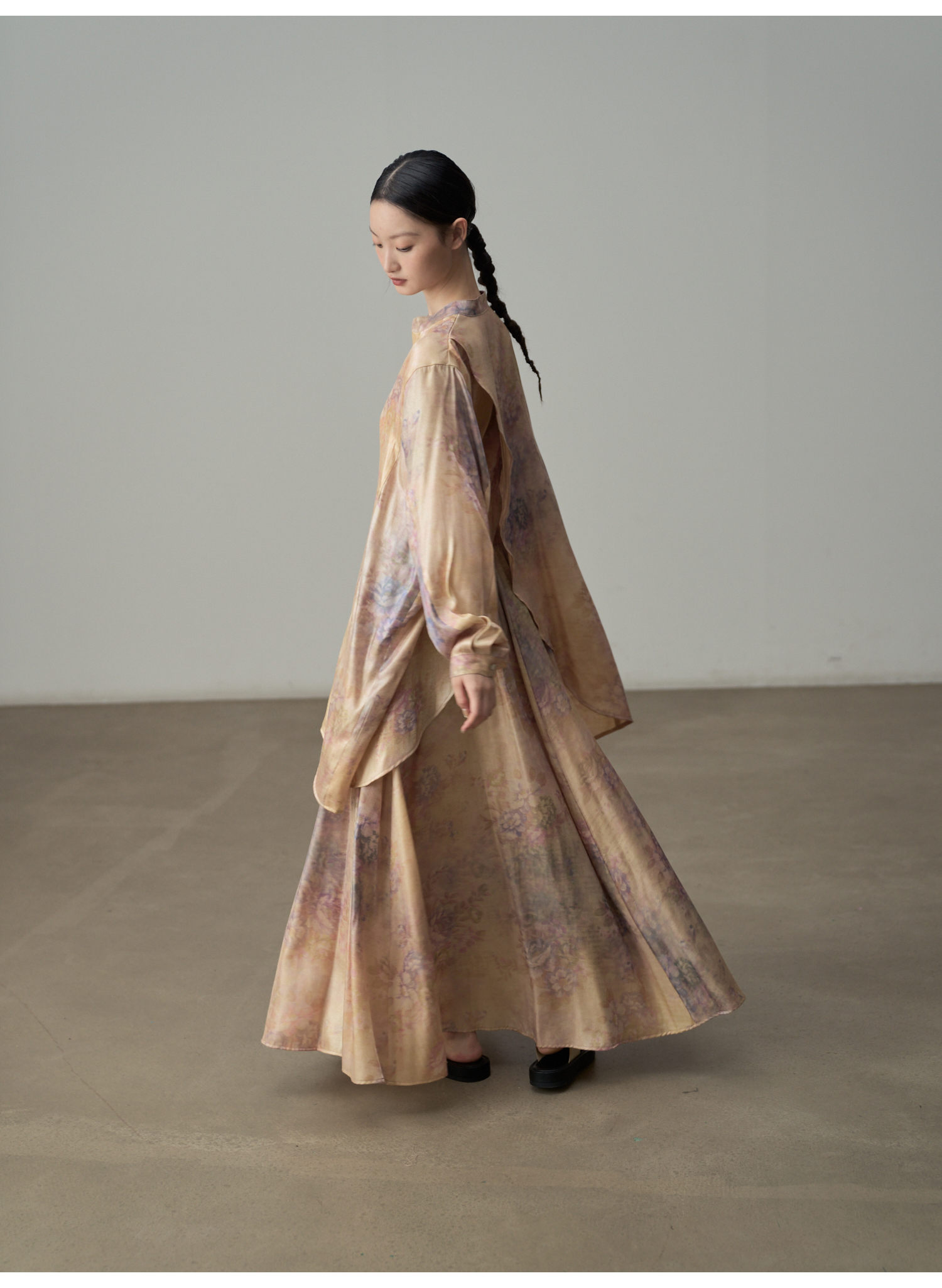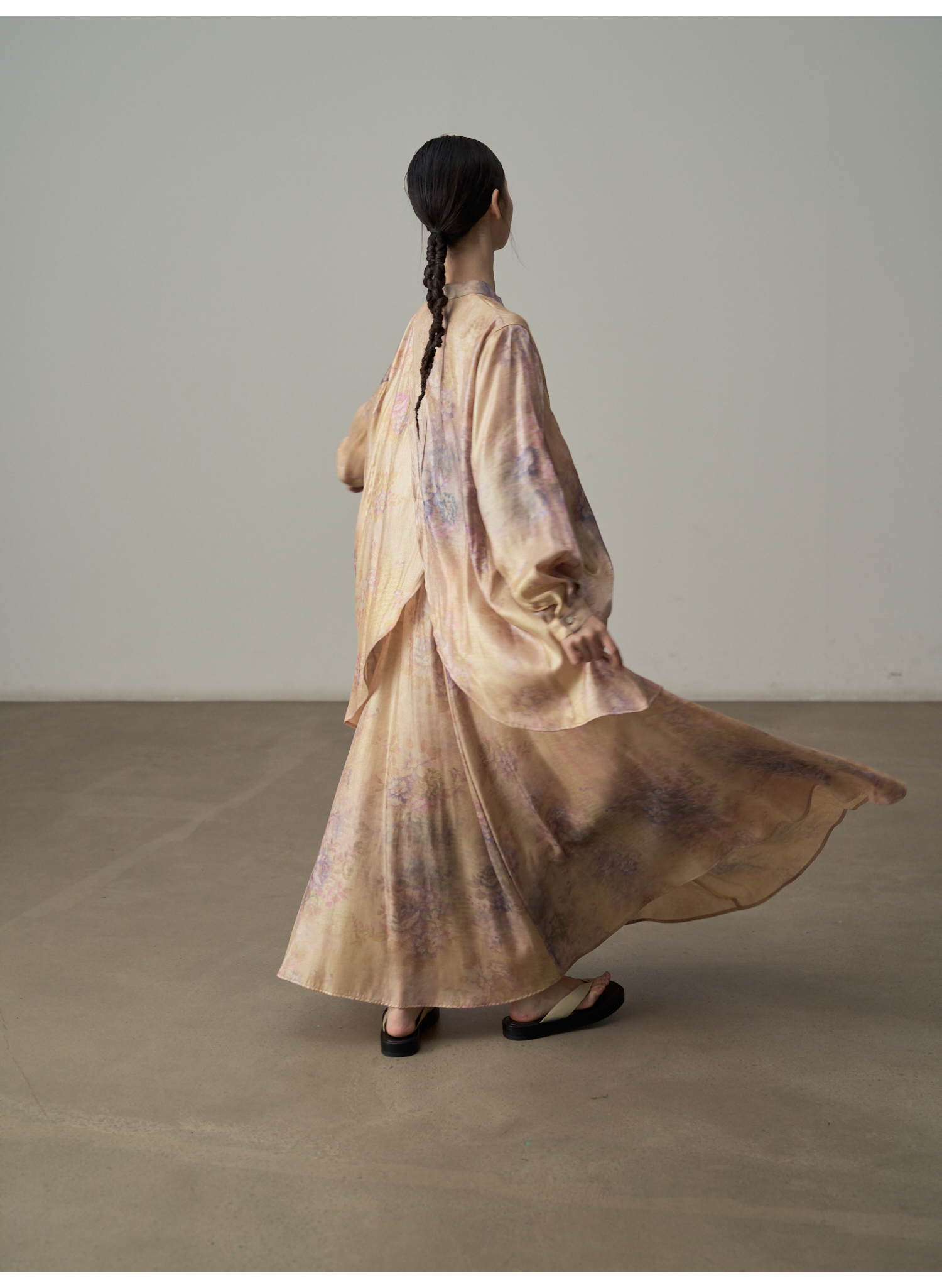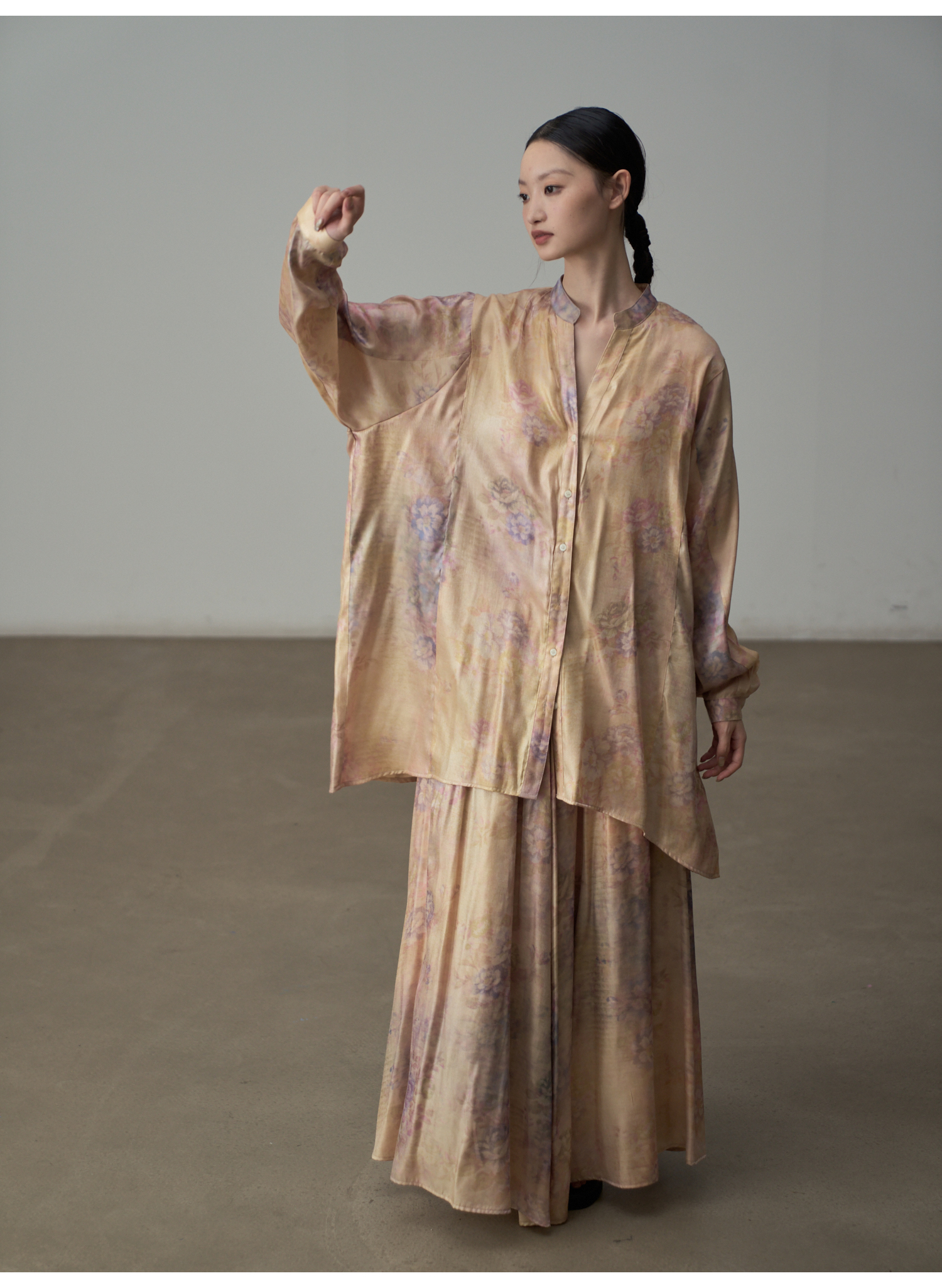 【単品注文】【セットアップ】新中華風 レトロ 薄手 UVカット プリント ゆったり 体型カバー 長袖シャツ+フレアスカート【SHシリーズ】
