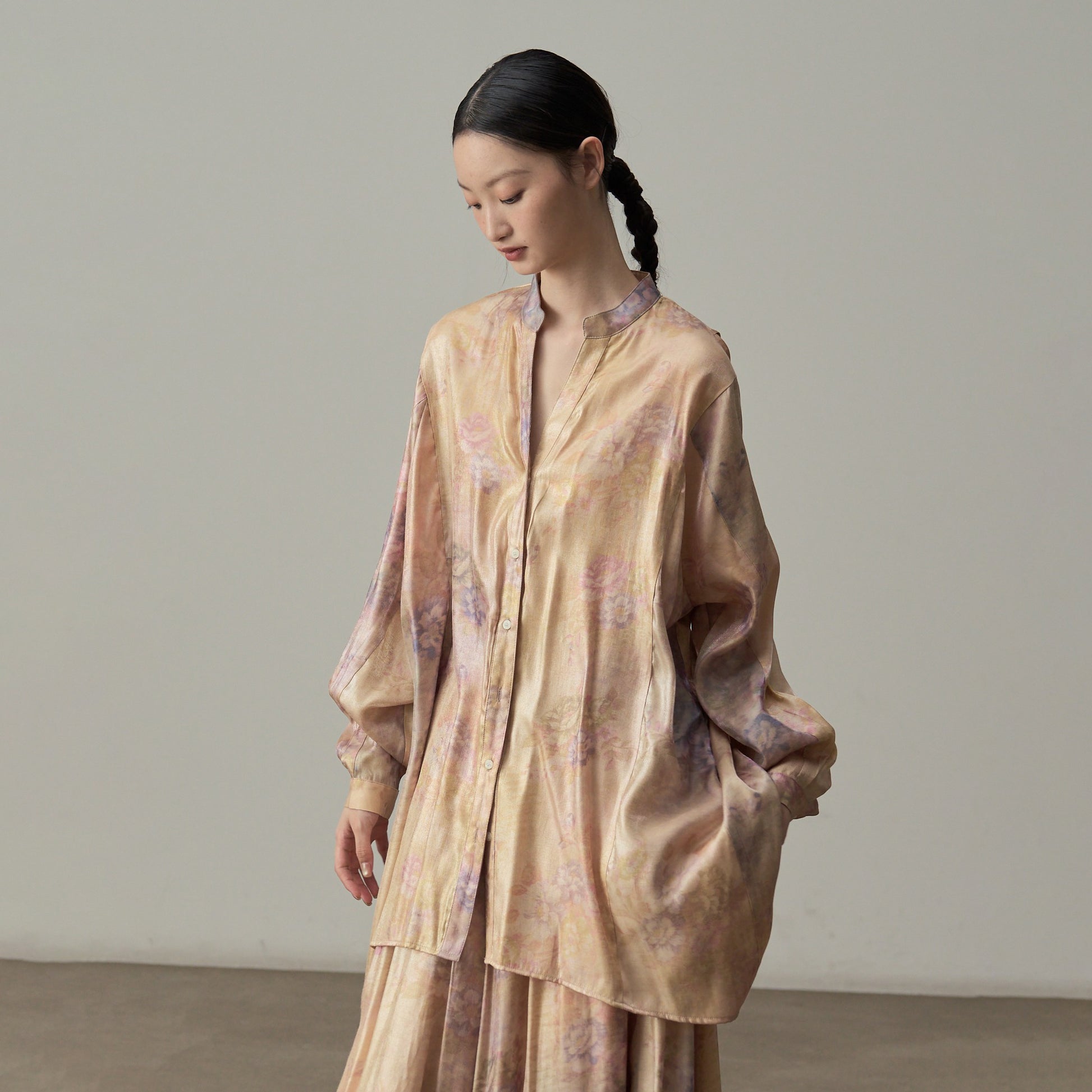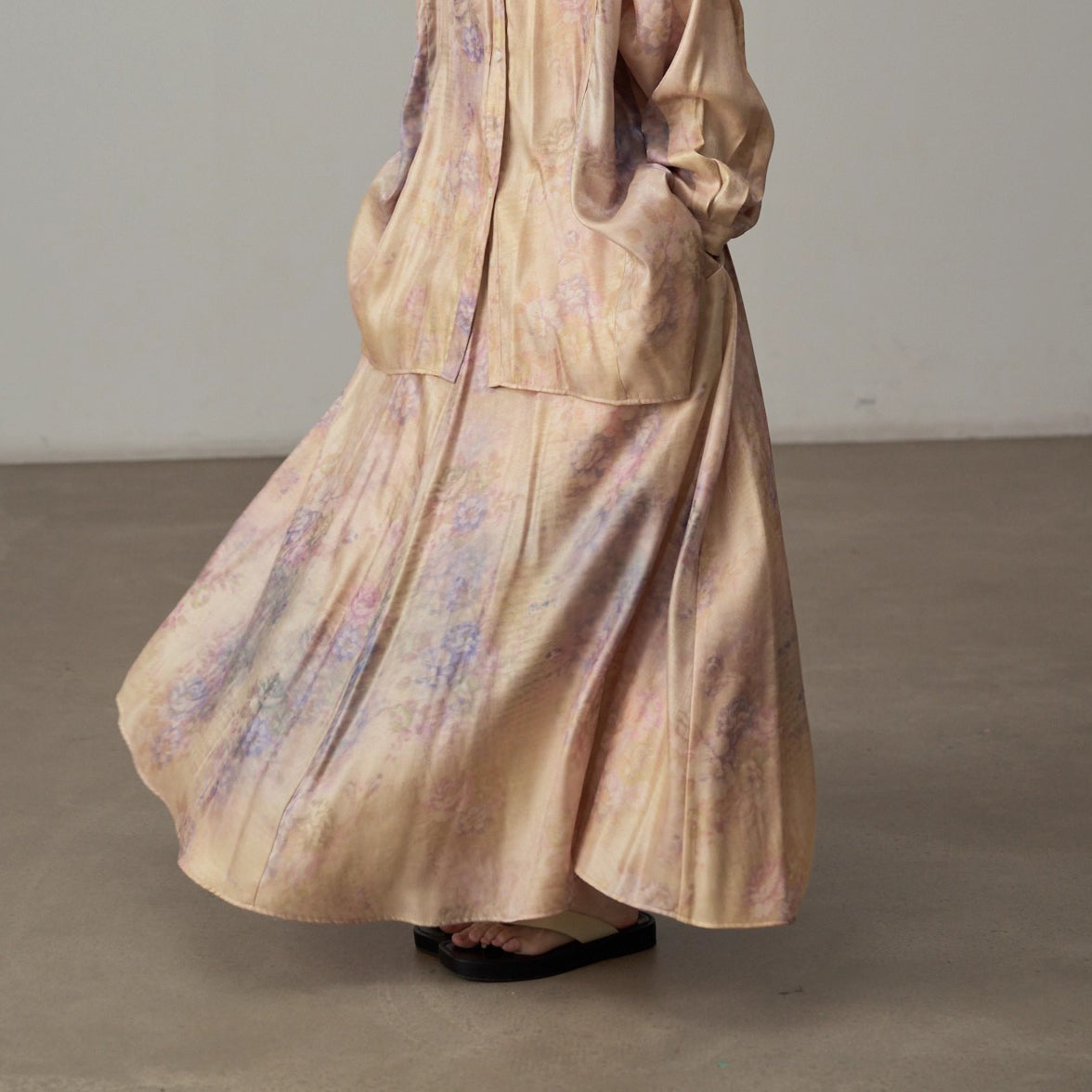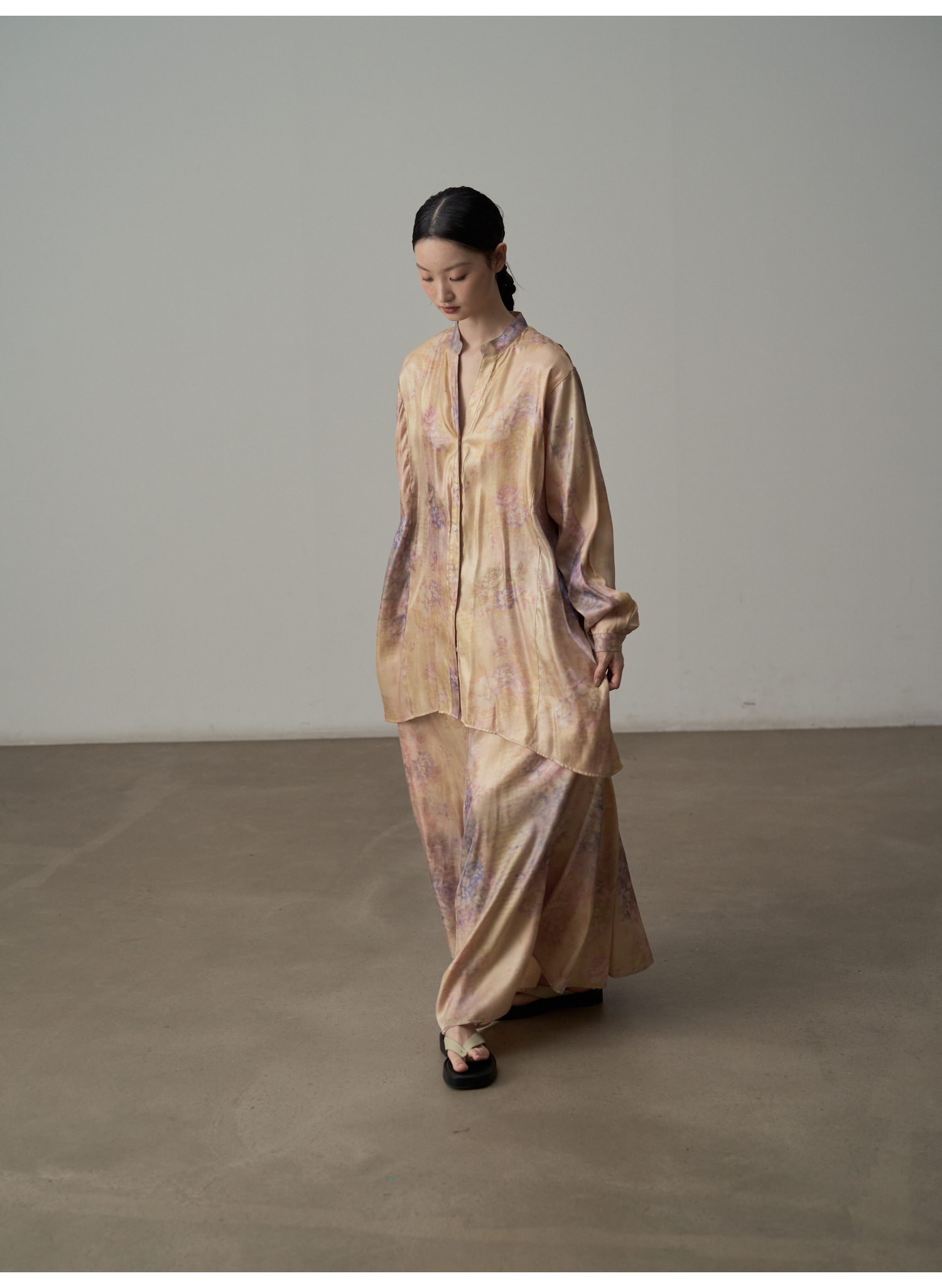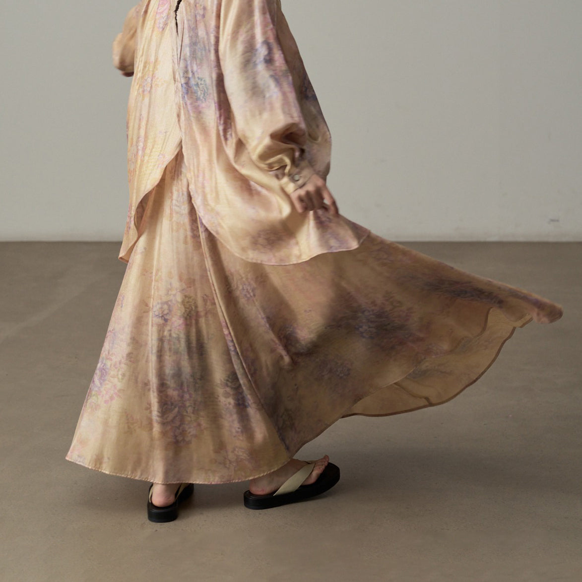 【単品注文】【セットアップ】新中華風 レトロ 薄手 UVカット プリント ゆったり 体型カバー 長袖シャツ+フレアスカート【SHシリーズ】