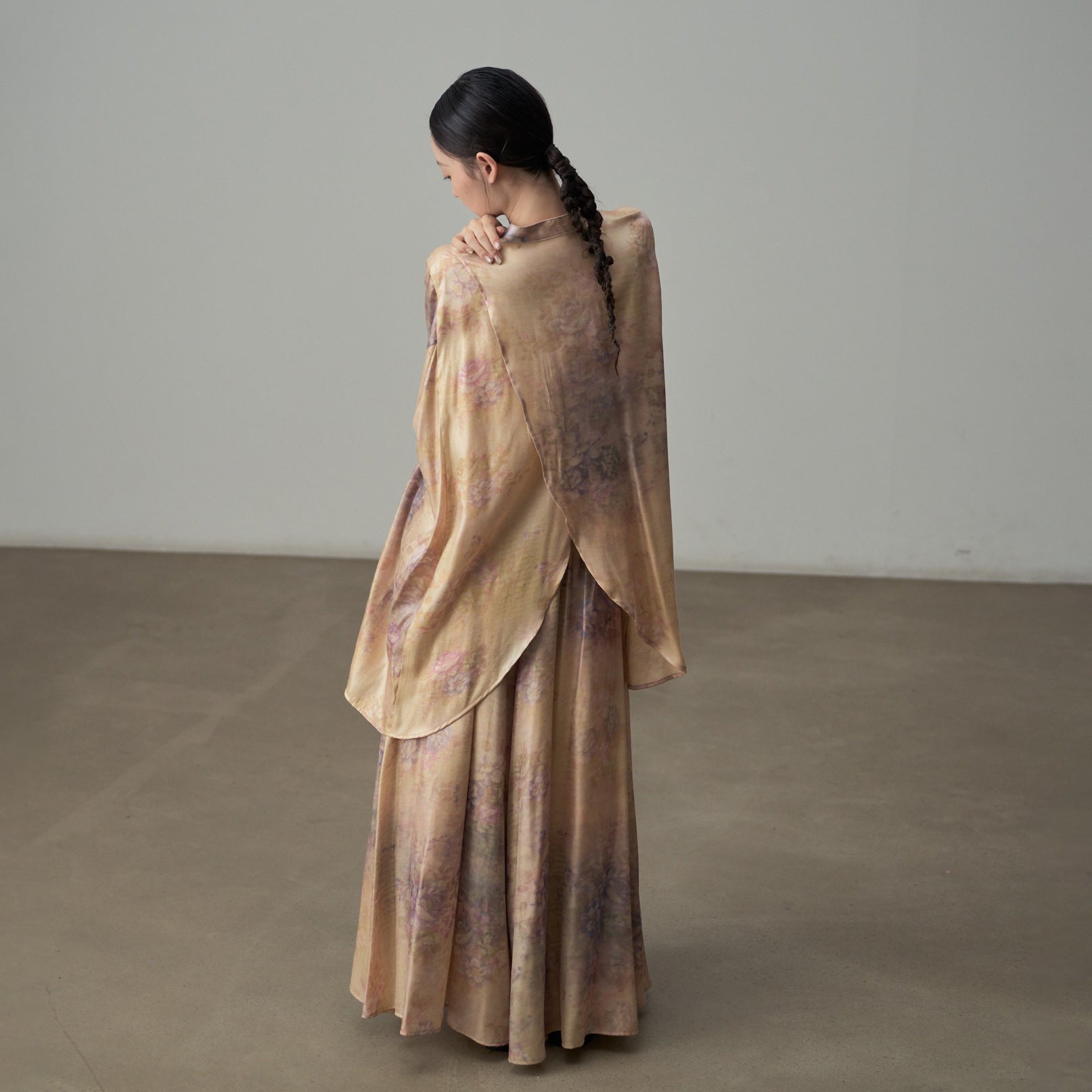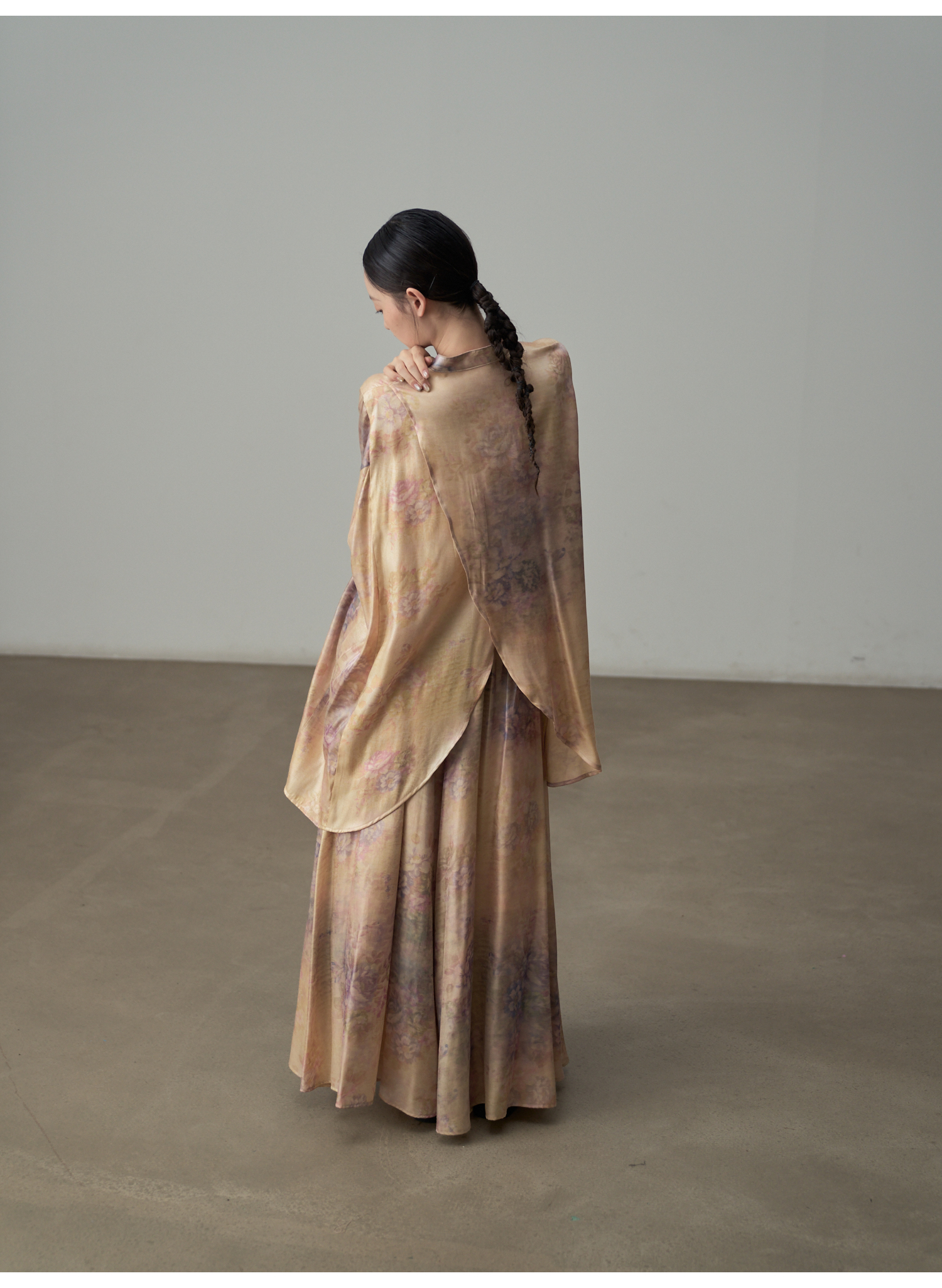 【商品名】【単品注文】【セットアップ】新中華風 レトロ 薄手 UVカット プリント ゆったり 体型カバー 長袖シャツ+プリント フレアスカート【SHシリーズ】