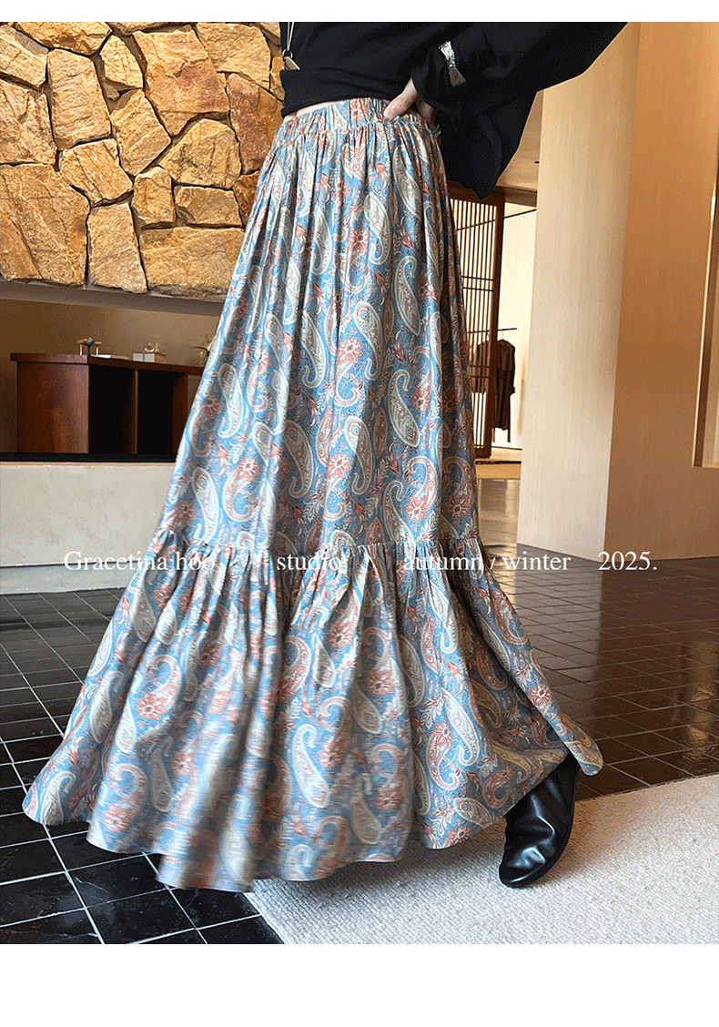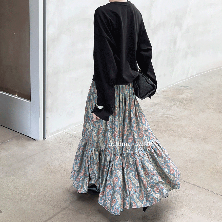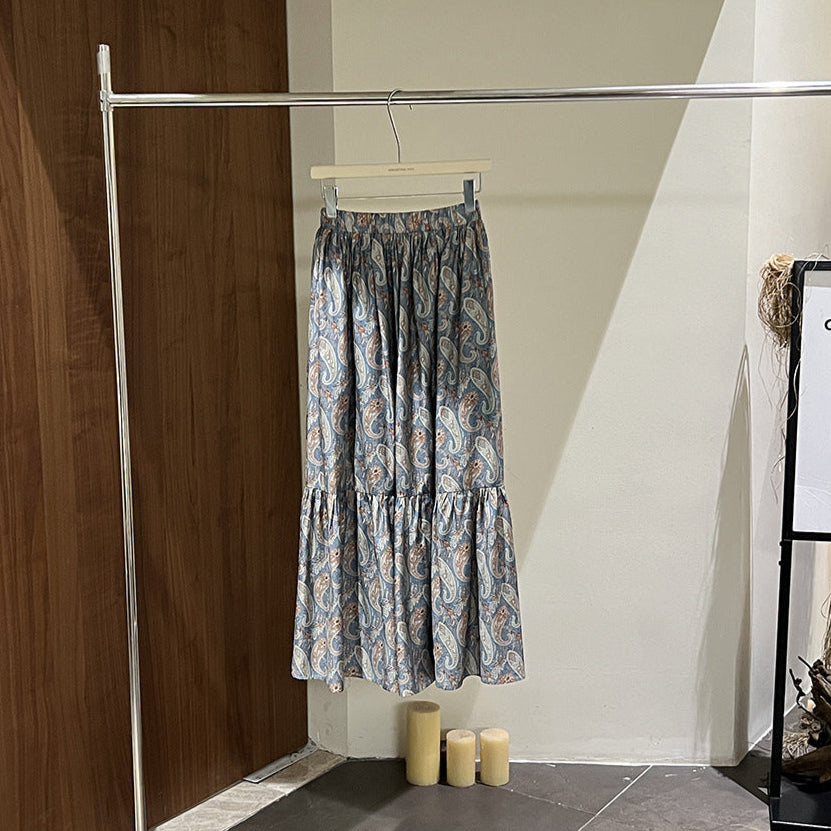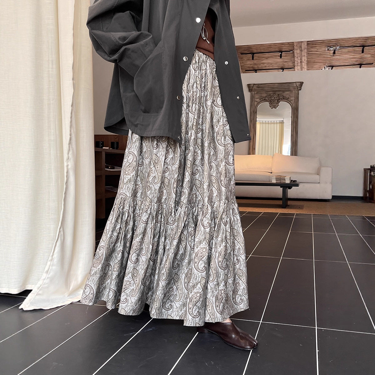 【ボトムス】秋新作 フレンチスタイル ペイズリー柄 切替え フレアスカート リゾート風 レディース コーディネート自在【SHシリーズ】
