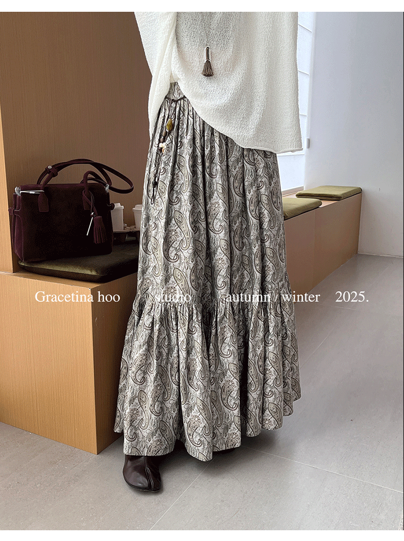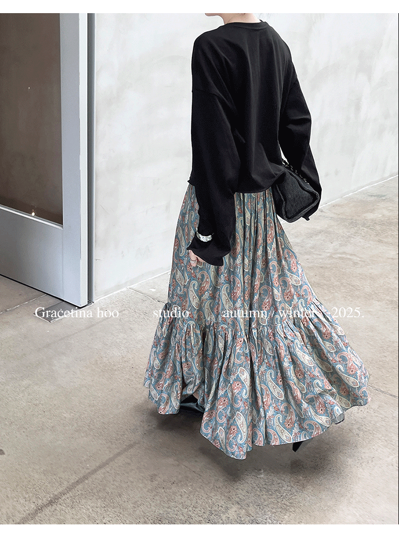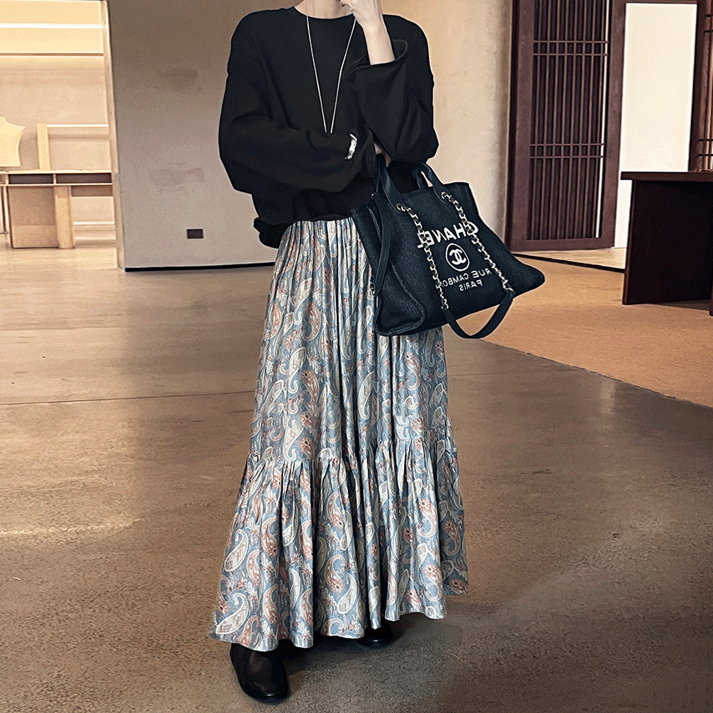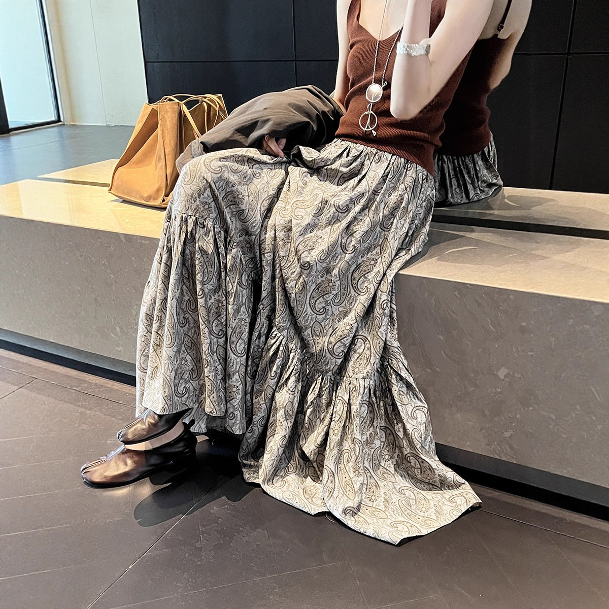 【ボトムス】秋新作 フレンチスタイル ペイズリー柄 切替え フレアスカート リゾート風 レディース コーディネート自在【SHシリーズ】