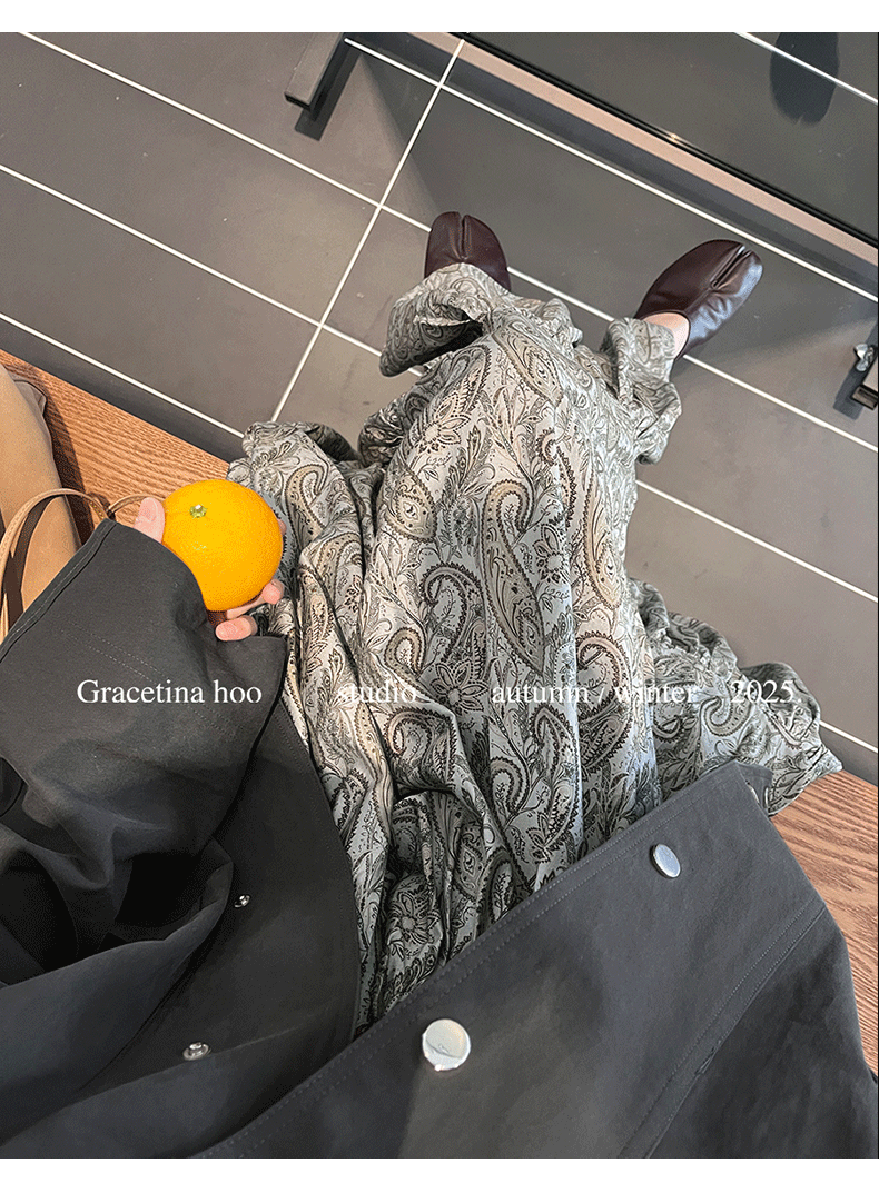 【商品名】【ボトムス】秋新作 フレンチスタイル ペイズリー柄 切替え フレアスカート リゾート風 レディース コーディネート自在【SHシリーズ】