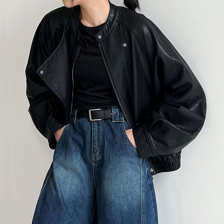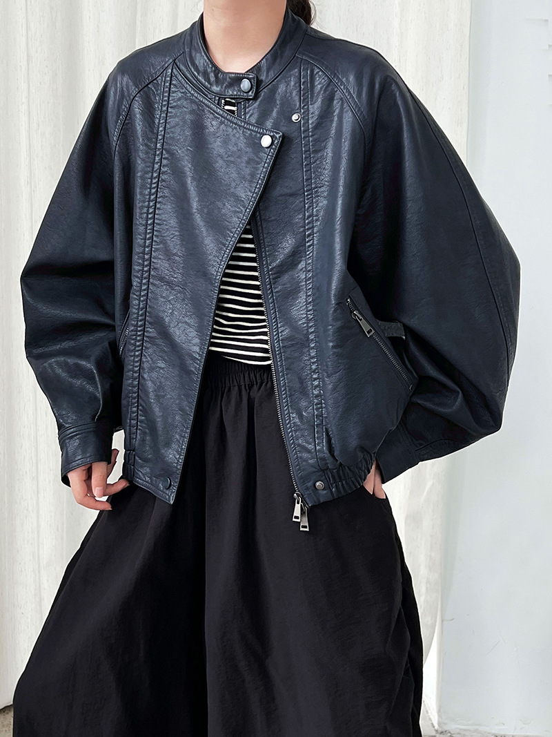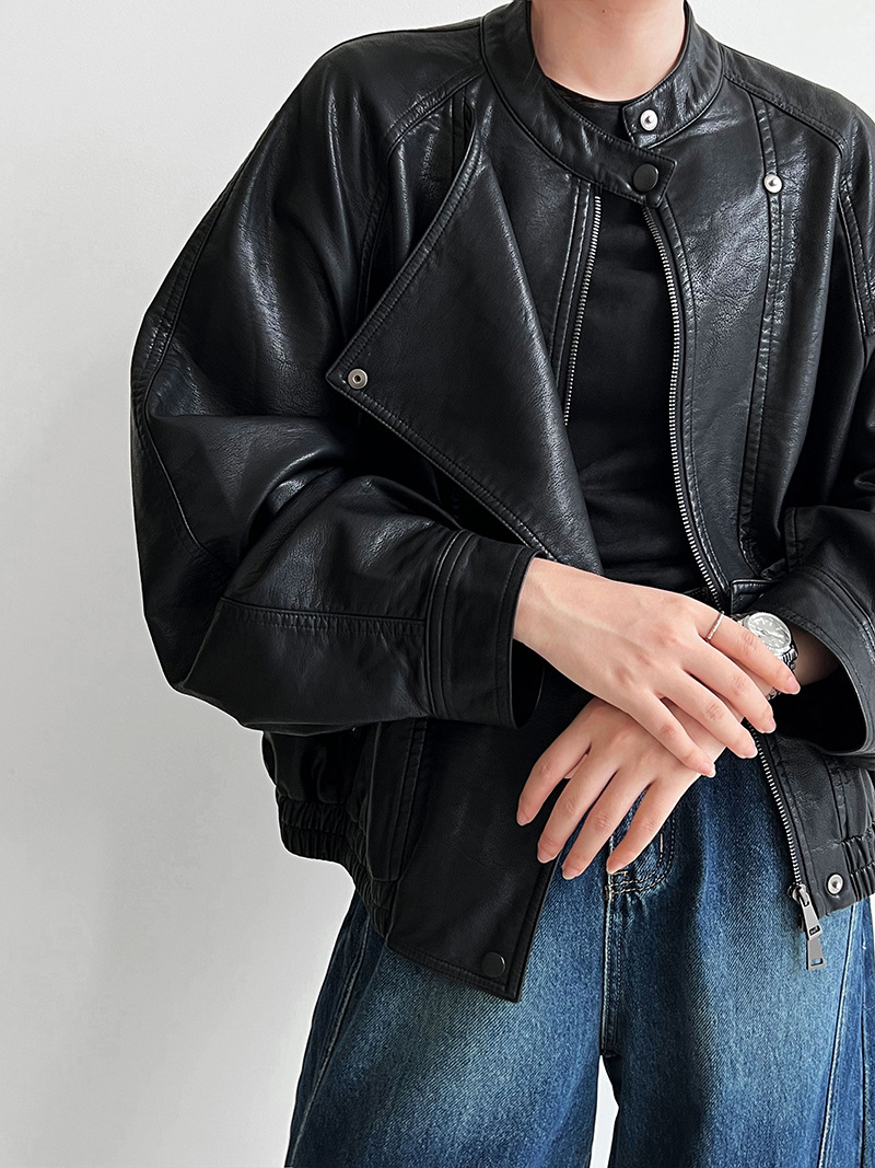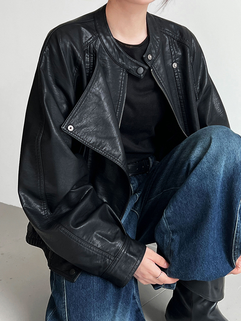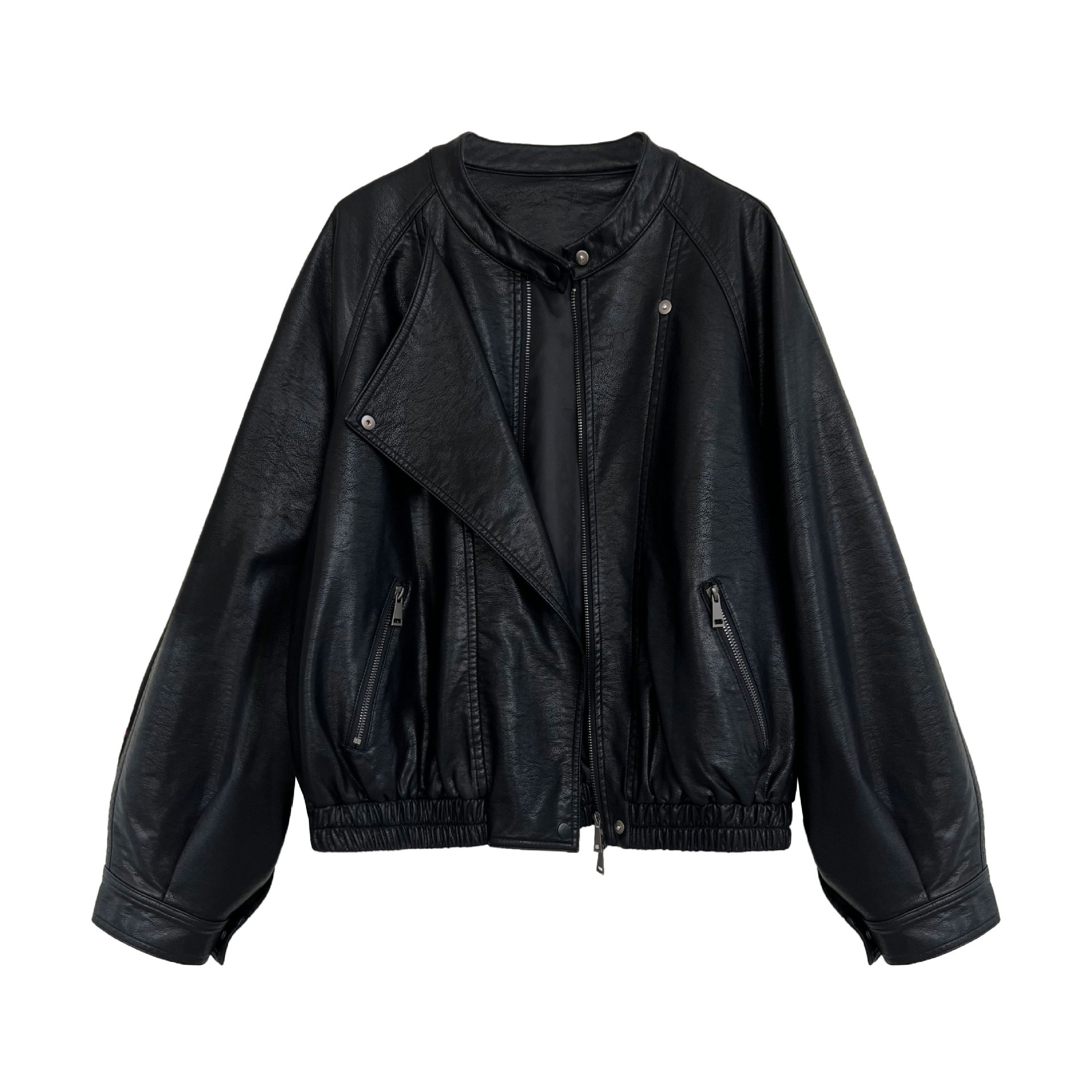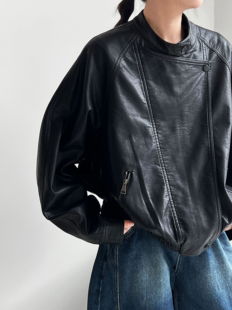 【アウター】韓系ハイエンド感 バイカージャケット レディース 秋新作 ゆったりショート丈 PUレザージャケット【SNシリーズ】