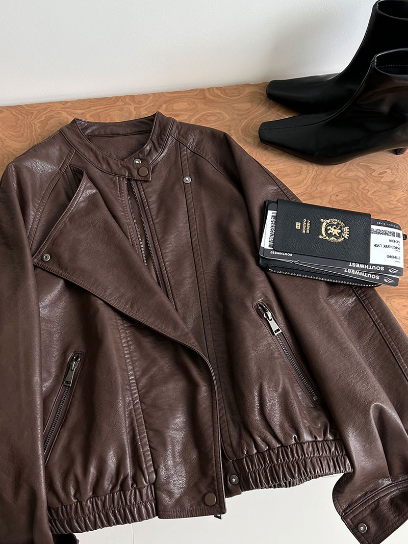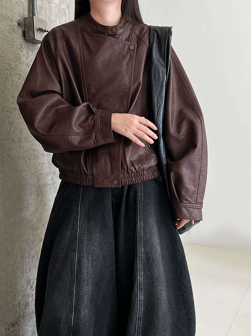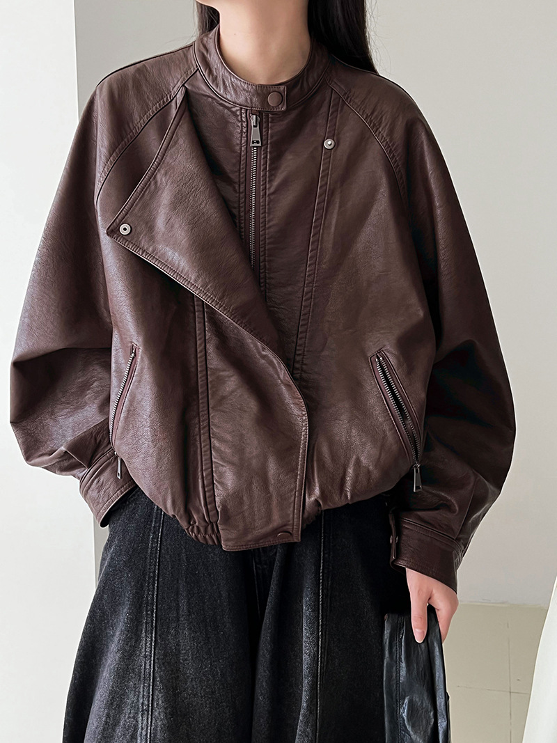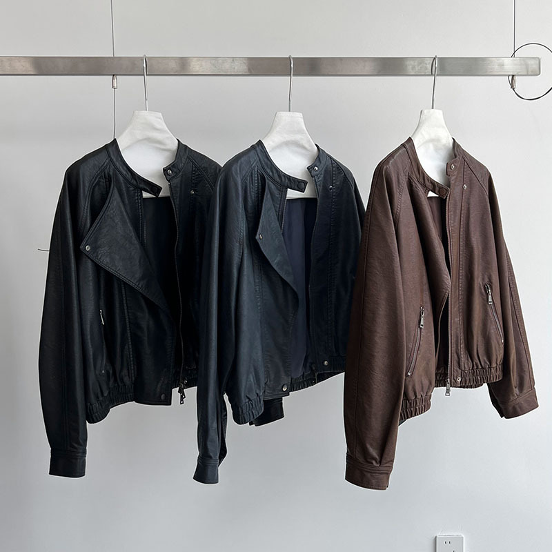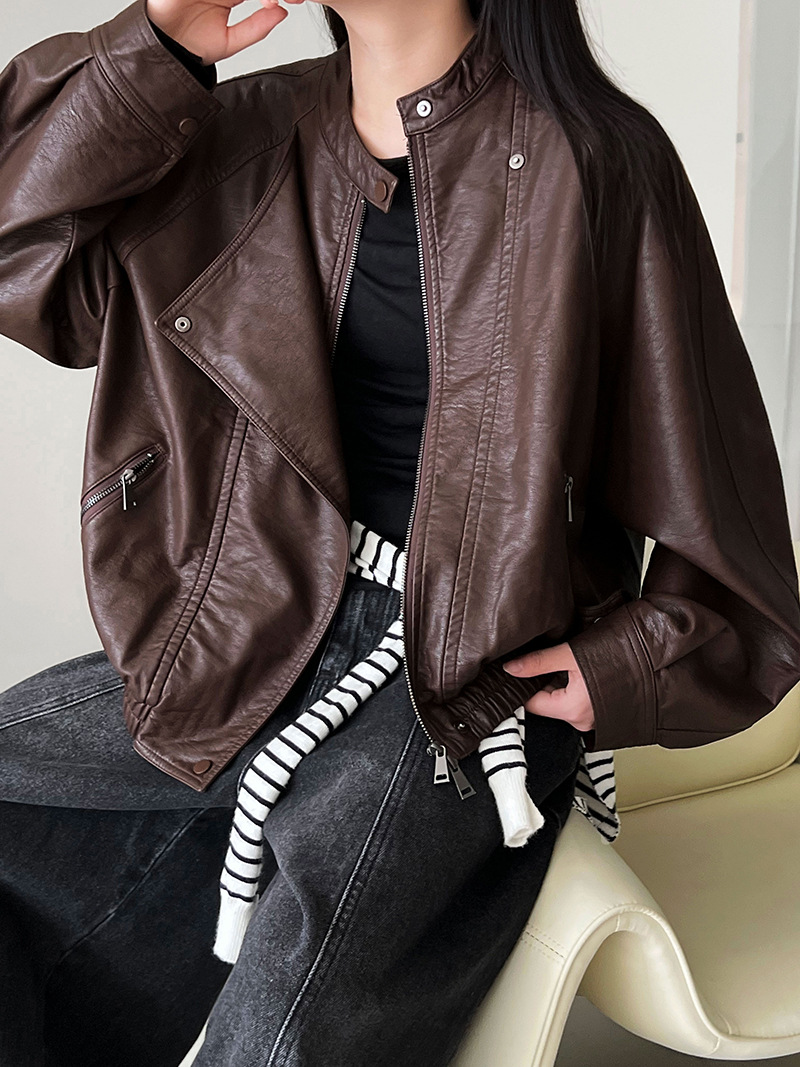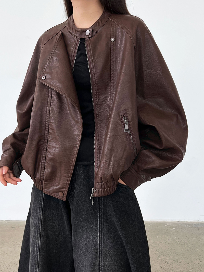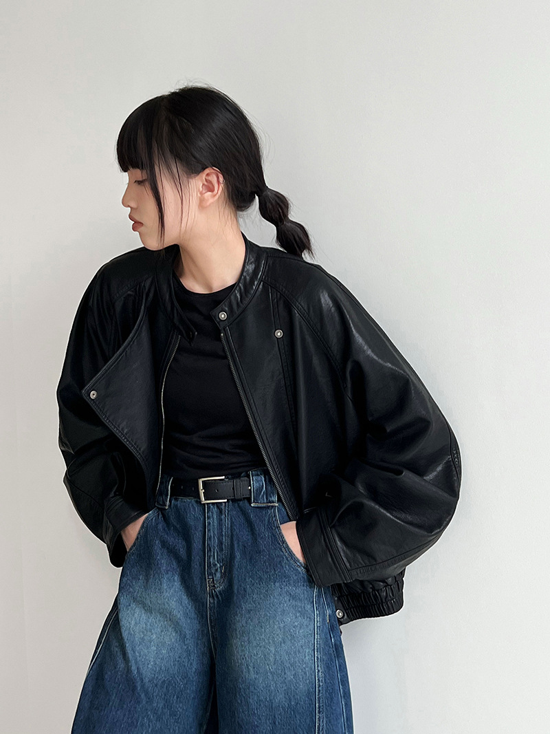 【アウター】韓系ハイエンド感 バイカージャケット レディース 秋新作 ゆったりショート丈 PUレザージャケット【SNシリーズ】