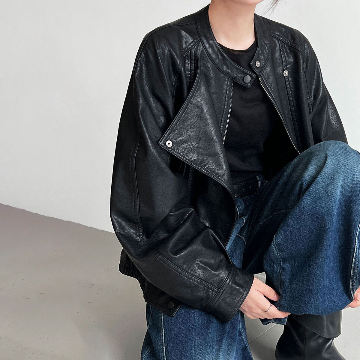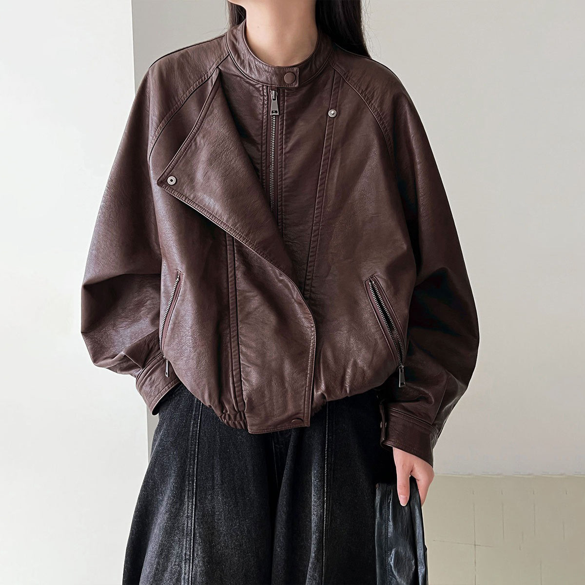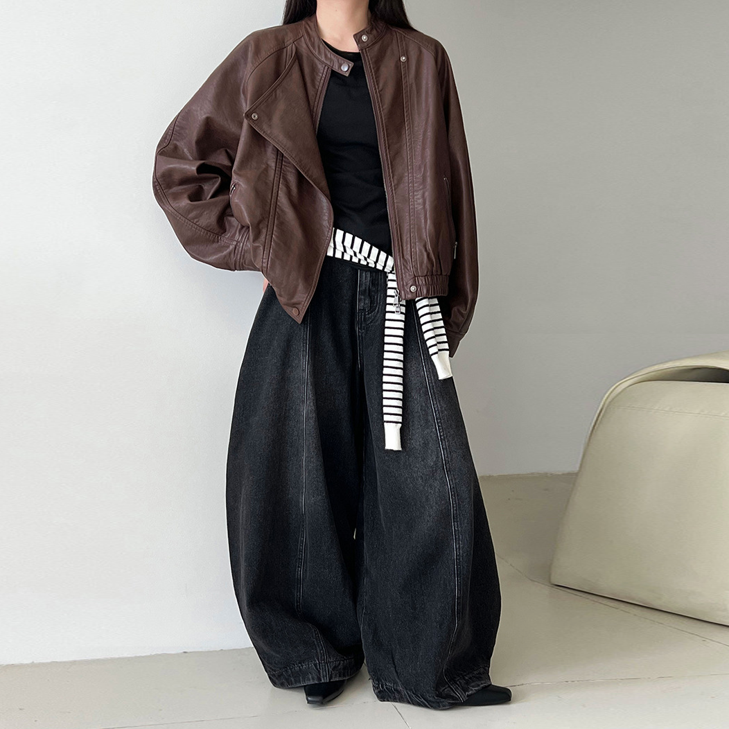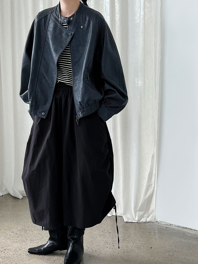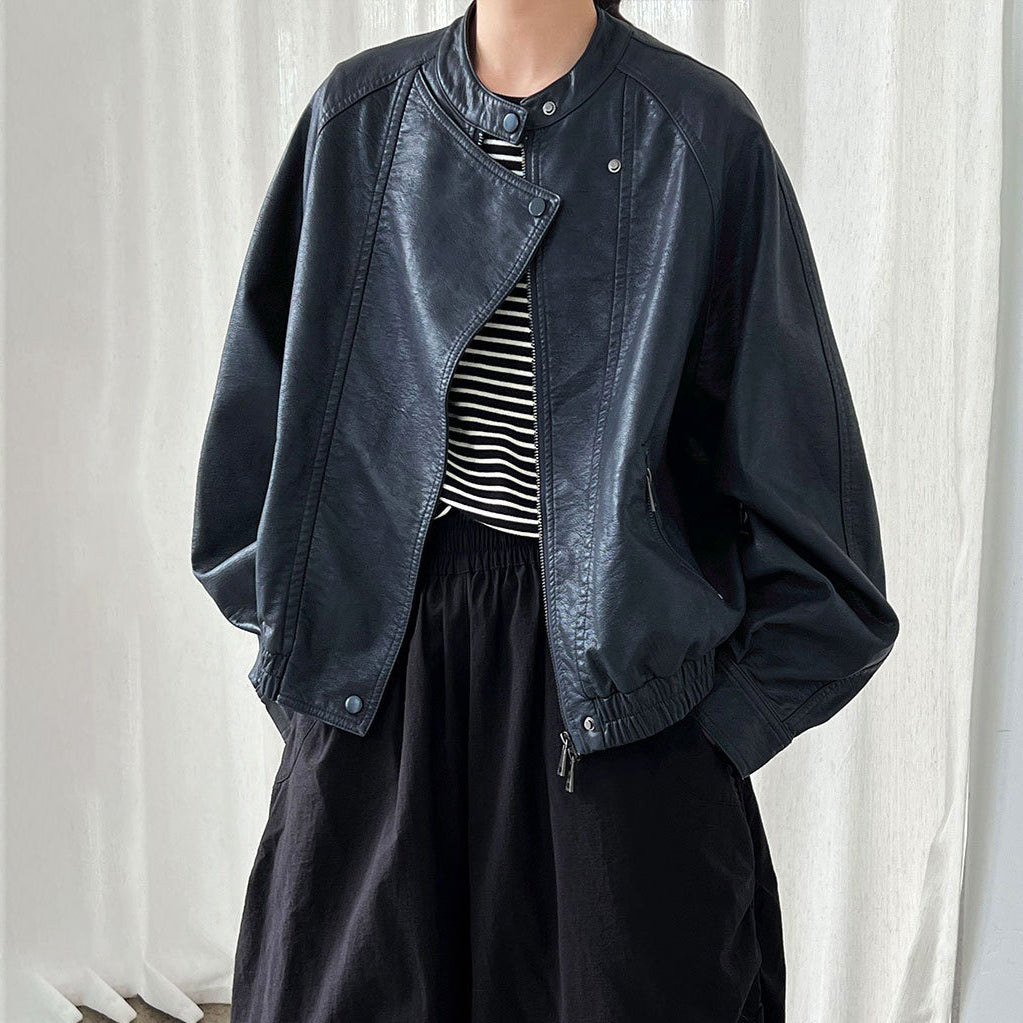 【アウター】韓系ハイエンド感 バイカージャケット レディース 秋新作 ゆったりショート丈 PUレザージャケット【SNシリーズ】