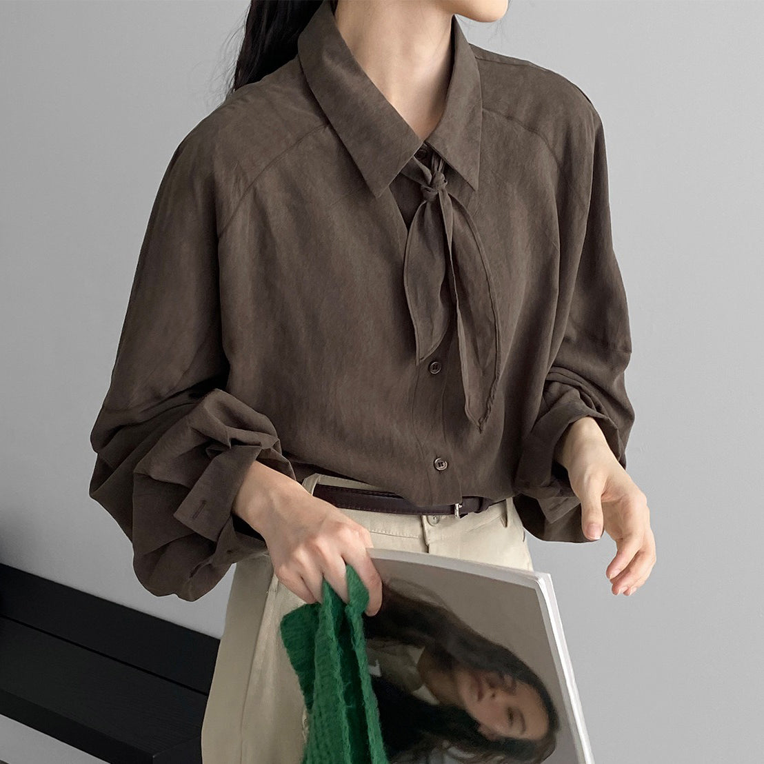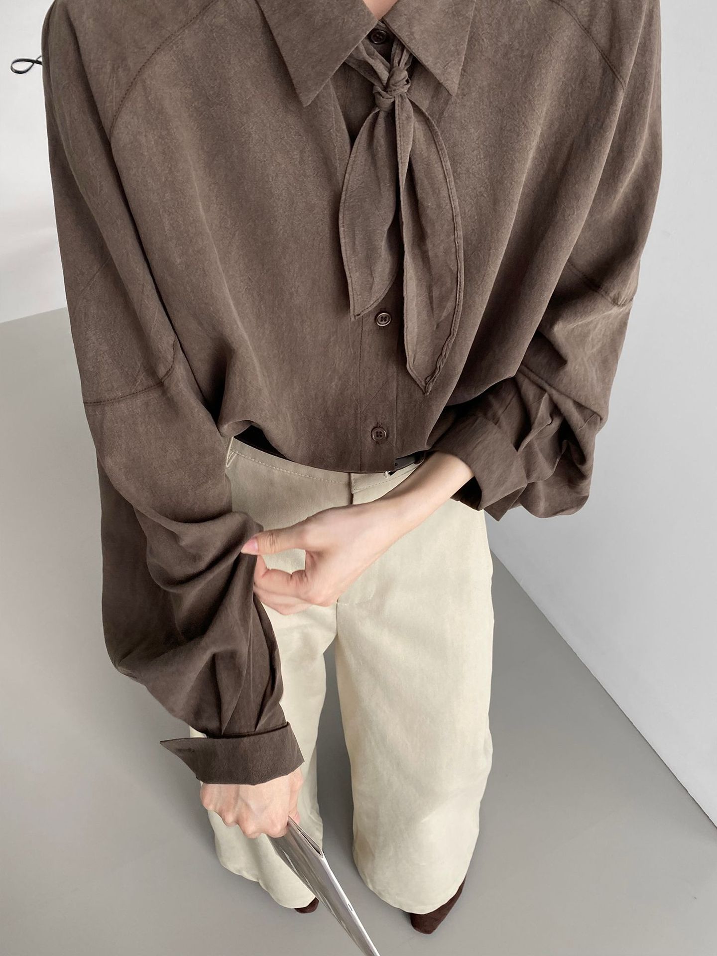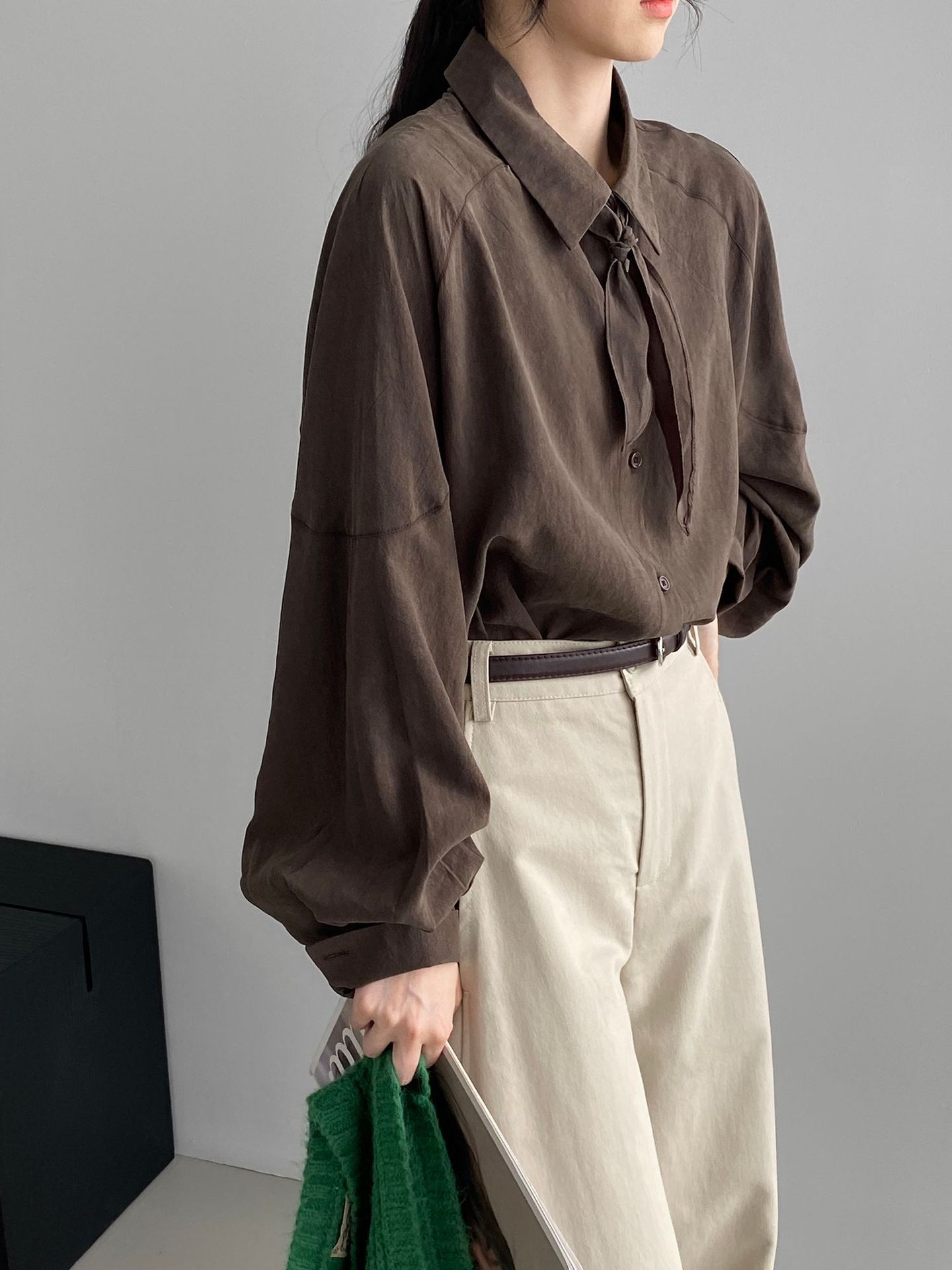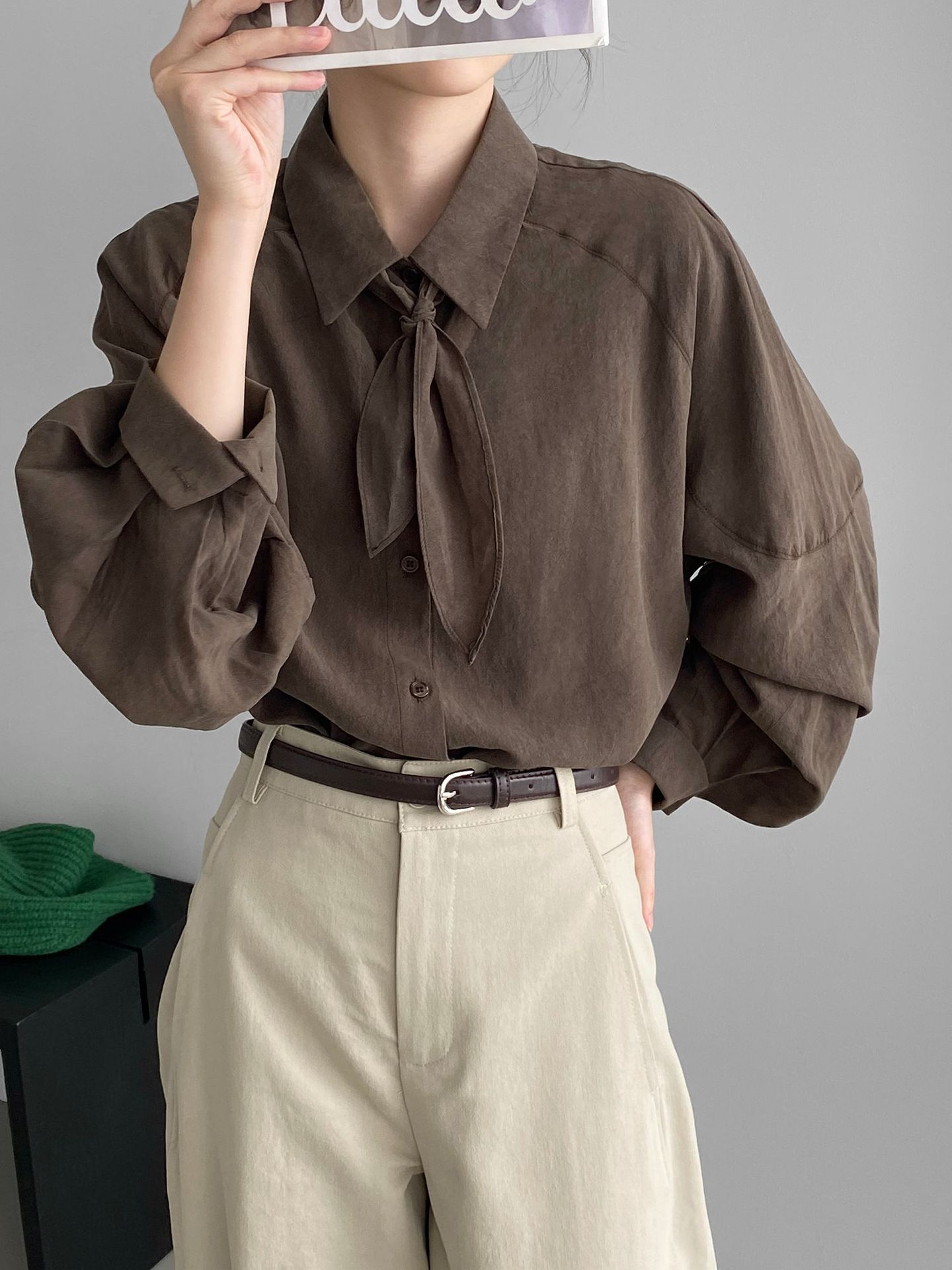 【トップス】韓国風 おしゃれ感 100%リヨセル ゆったりシャツ レディース リボン付きブラウス【JZシリーズ】