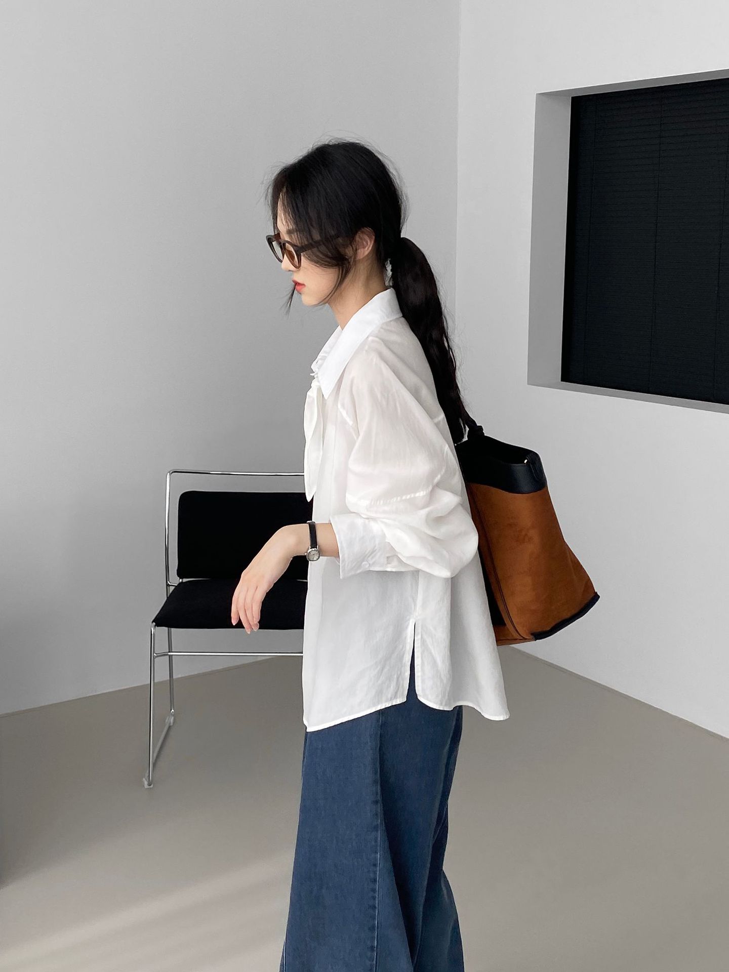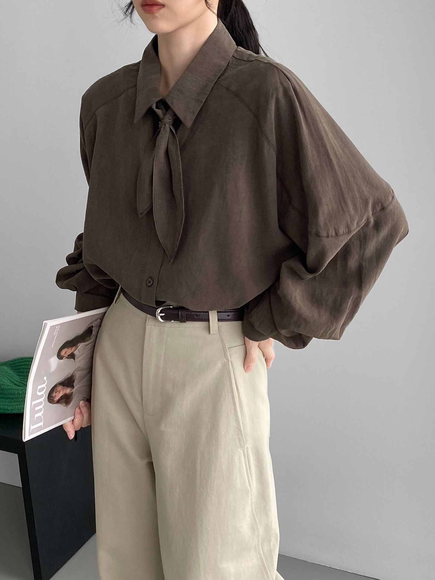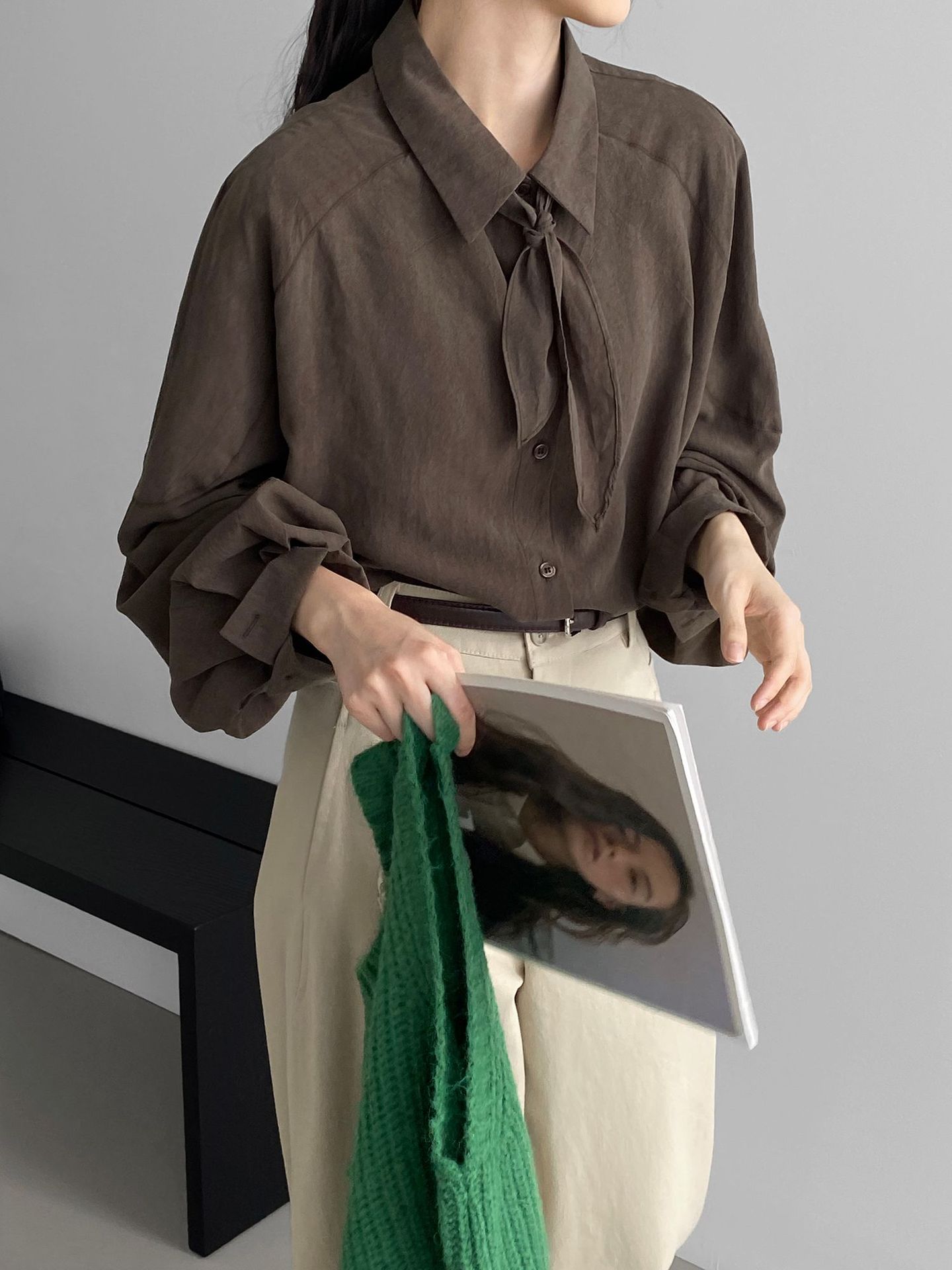 【トップス】韓国風 おしゃれ感 100%リヨセル ゆったりシャツ レディース リボン付きブラウス【JZシリーズ】
