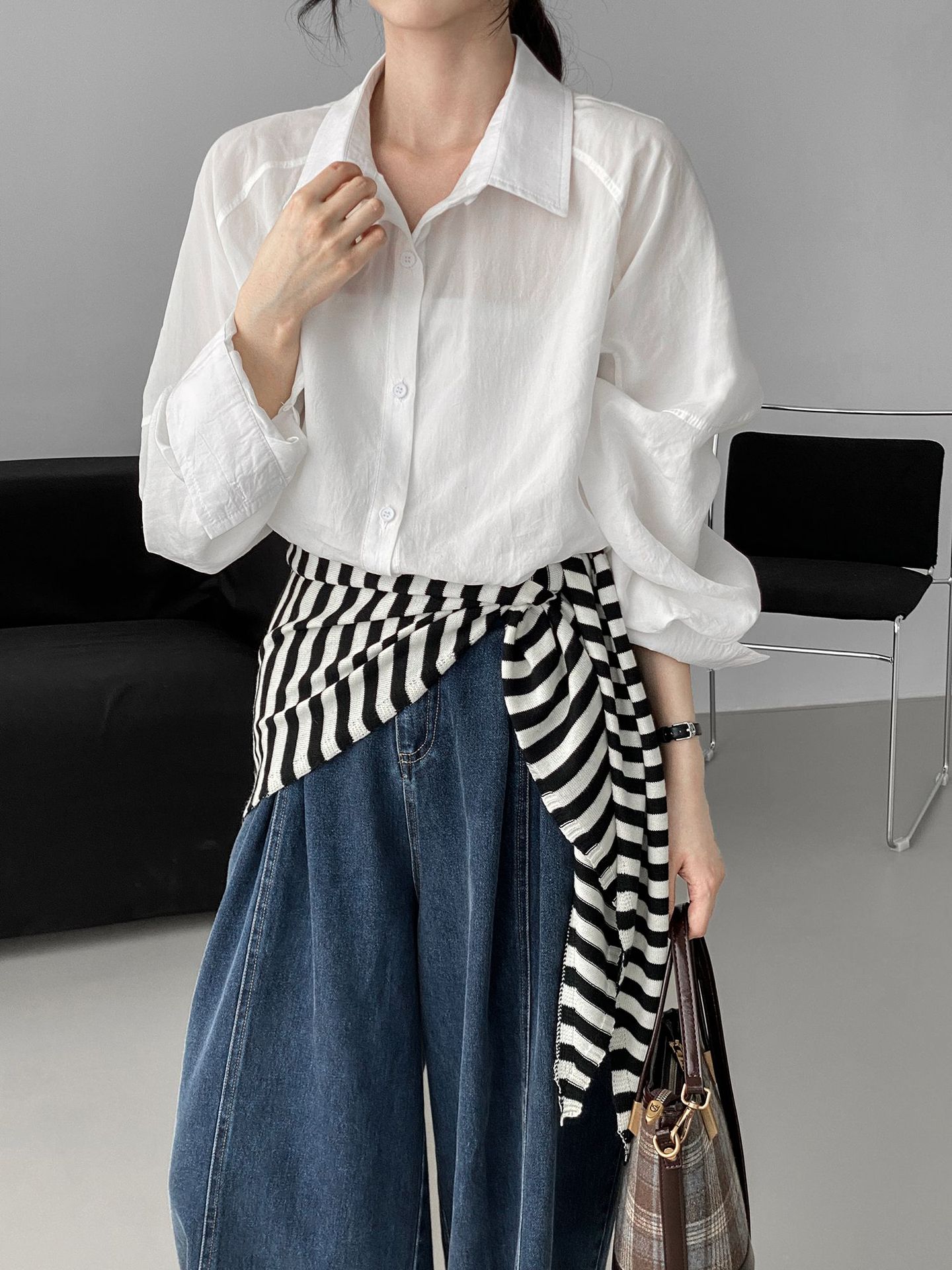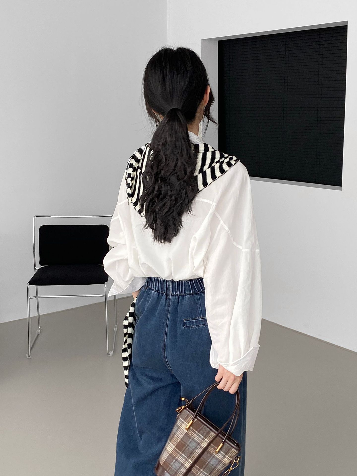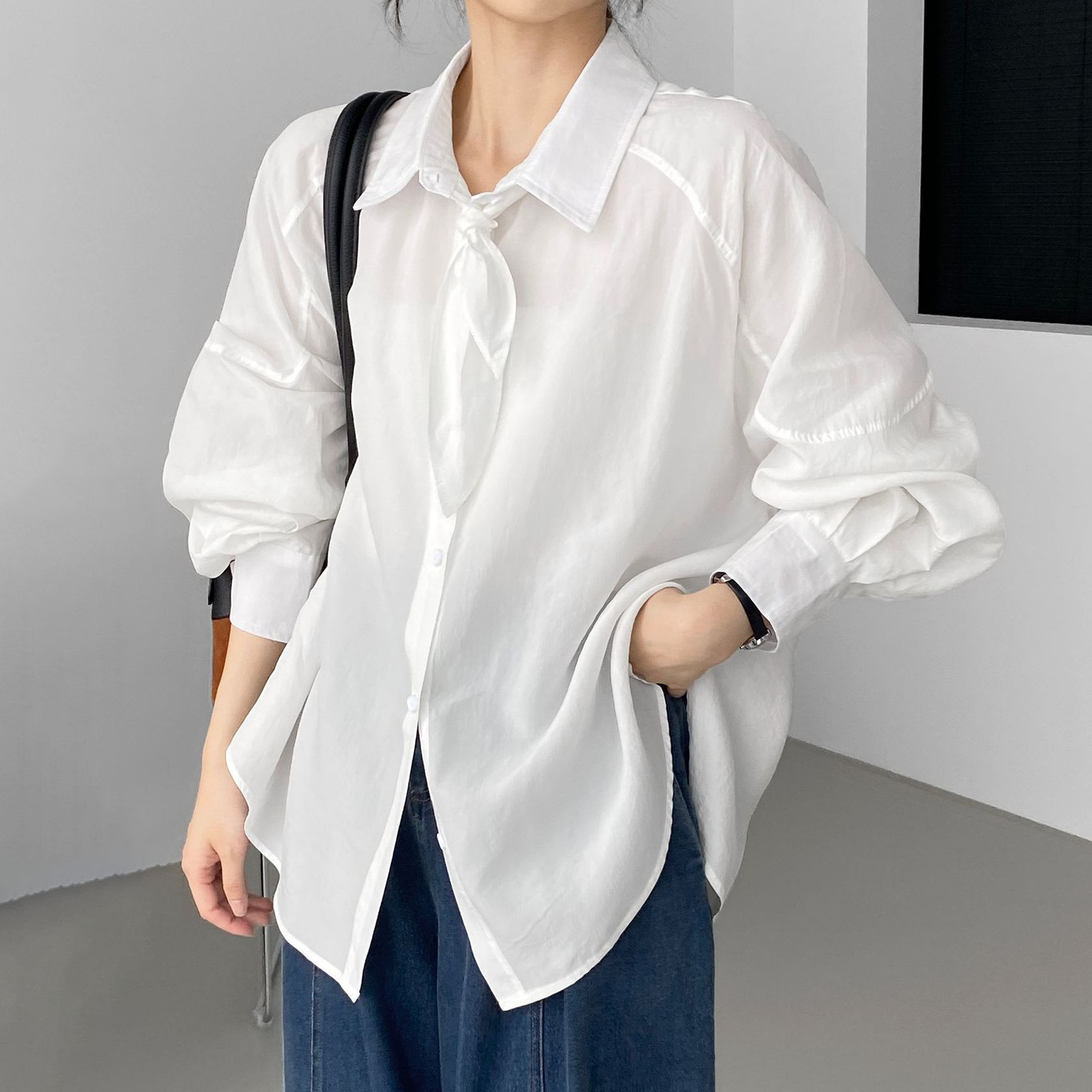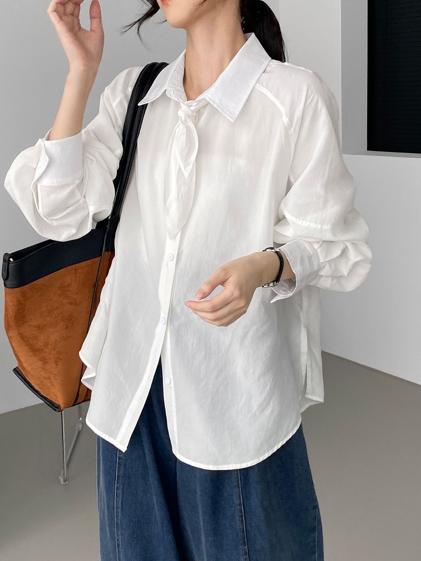 【トップス】韓国風 おしゃれ感 100%リヨセル ゆったりシャツ レディース リボン付きブラウス【JZシリーズ】