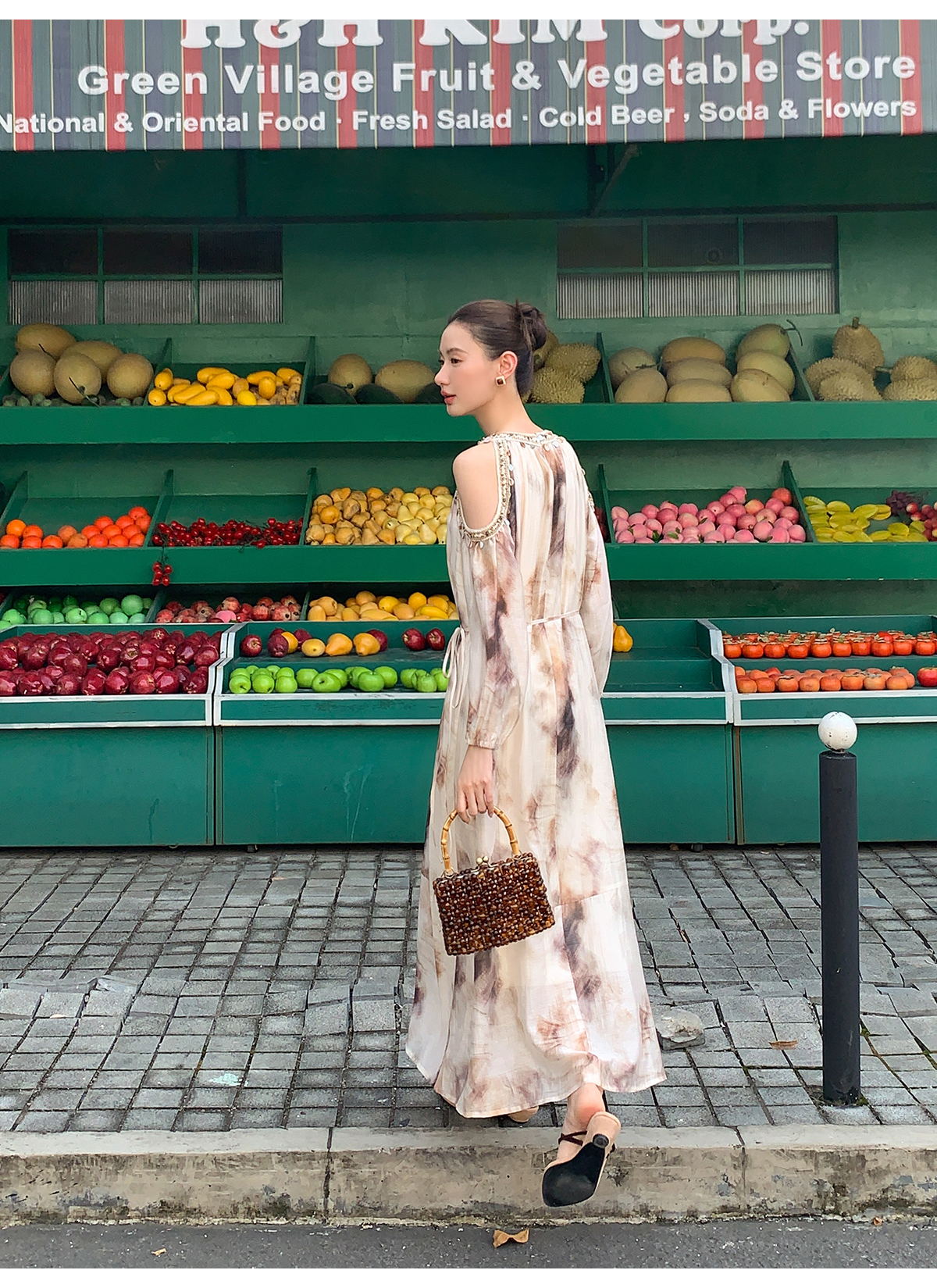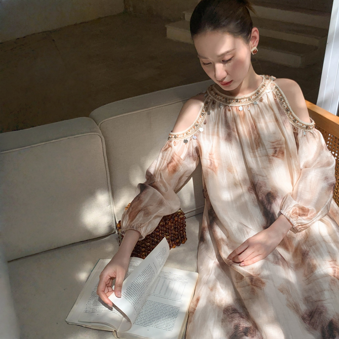 【商品名】【ワンピース】春 秋 夏 リゾート風 オフショルダー 花柄 長袖 ワンピース 【SHシリーズ】