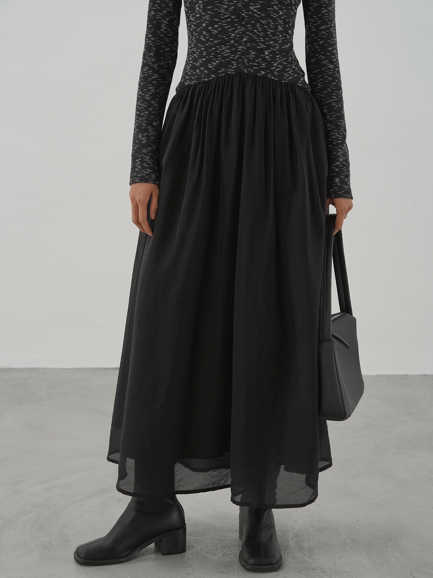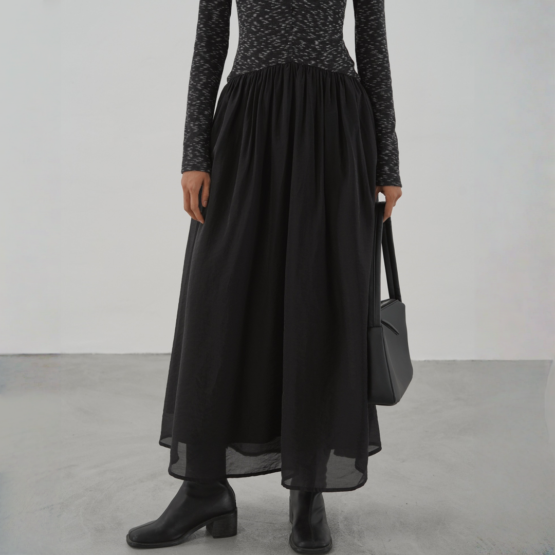【ワンピース】春 秋 冬 オーガンジー切替 ゆったり ティアード ワンピース 【AHシリーズ】