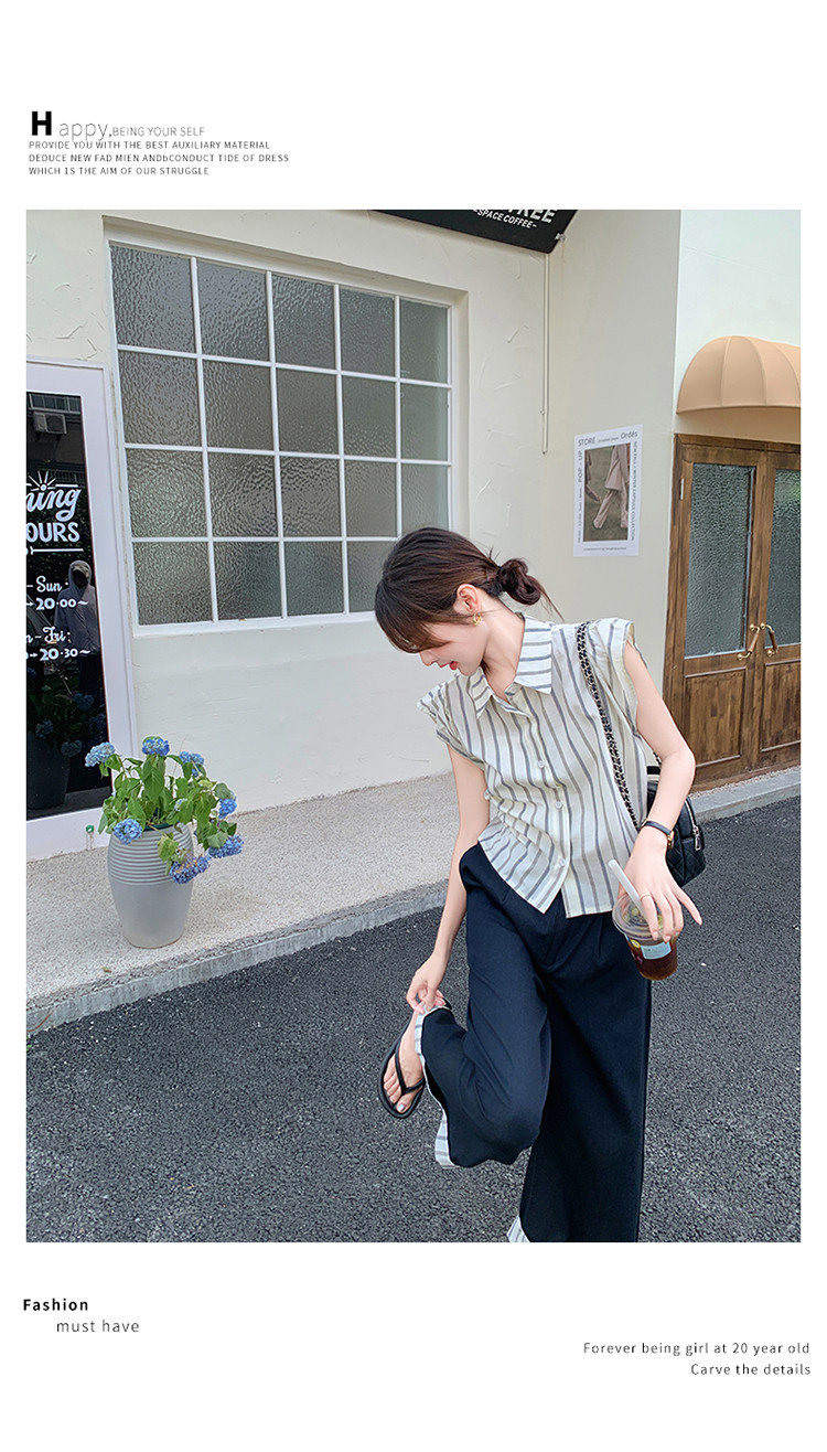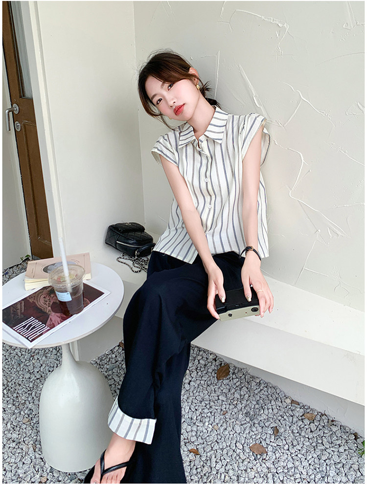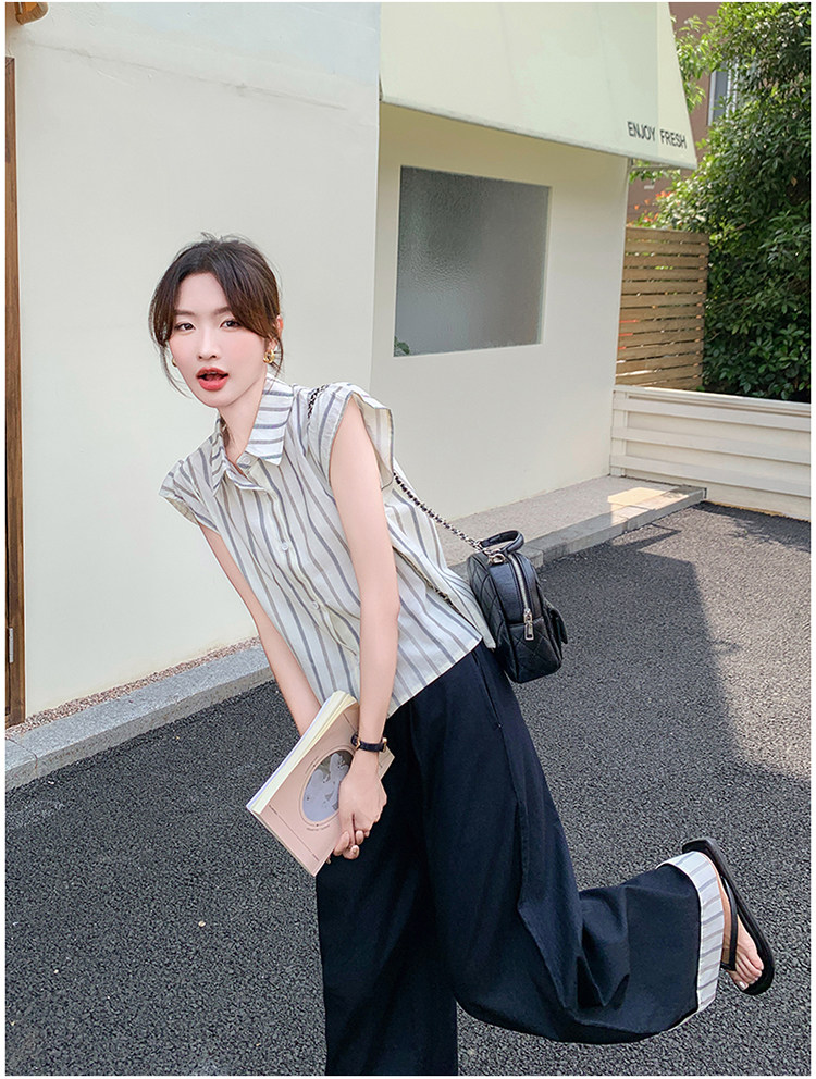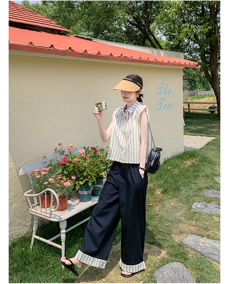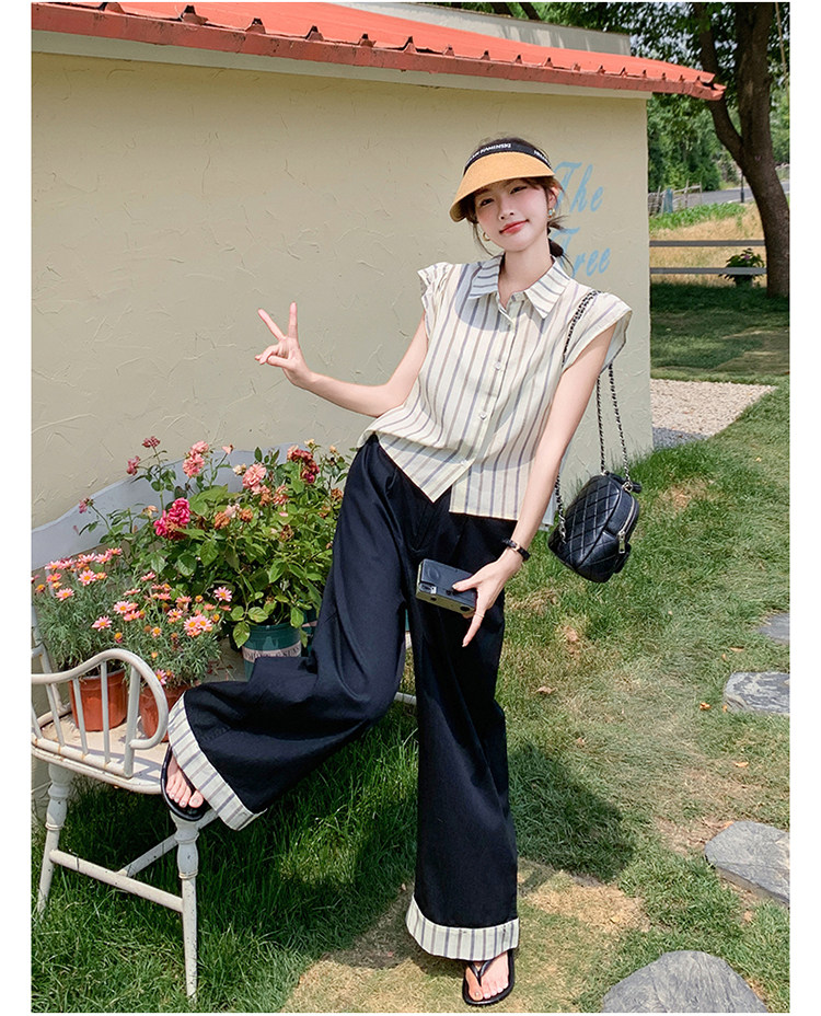 2点セット!【セットアップ】クール系大人カジュアル✨ストライプシャツ+ワイドパンツ レディース 夏 トレンド おしゃれモード感上下セット【JZシリーズ】