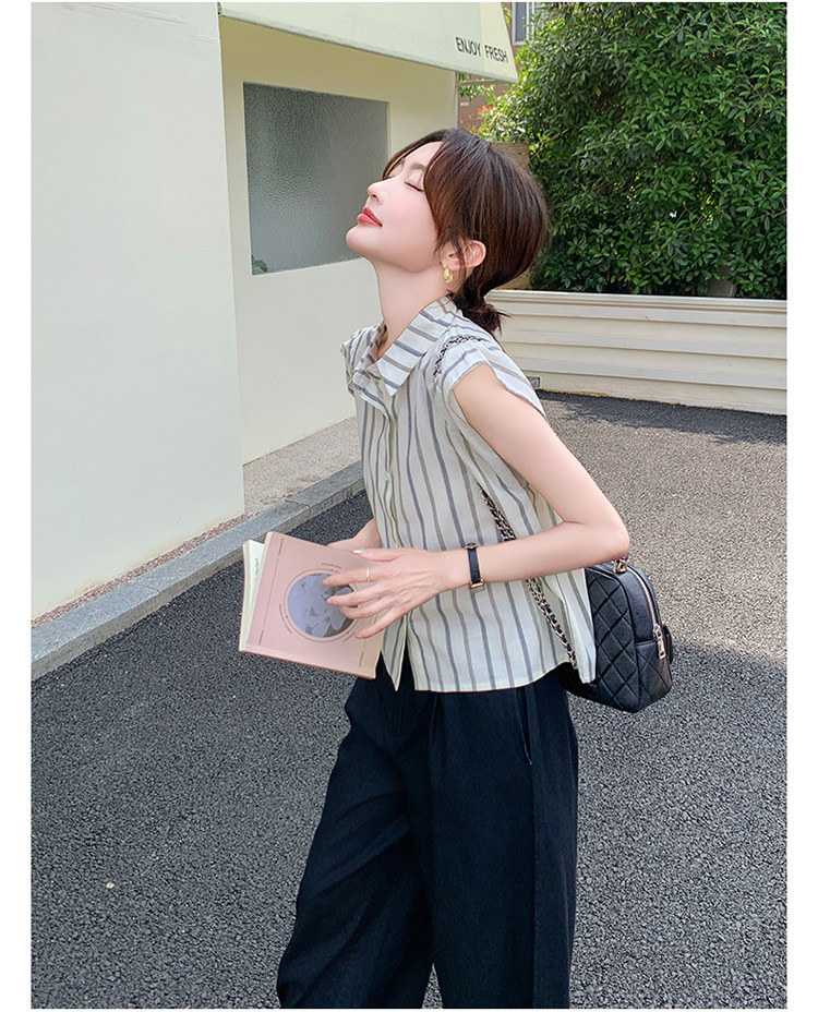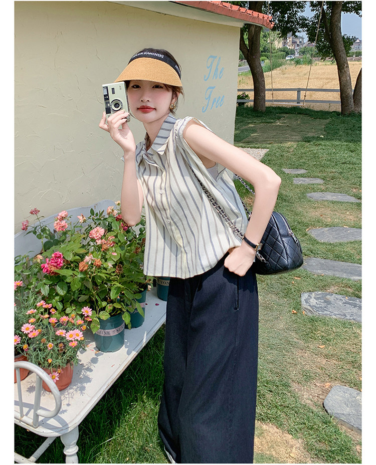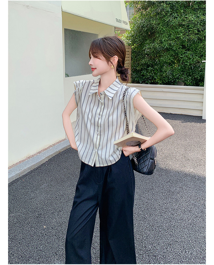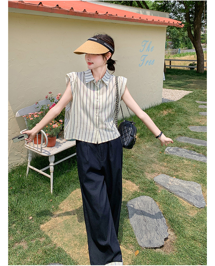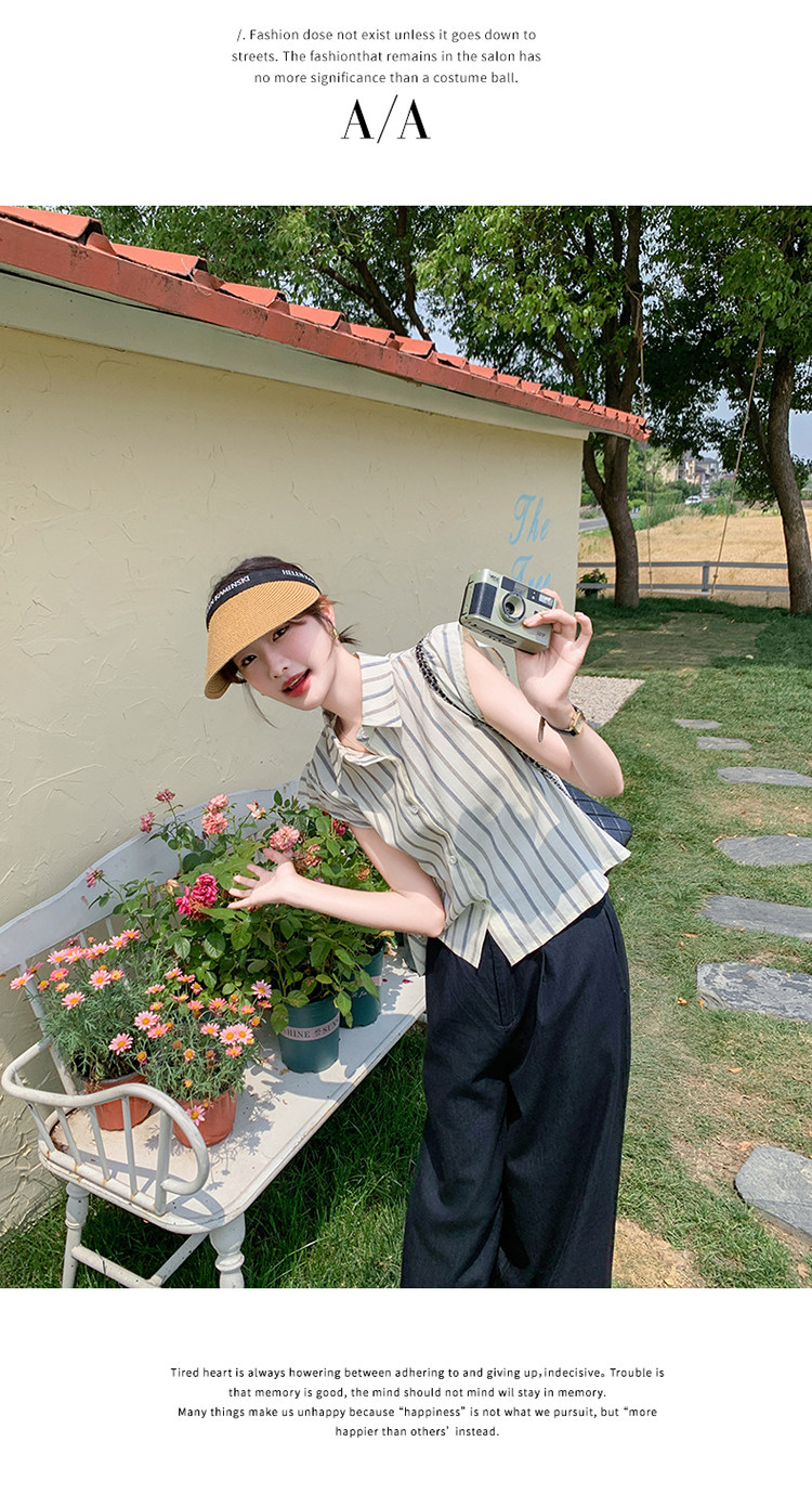 2点セット!【セットアップ】クール系大人カジュアル✨ストライプシャツ+ワイドパンツ レディース 夏 トレンド おしゃれモード感上下セット【JZシリーズ】